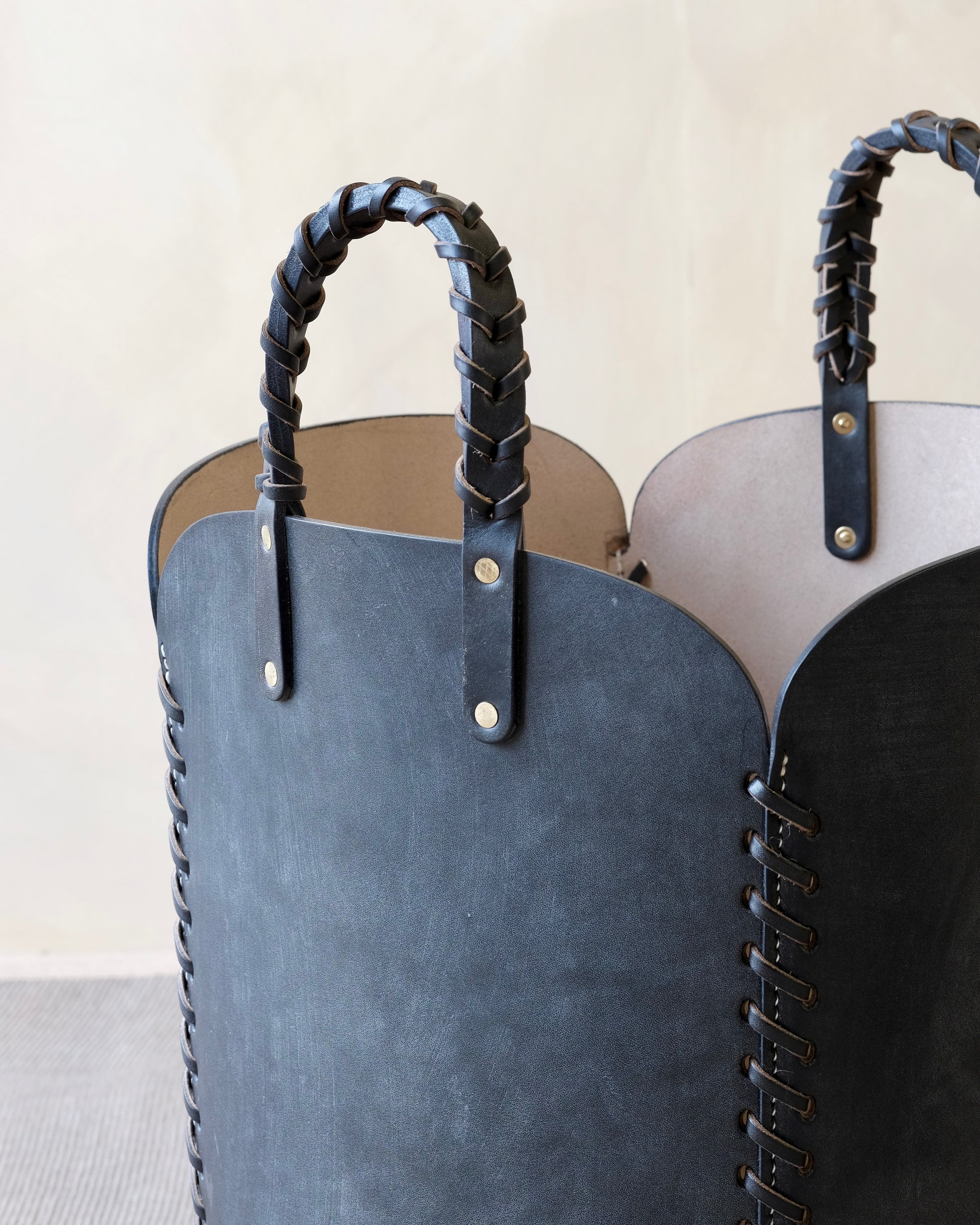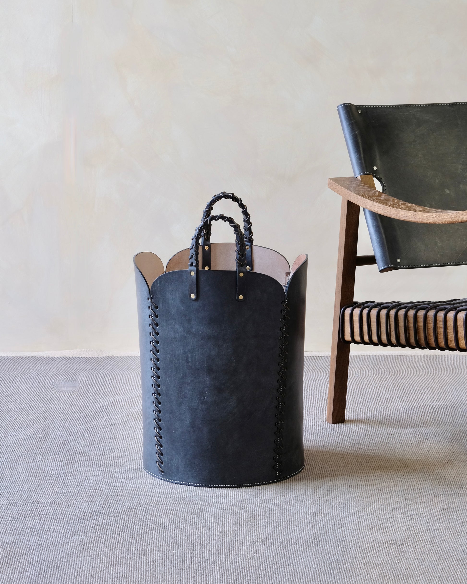 The Quarto utility basket has been designed to be a true object of use. Perfect for any room, its generous proportions ensure that it can serve the widest-possible range of storage options or household chores, from toting linen to bringing in the harvest. Lightweight yet extremely sturdy, the basket comprises one side of oak bark-tanned bridle leather. This is cut, polished, laced and stitched by hand around a stitched leather base.