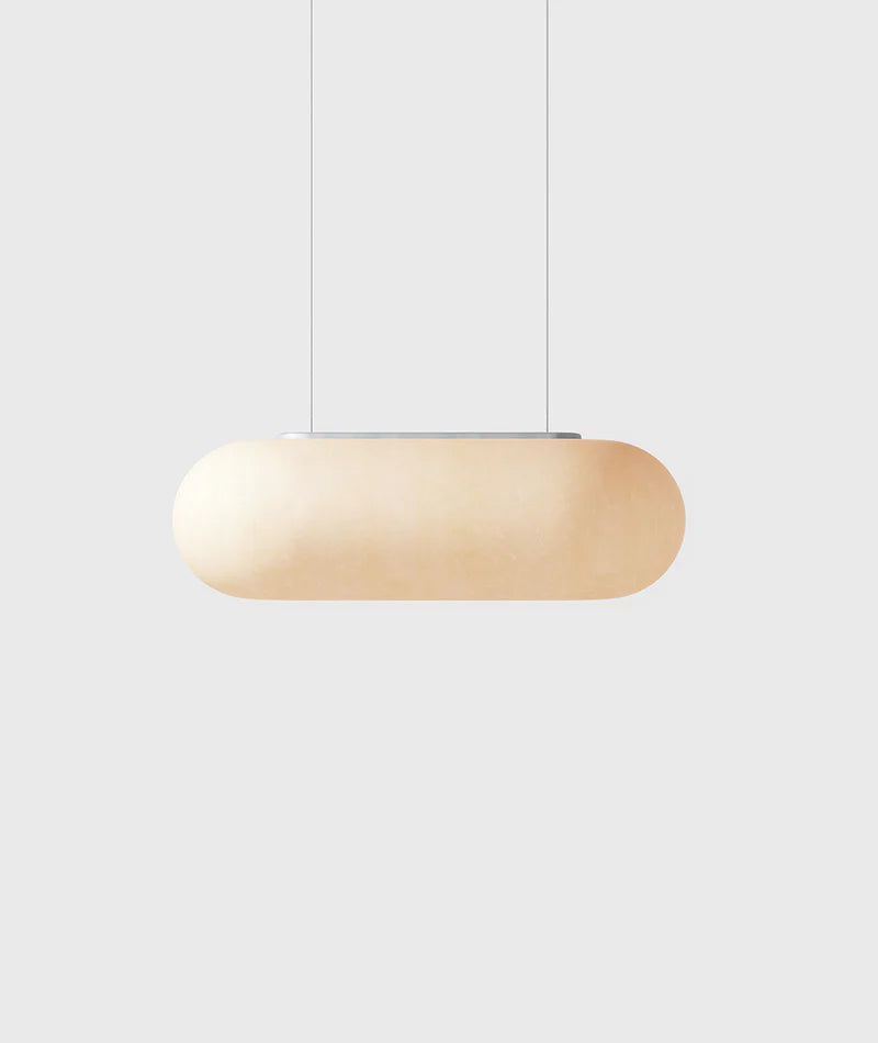 • Raw Fiberglass Shade, Tumbled Aluminum Canopy, Ivory Canopy