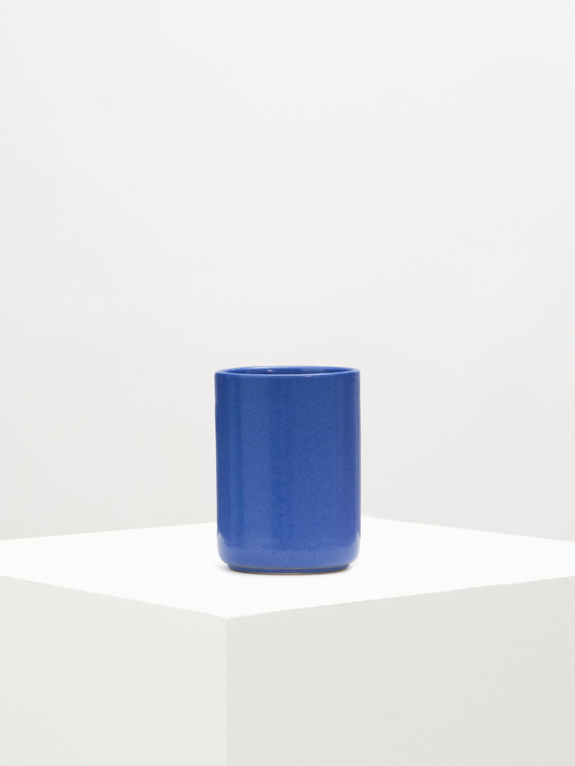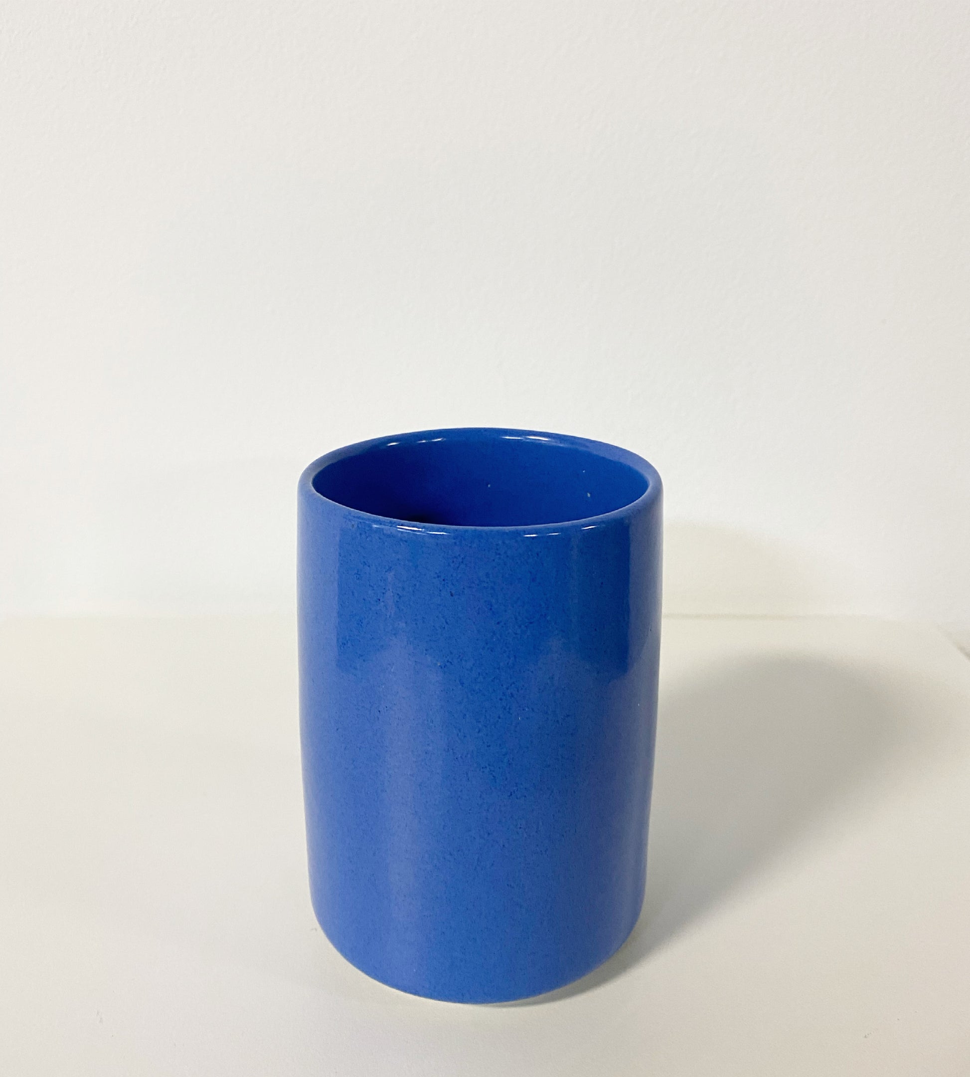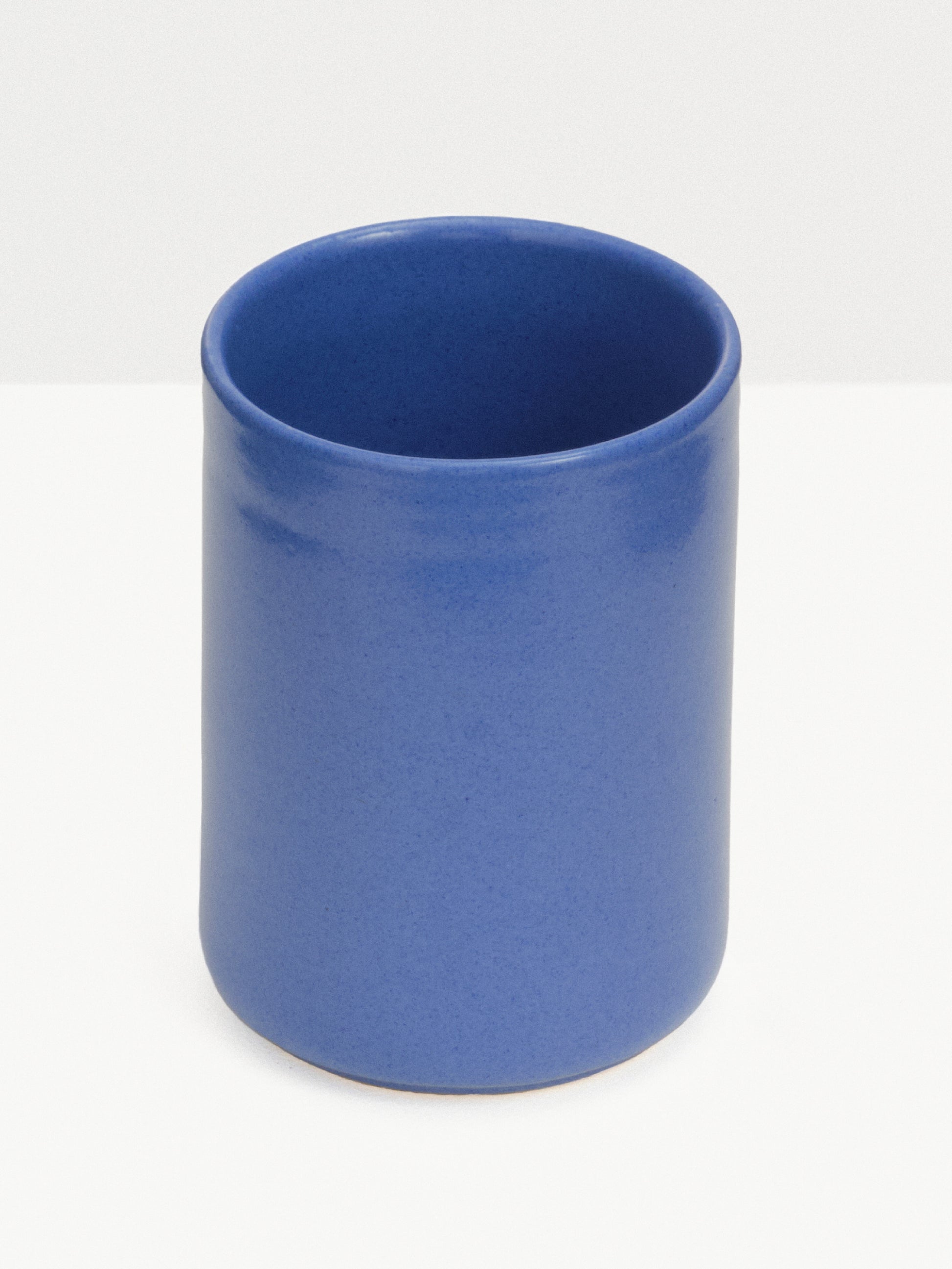 Hand made Ceramic Cup in lapis with the slightest speckle detail. Natural exterior and clear glaze in the interior. Made in India.