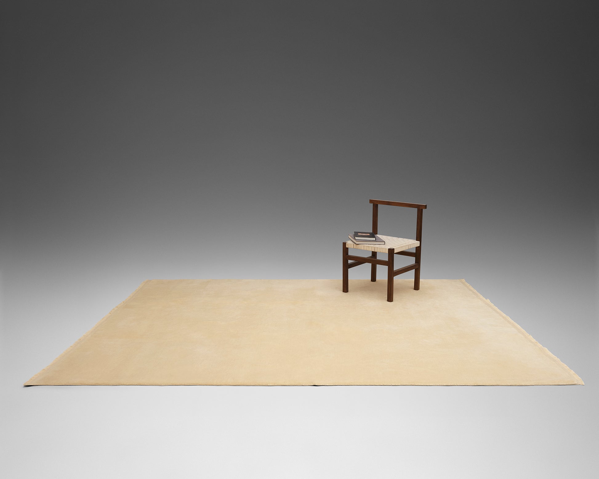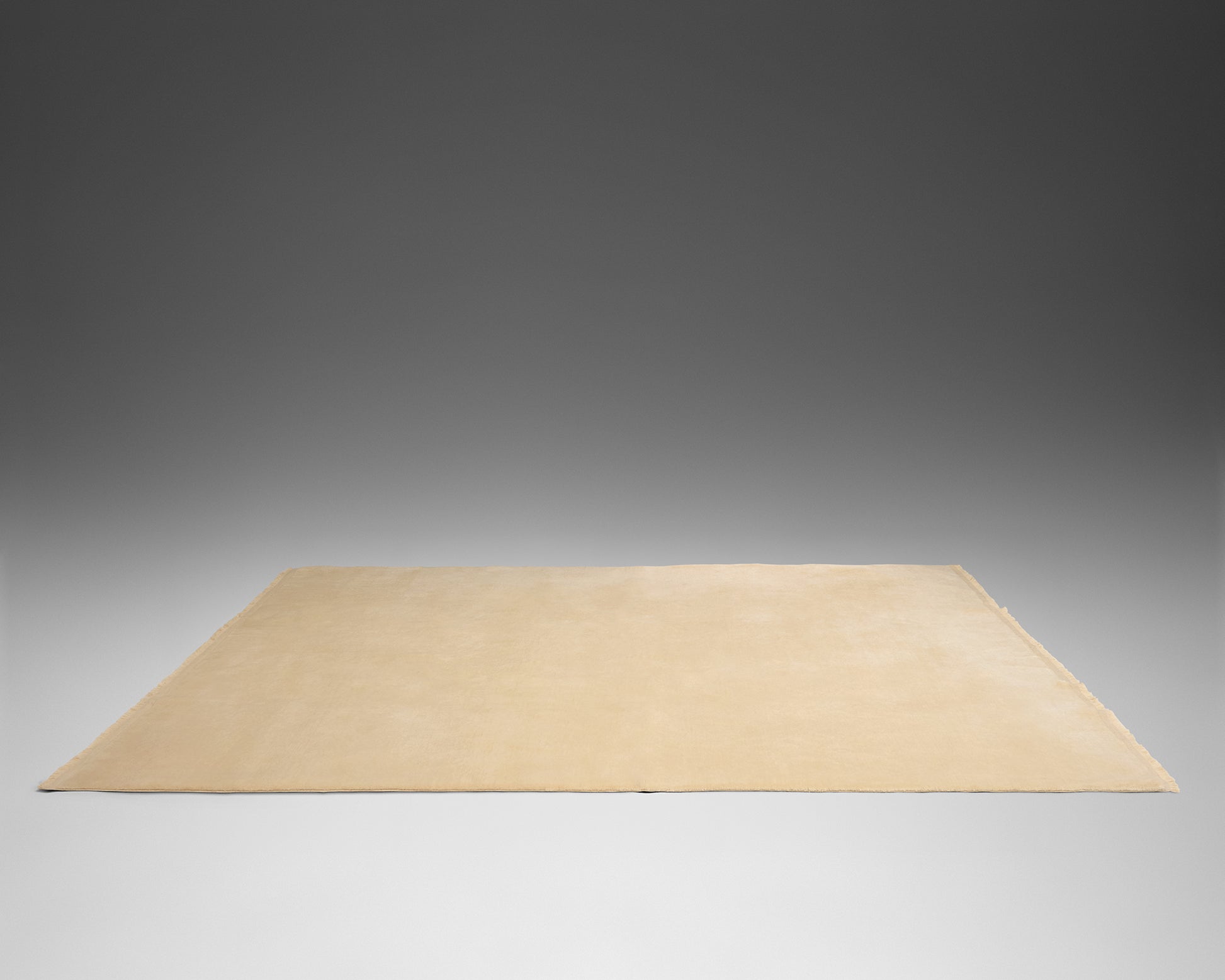 Introducing The Galerie Rug. A minimal, luxurious medium-pile, mohair and wool carpet, hand-knotted in Turkey. It is natural in color, no dyes. A beautiful, natural ivory. The perfect backdrop for a room. Clean, quiet, minimal, luxurious.