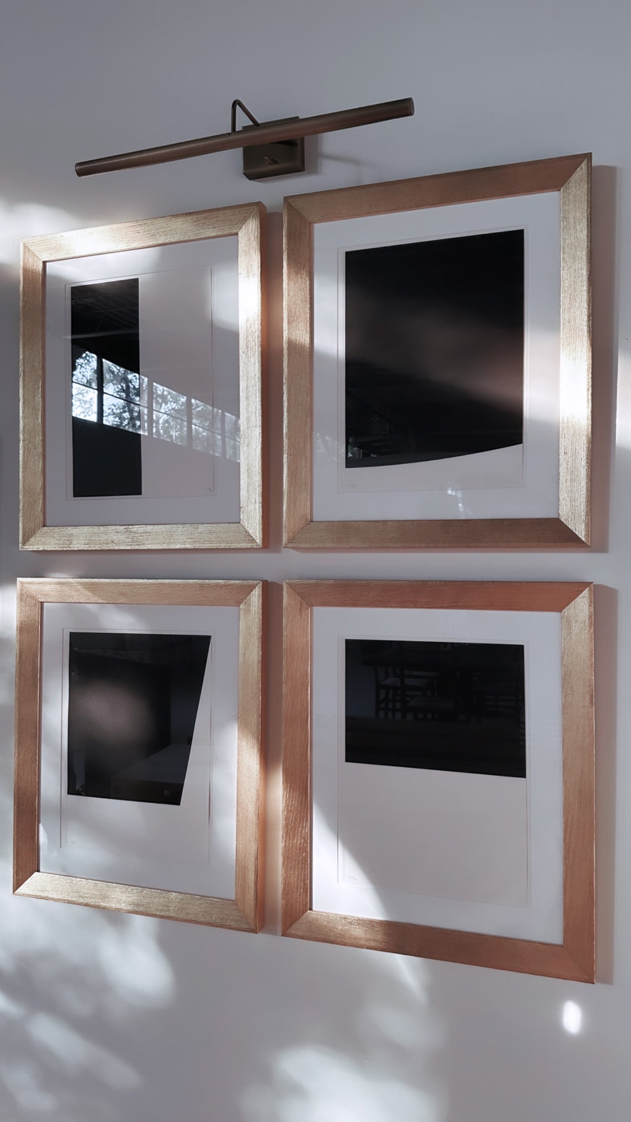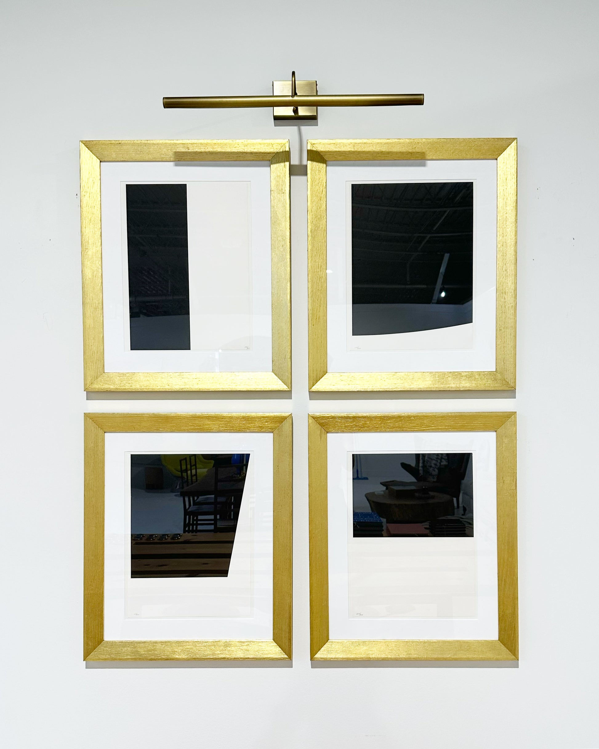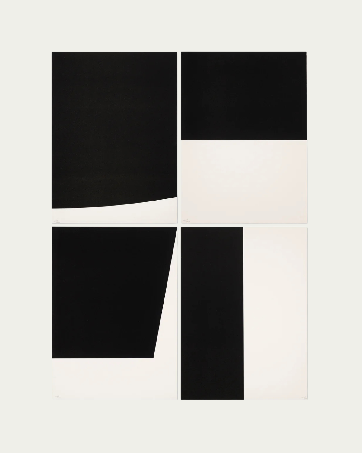 17 H × 12¾ W in (43 × 32 cm) each work. 25.5 H x 21.5 W framed. As a 4 pack hanging on the wall, the dimensions are approximately 53 H x 44 W.