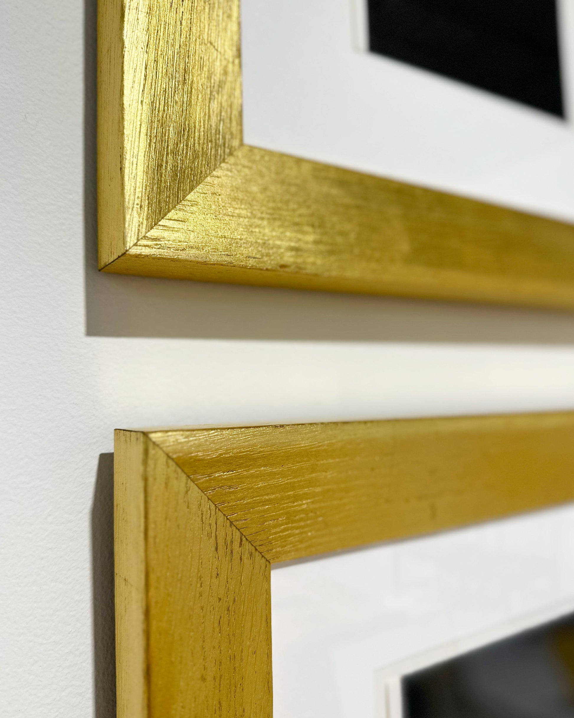 Each work is beautifully framed in our signature wide, Italian gold leaf frames with white mat and OP-3 acrylic for protection.