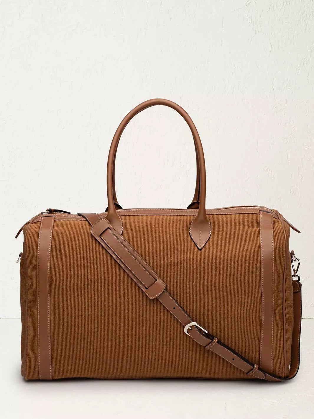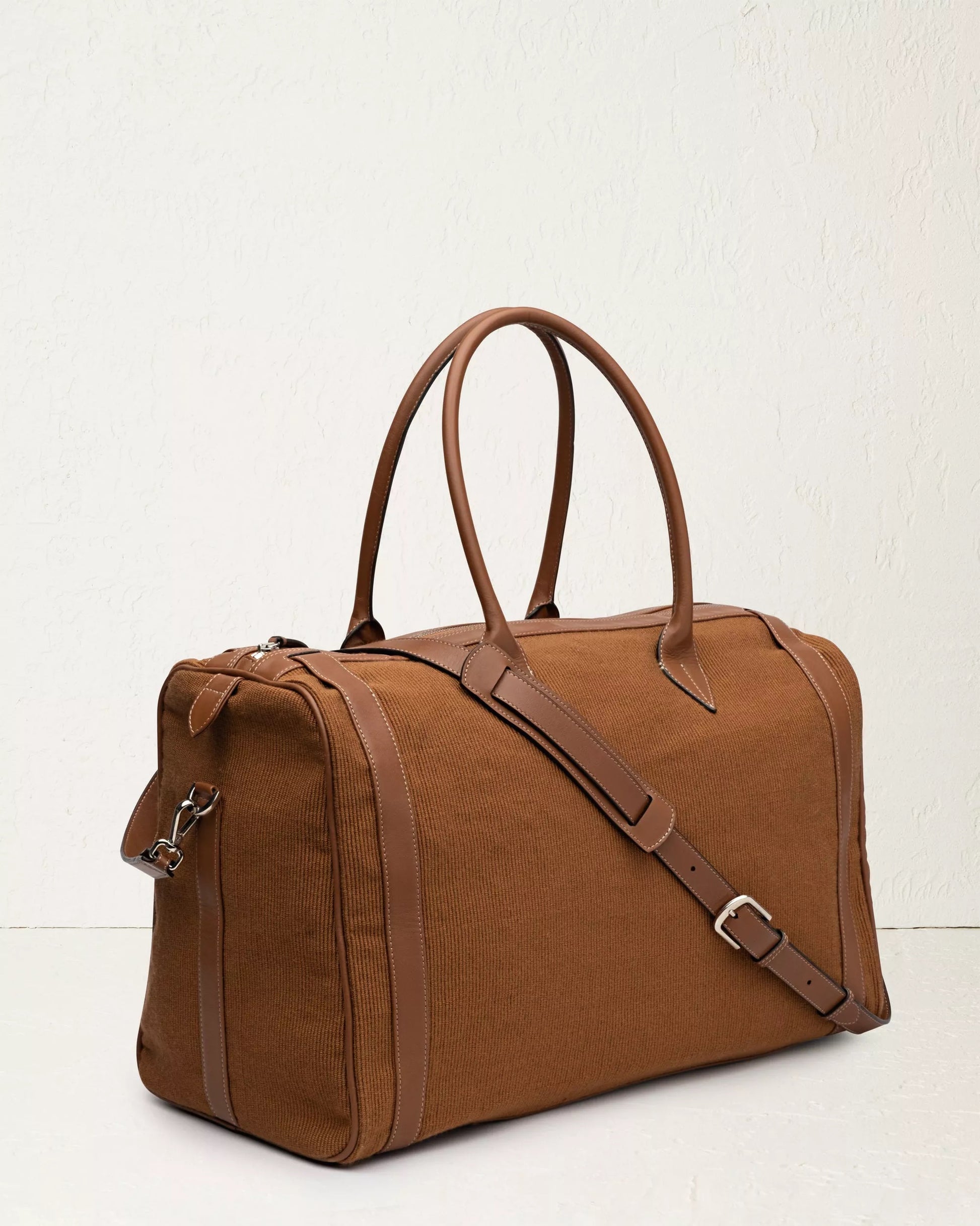The ultimate travel essential, the Weekender features a spacious, relaxed silhouette, long leather handles for easy transport, and a detachable, adjustable strap for hands free-carrying. Rendered in handwoven cotton striped fabric, trimmed in black leather—crafted by artisans in Colombia—it channels the carefree spirit of seasons on the go.