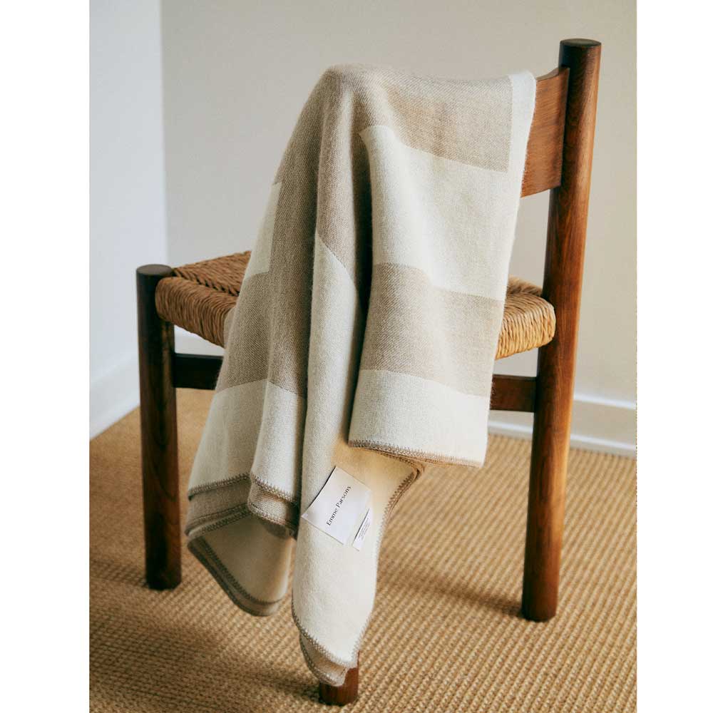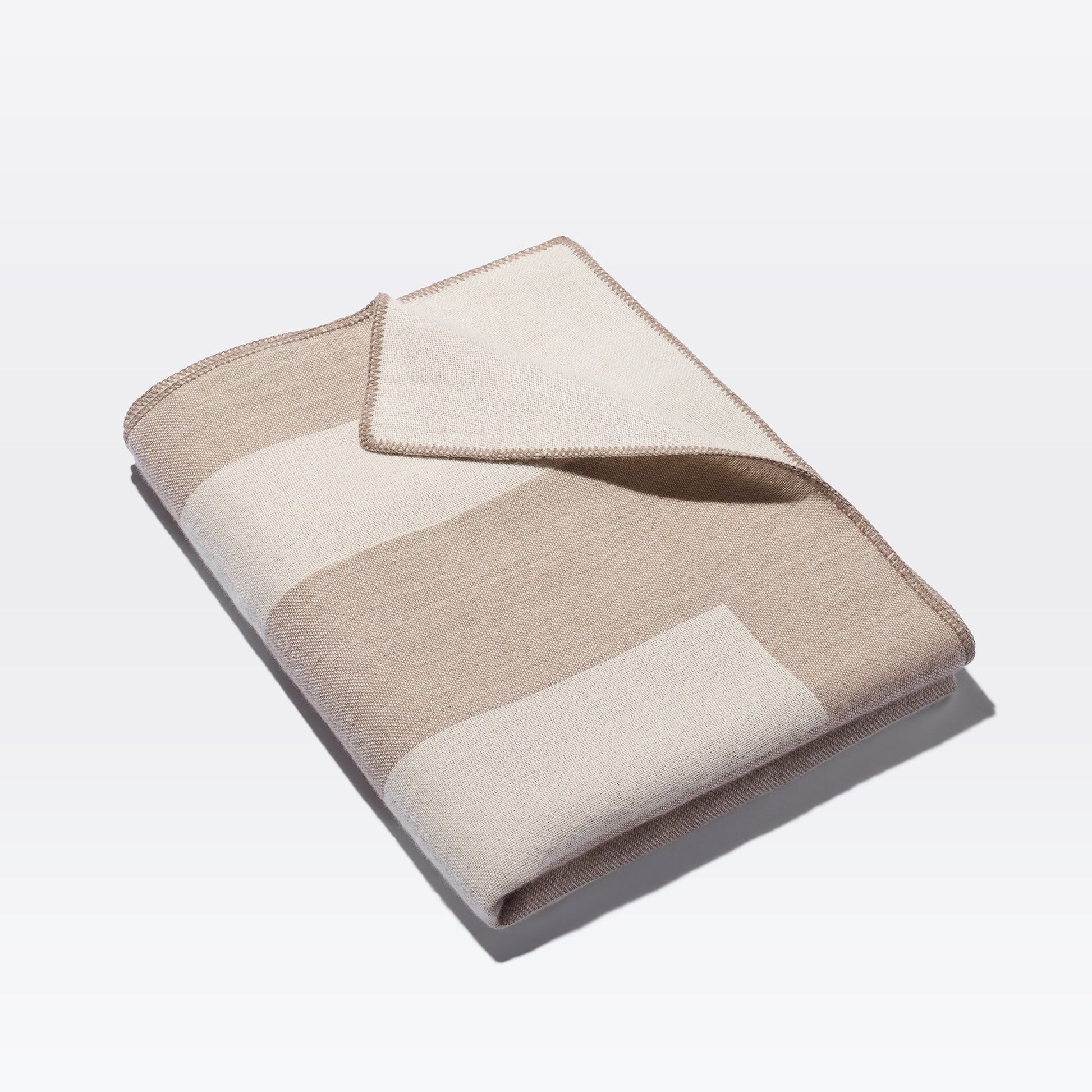 An ultra soft throw for shoulders or sofas, the blanket is made in Peru from 100% baby alpaca fiber; one of the rarest fibers in the world. Warm but highly breathable, the stitched edges and graphic block motif create a luxe but cozy finish on the neutral, which drapes beautifully on any surface.