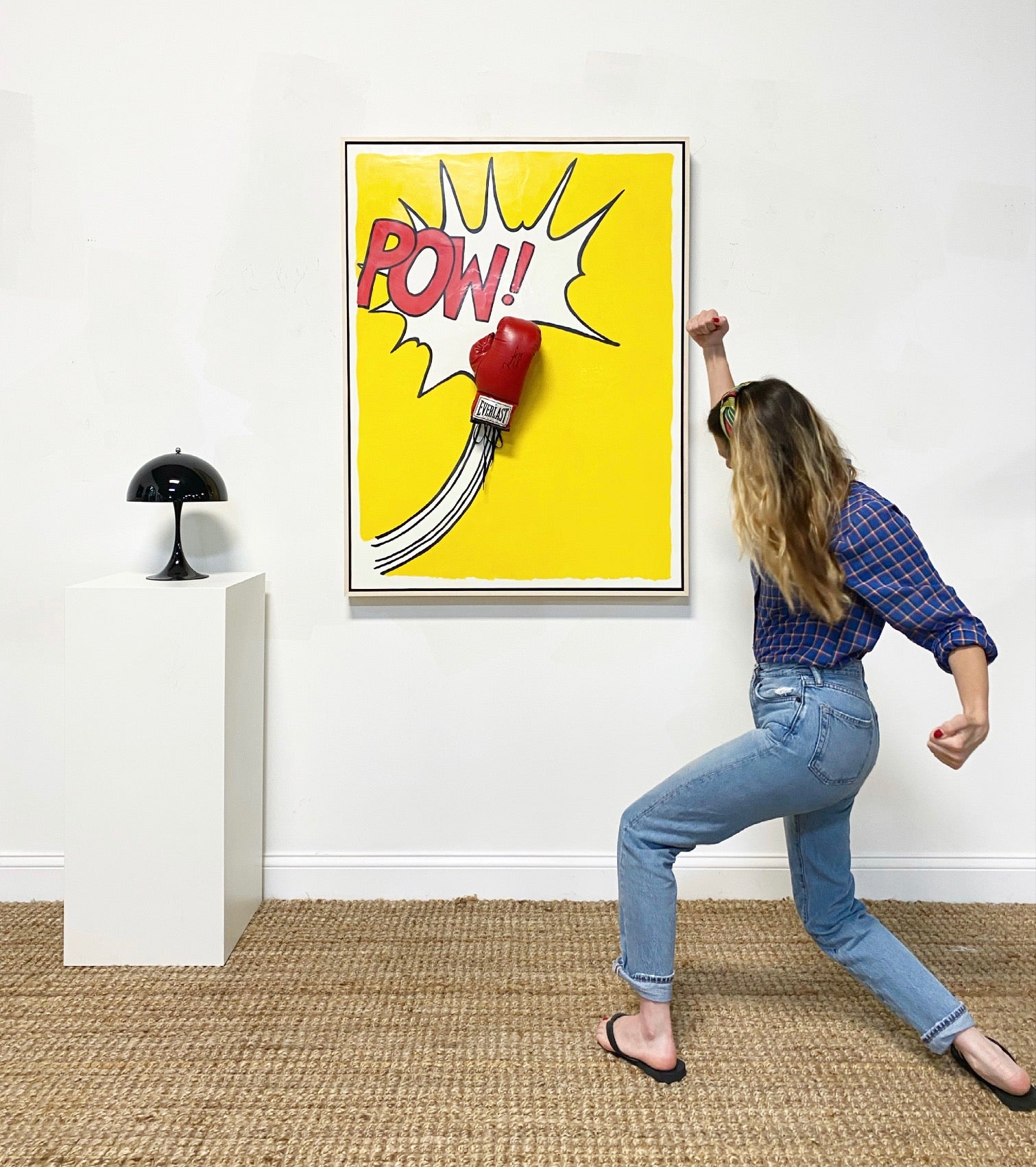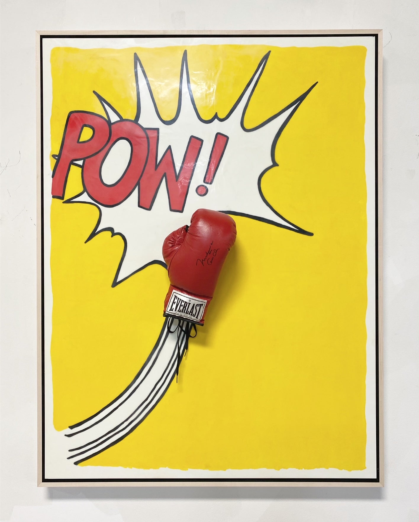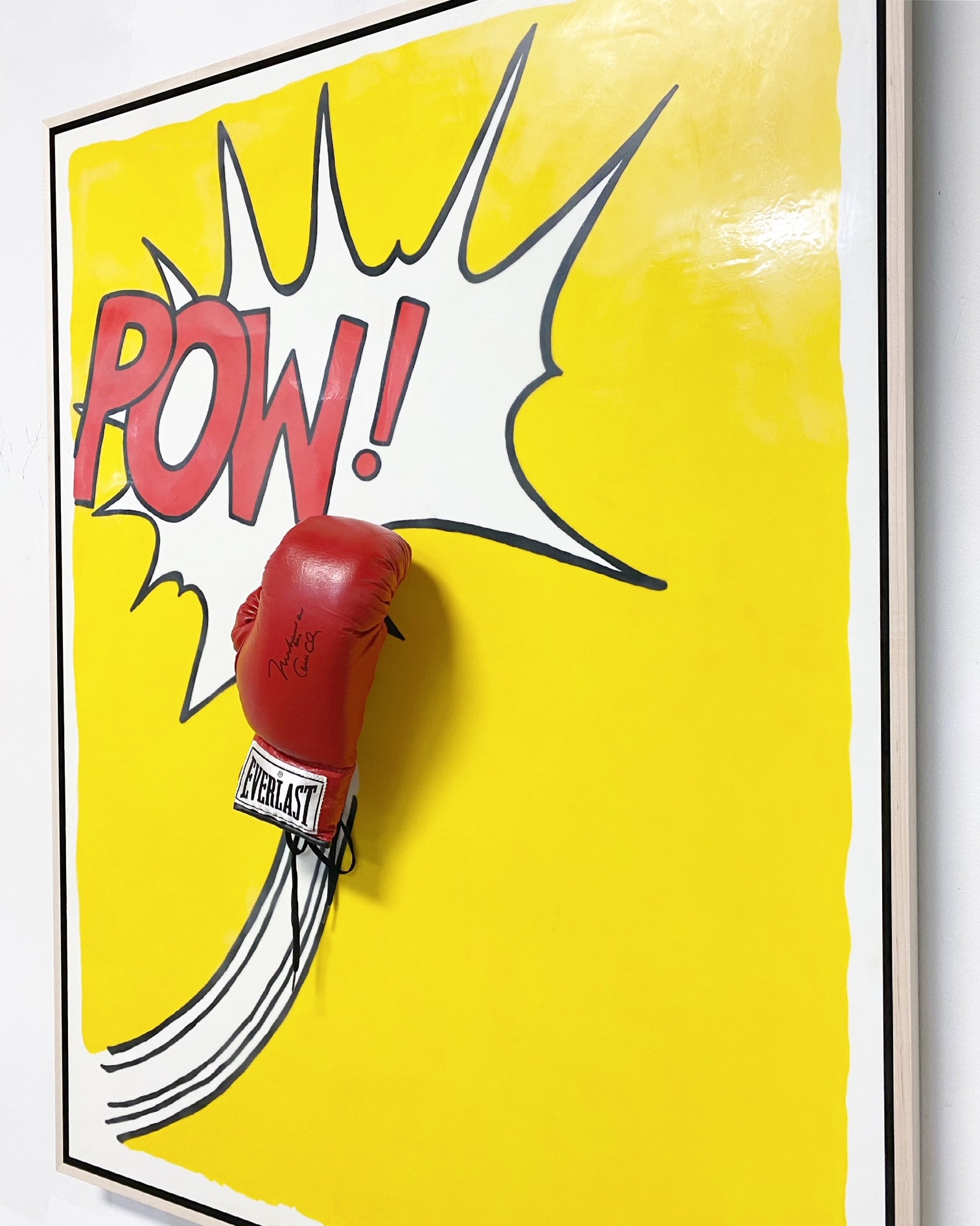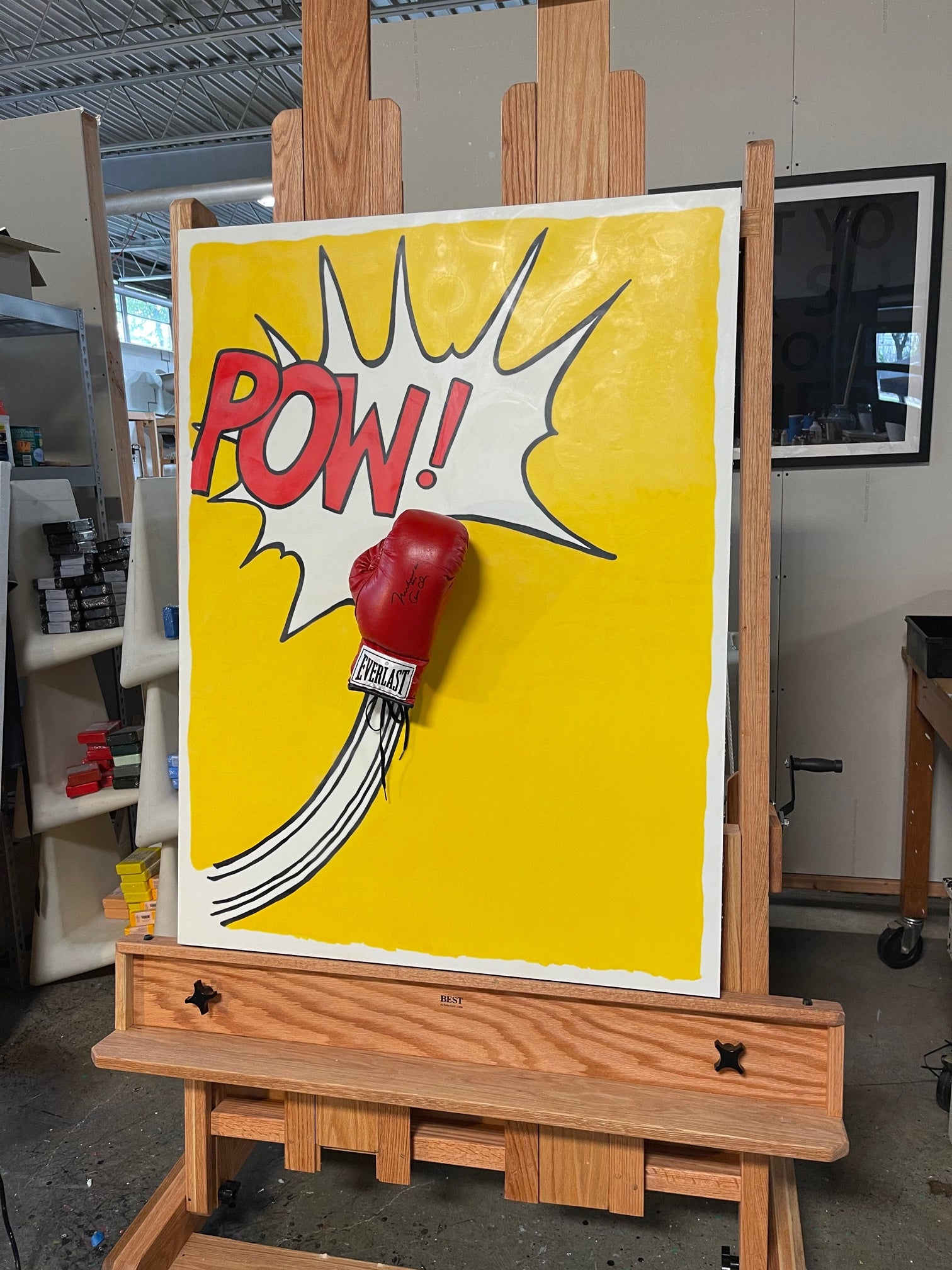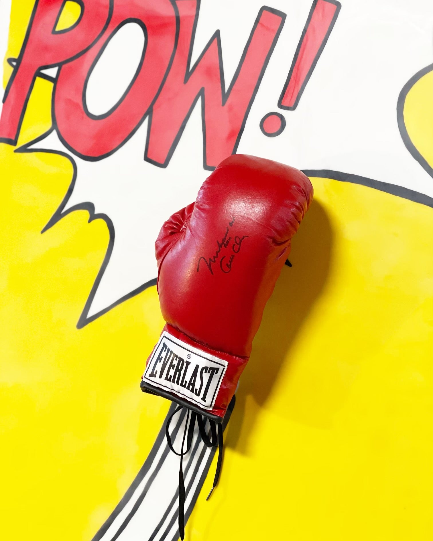 Acrylic and Encaustic on board with Authentic, Signed Muhammad Ali Boxing Glove. Certification included.