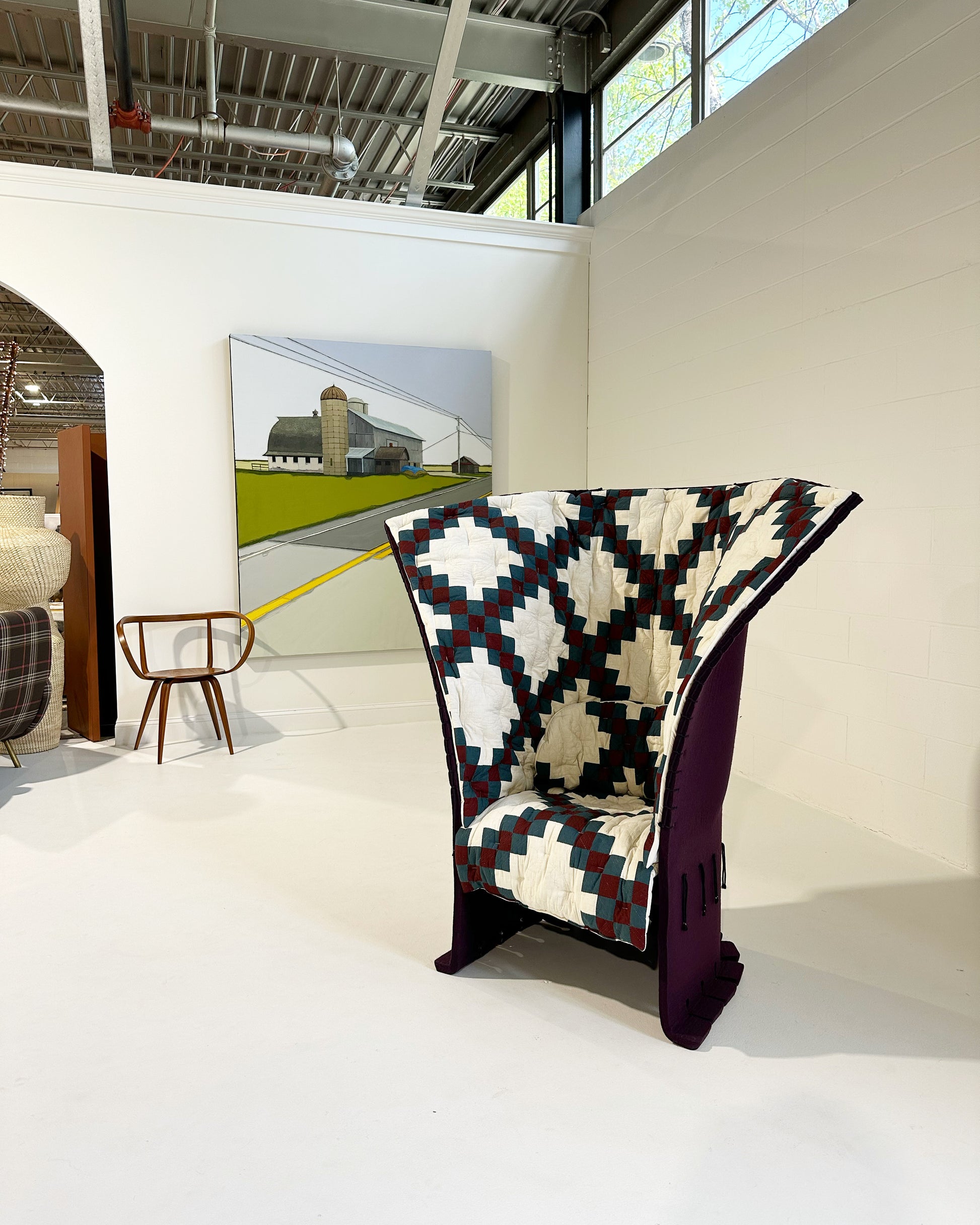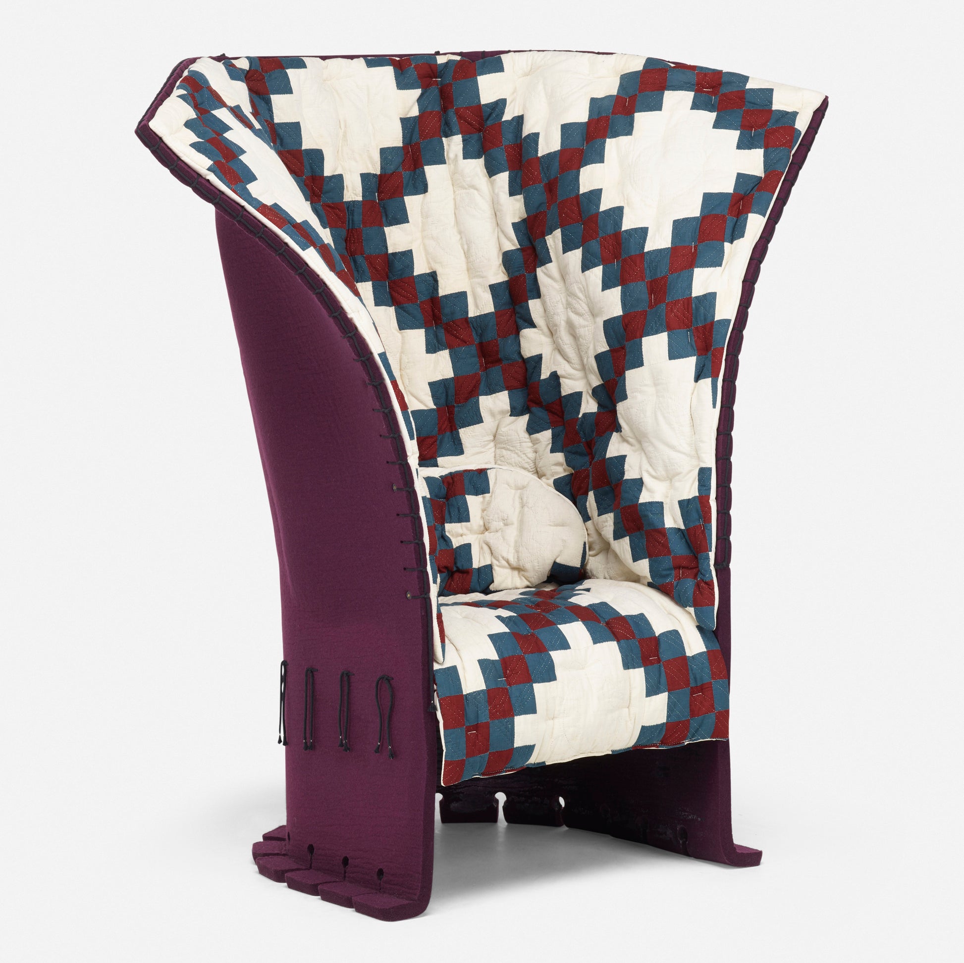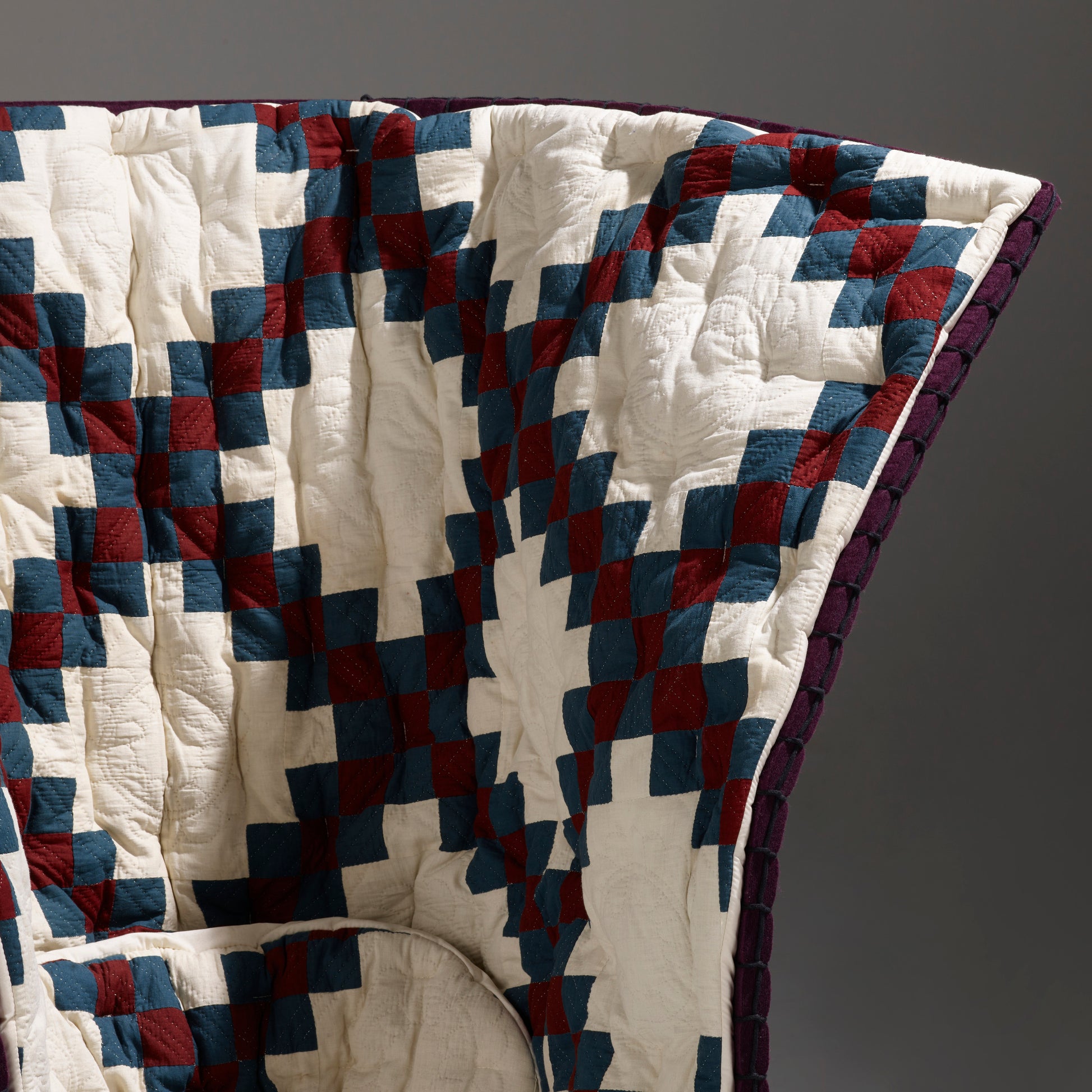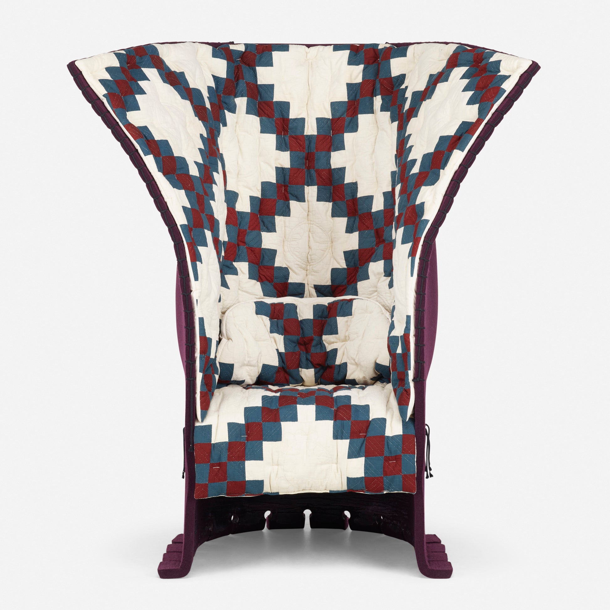 In 2018, at the Design Miami and Art Basel Fair in Switzerland, Calvin Klein unveiled a collaboration between designer Raf Simons, introducing their own take on Gaetano Pesce's famous Feltri chair. The Feltri chair produced by Italian house, Cassina, is a favorite. Made entirely of thick felted wool, the Feltri chair combines an enveloping pliable backrest with a rigid lower section; a quilted topper creates an inviting cocoon. Each chair in the collaboration was upholstered in one of a kind patchwork quilts selected by Simons.