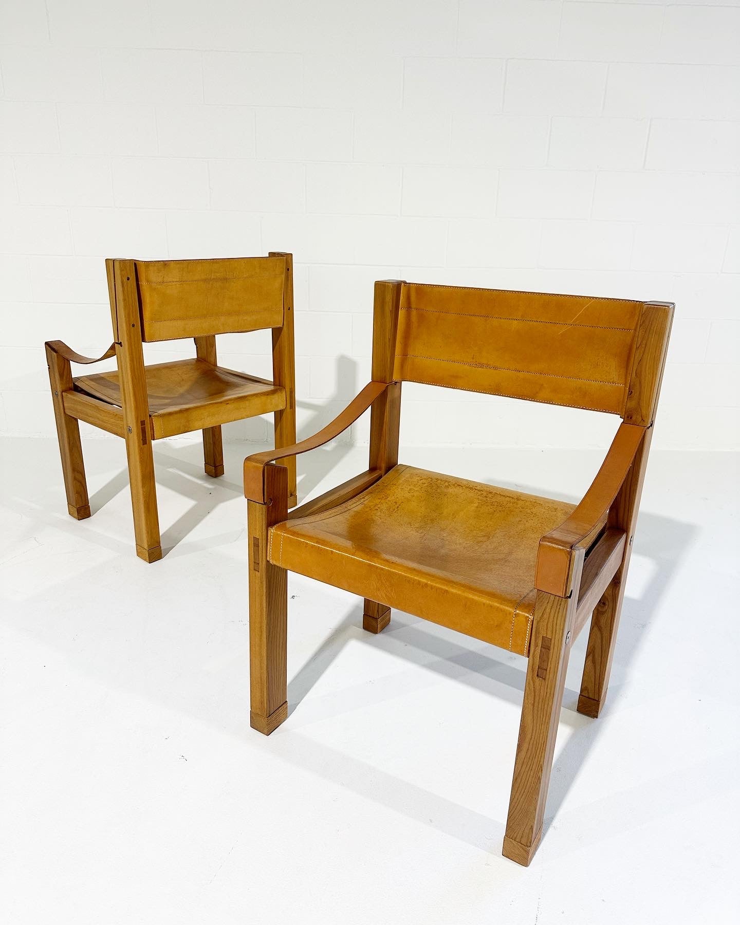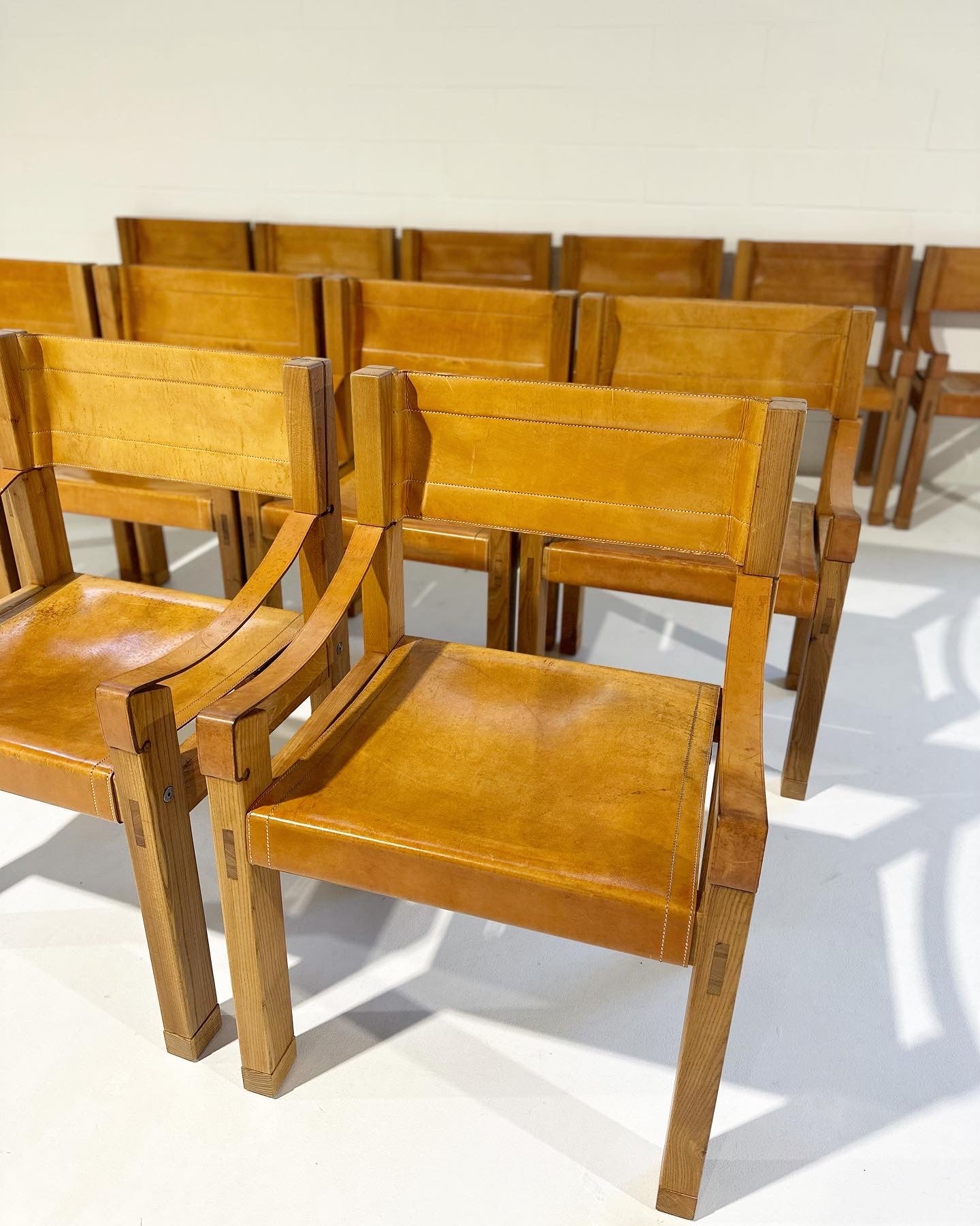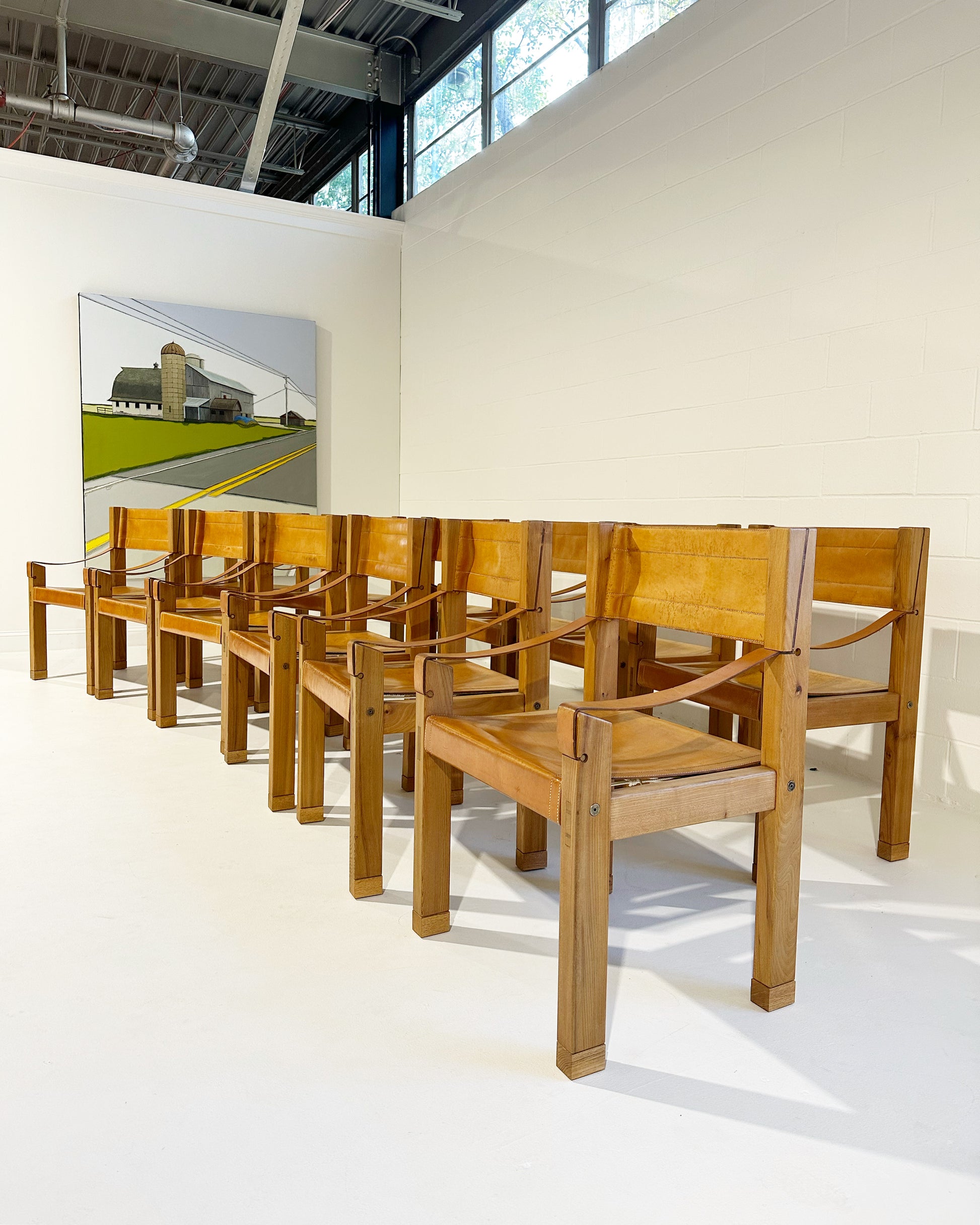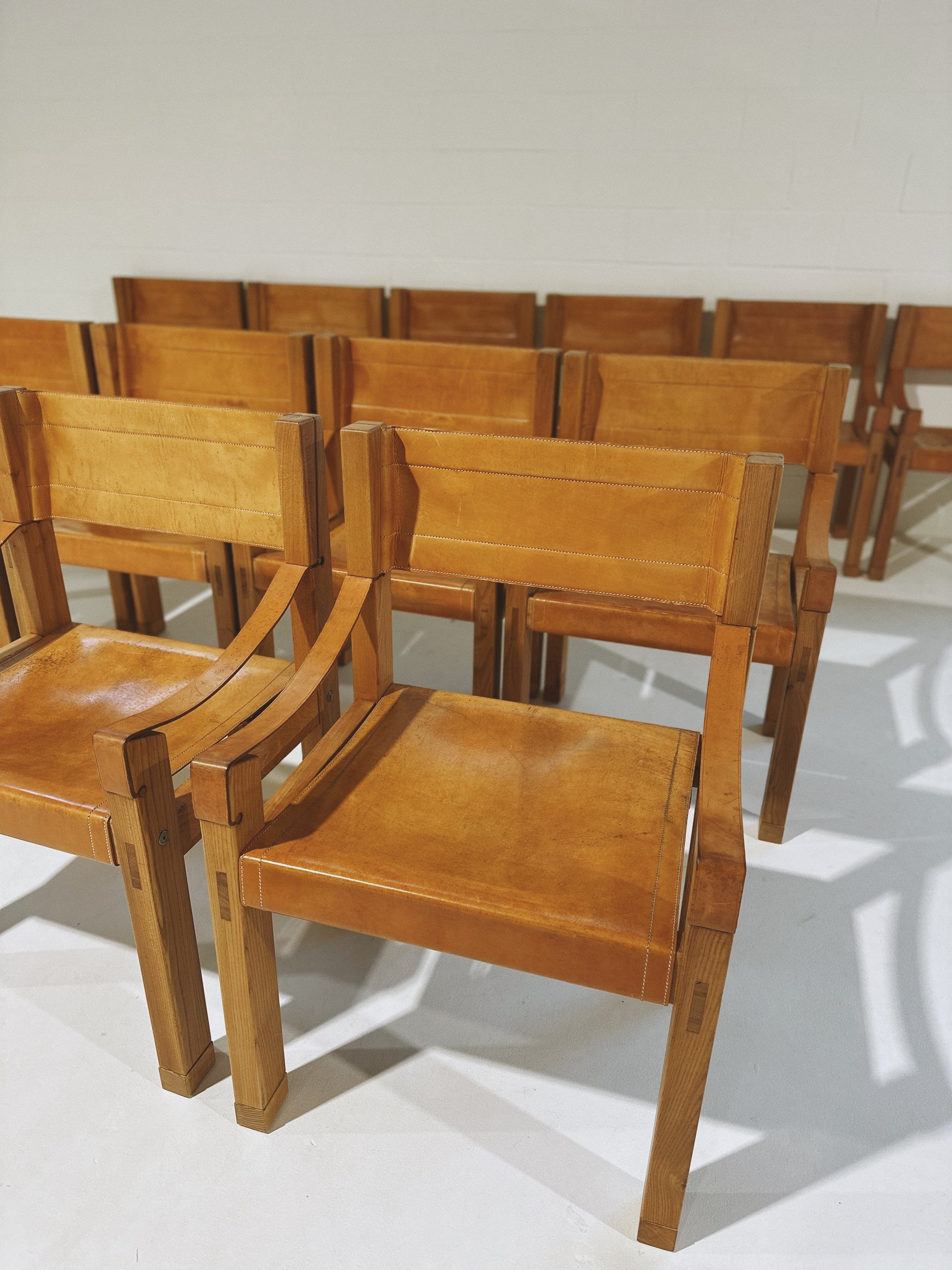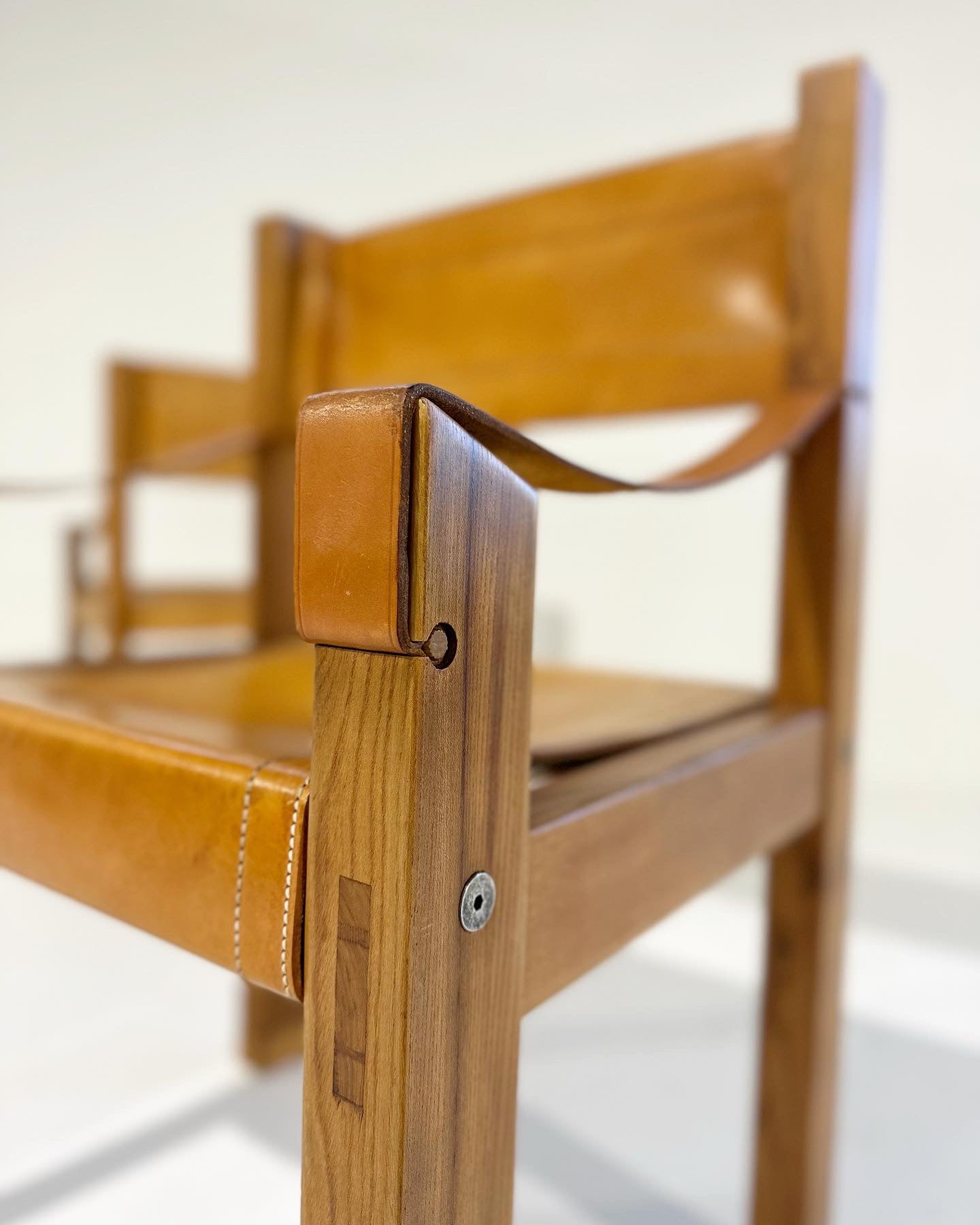 These solid elmwood S340 chairs are a prime example of Chapo's work. The thick saddle leather is perfectly patinaed.