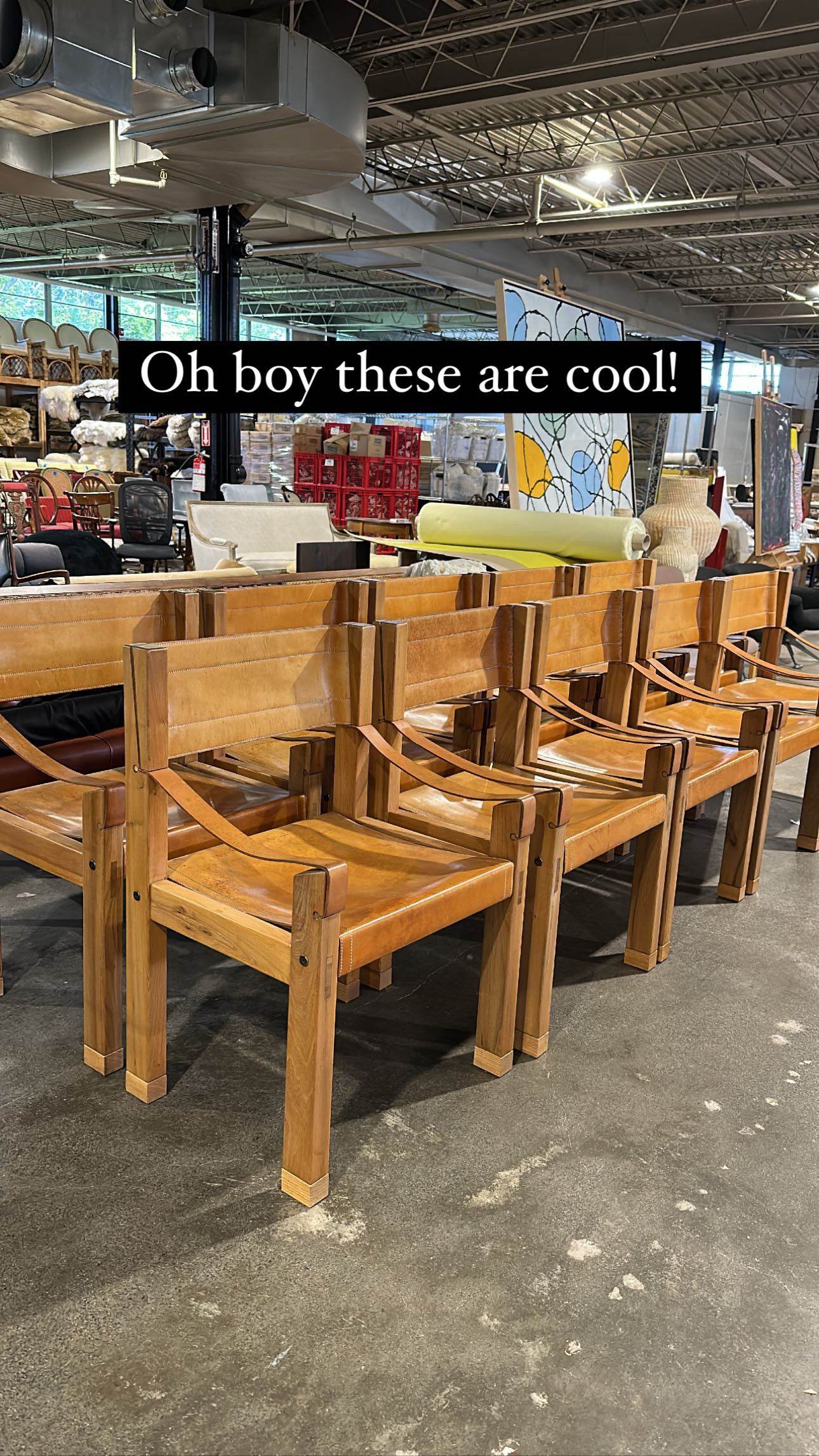 Each chair is so sculptural, a work of art. And the best part, the leather. It's that thick saddle leather that has aged so beautifully. I wish I could buy a new pair of boots with this exact patina. So freaking good. Honestly, the best color leather in the history of the world dot com."