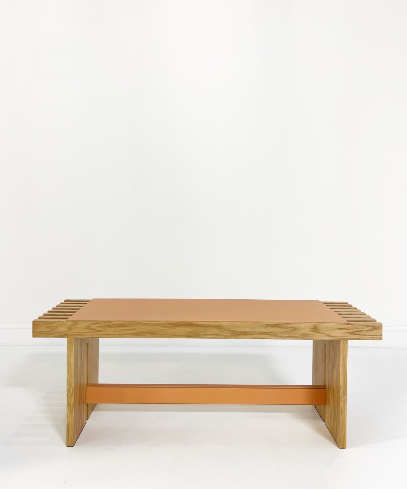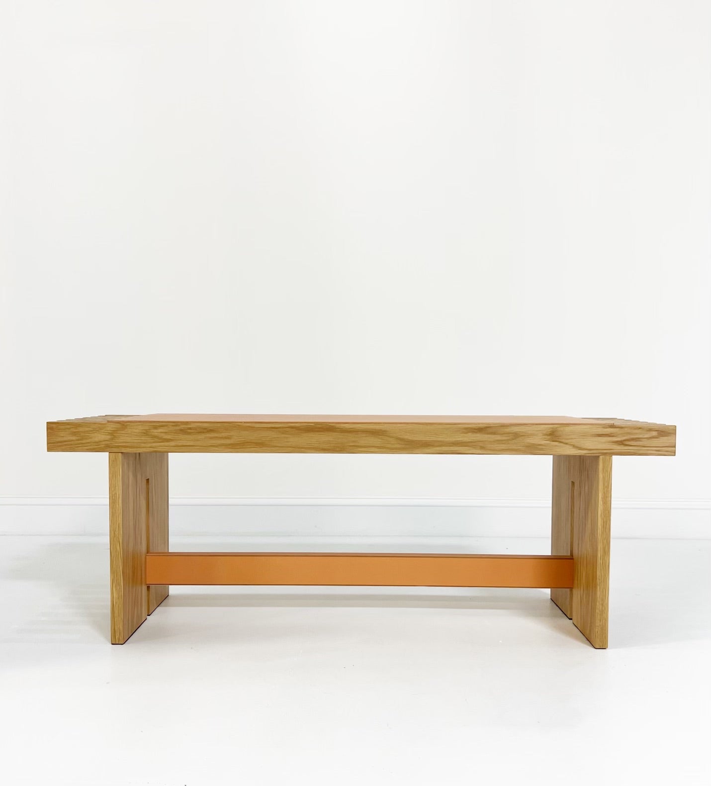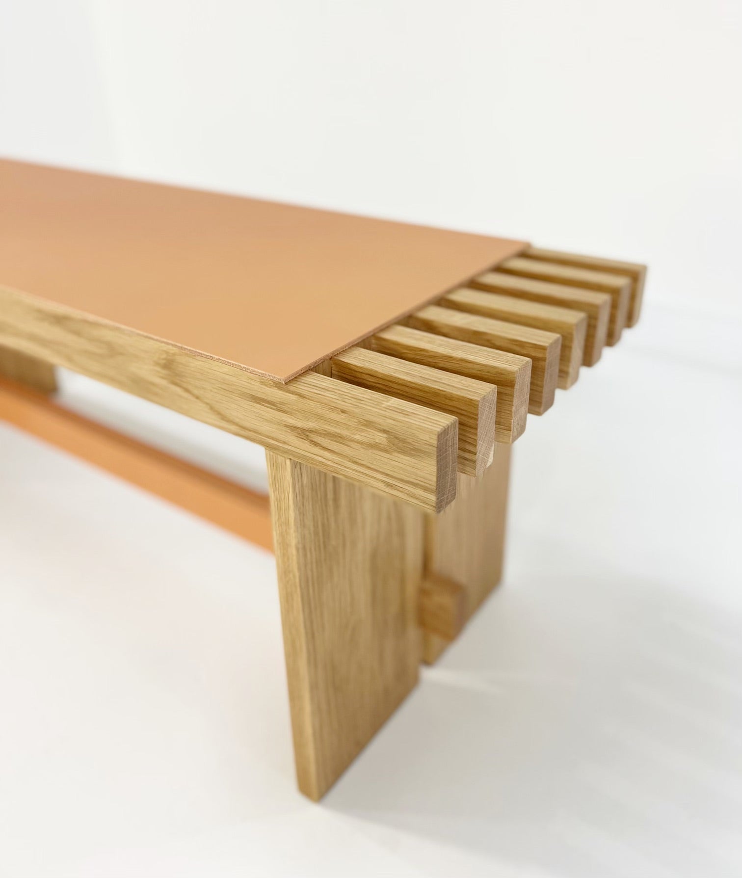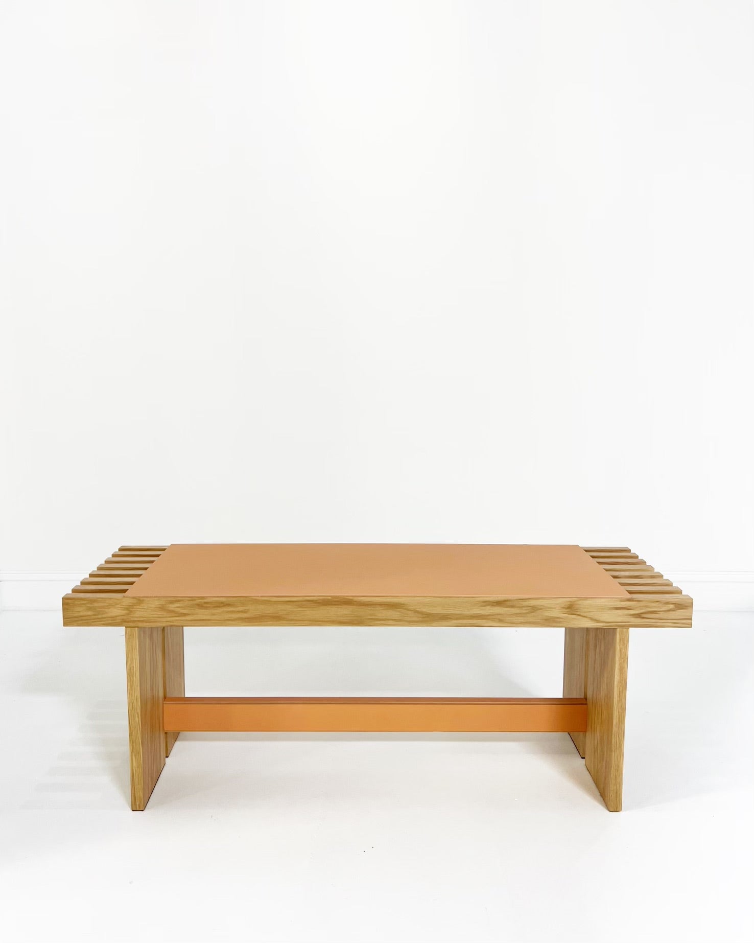 The Yuga Bench, designed by Simone Fanciullacci, is solid ashwood is topped with a saddle leather seat. Its expert and refined detailing enhances the preciousness of the materials.