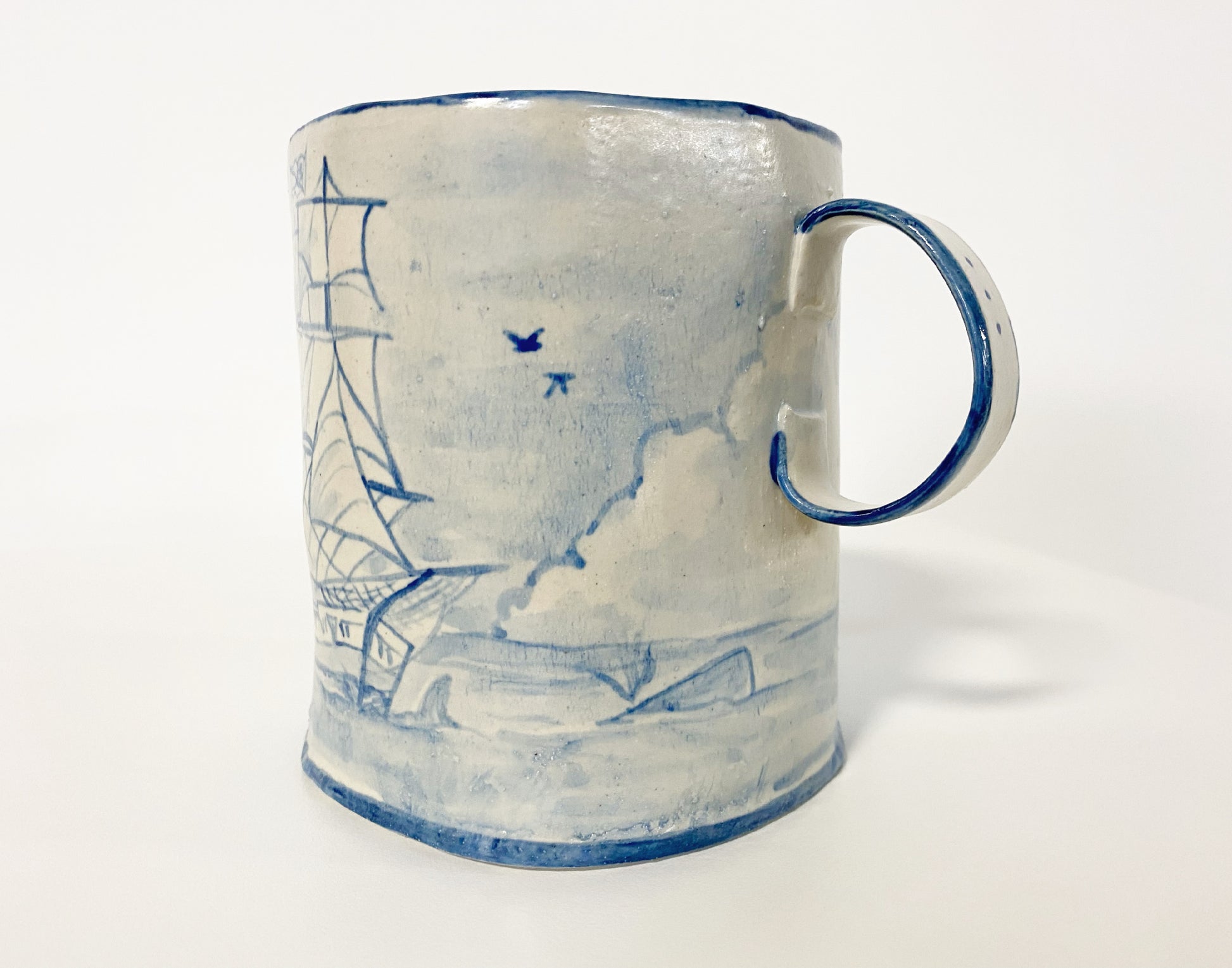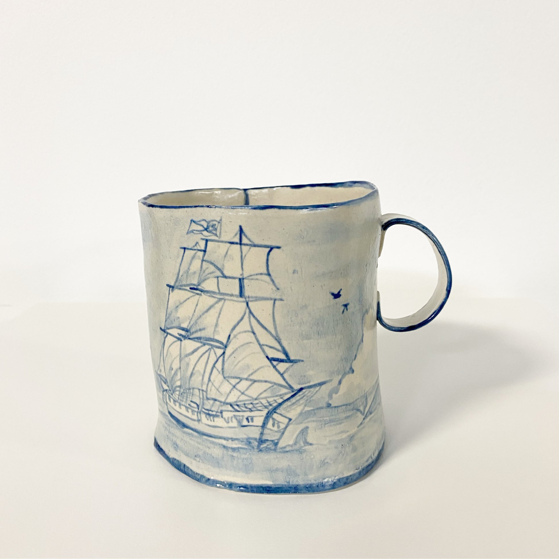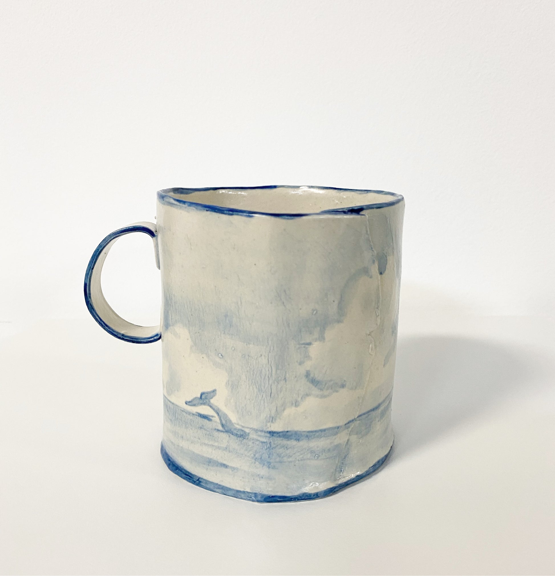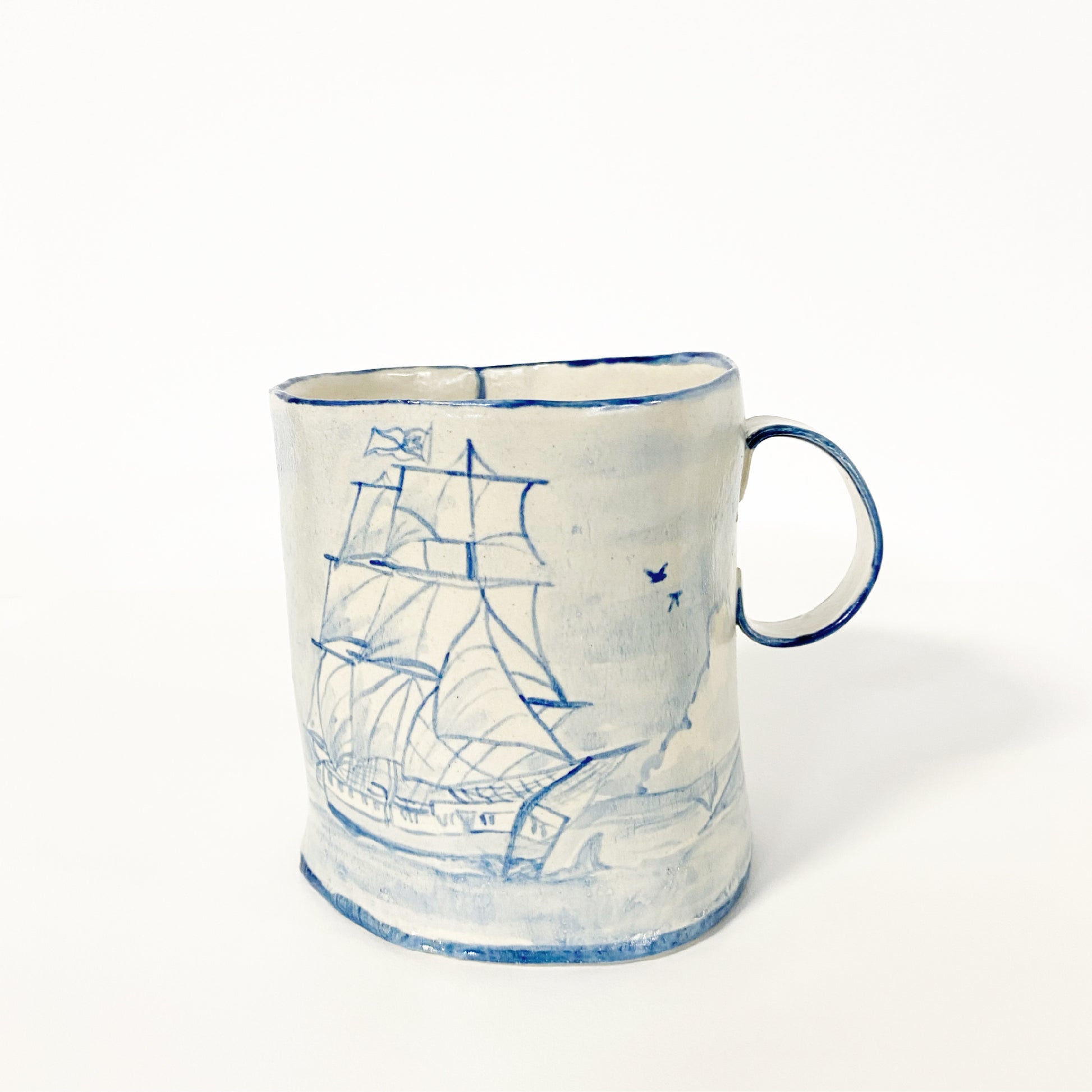 The Country Gentleman Collection by artist Maggie Robertson is a beautiful series of one-of-a-kind stoneware vessels. Each unique piece embraces the seams and irregularities of her hand-built technique complemented by intricate, hand-painted scenes of the English countryside in classic blue and white. The vessels are water tight and food safe, microwaveable and dishwasher safe; however, as they are art pieces and fragile, we would recommend hand washing.