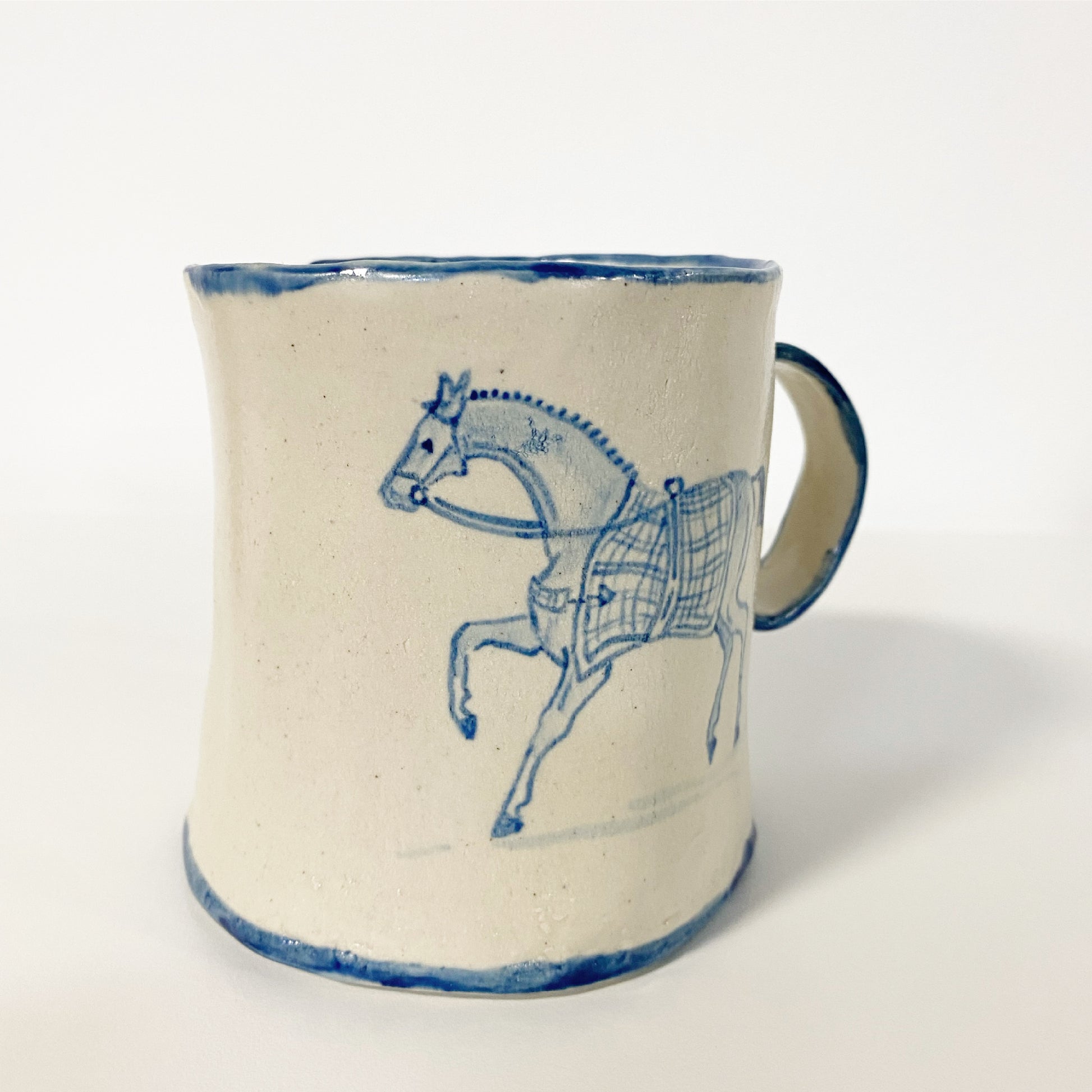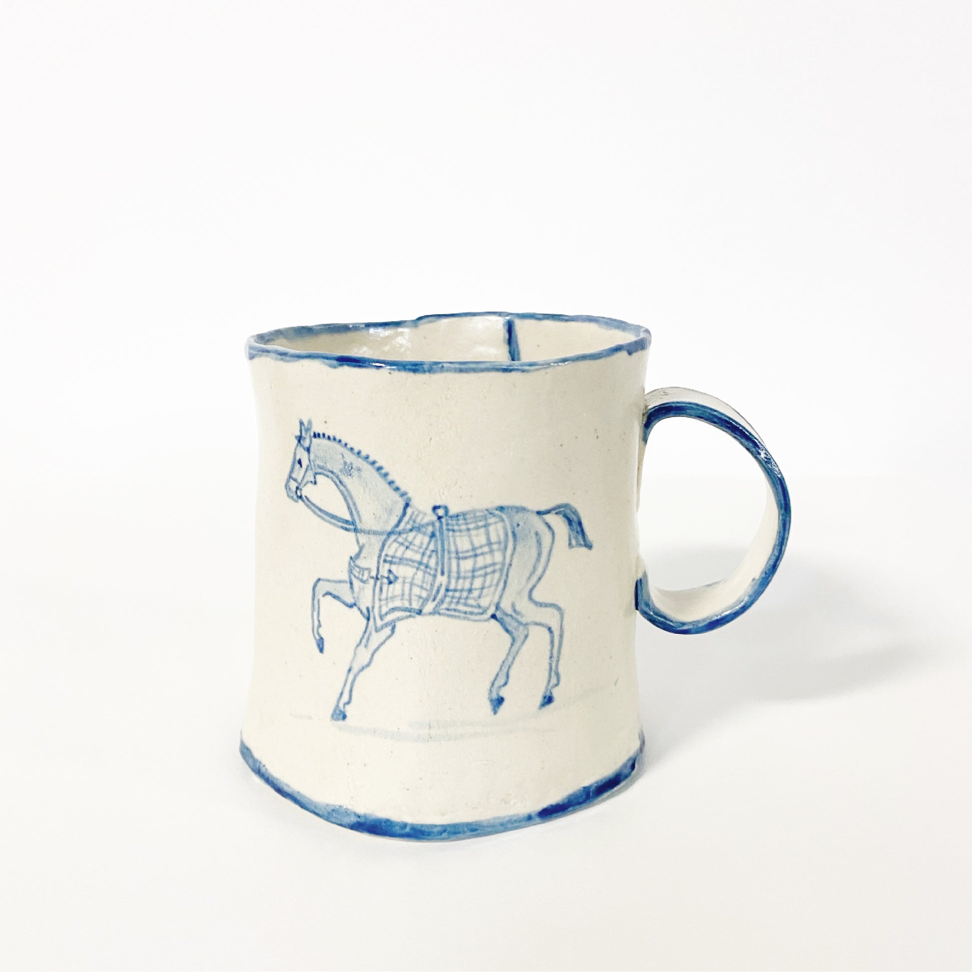 The Country Gentleman Collection by artist Maggie Robertson is a beautiful series of one-of-a-kind stoneware vessels. Each unique piece embraces the seams and irregularities of her hand-built technique complemented by intricate, hand-painted scenes of the English countryside in classic blue and white. The vessels are water tight and food safe, microwaveable and dishwasher safe; however, as they are art pieces and fragile, we would recommend hand washing.
