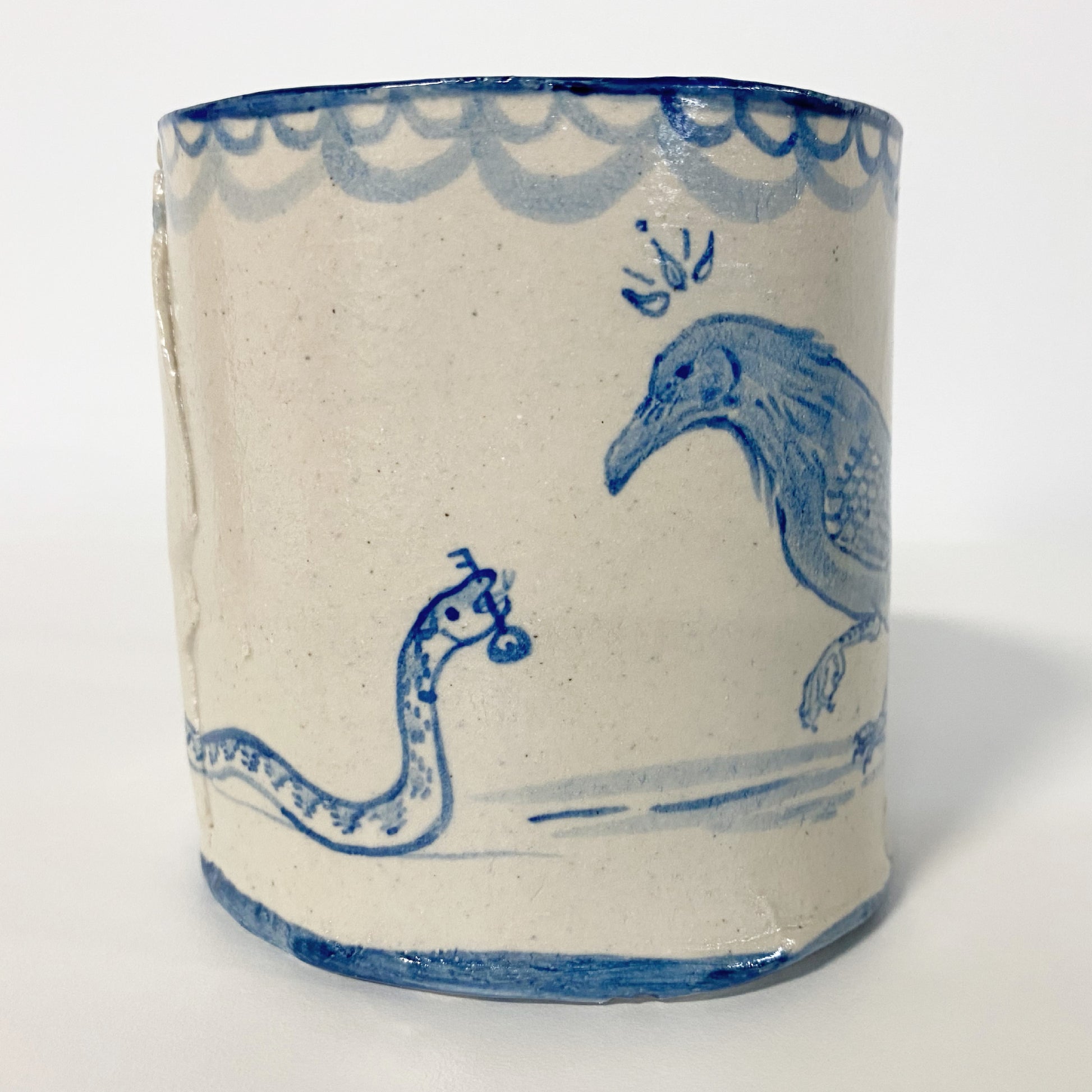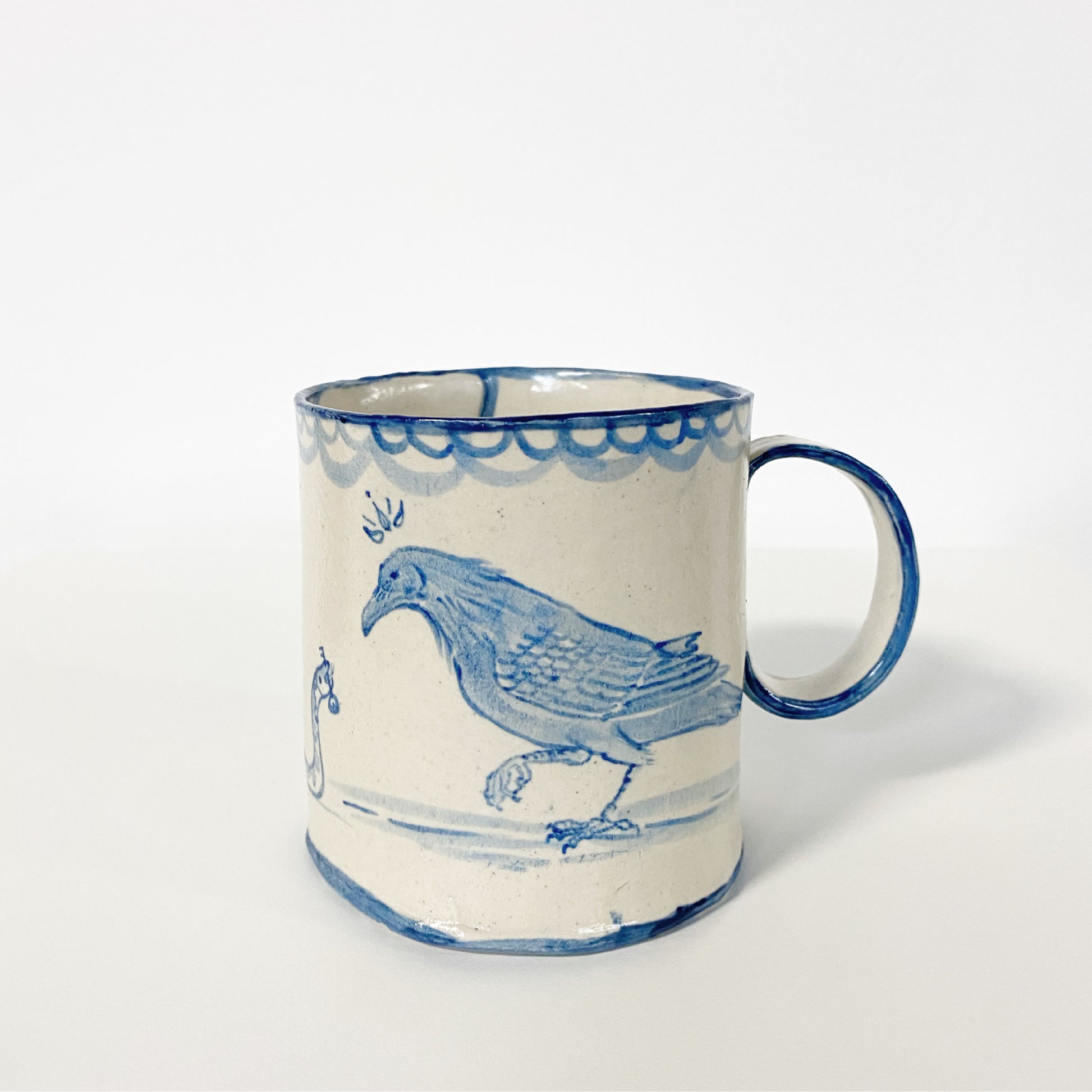 The Country Gentleman Collection by artist Maggie Robertson is a beautiful series of one-of-a-kind stoneware vessels. Each unique piece embraces the seams and irregularities of her hand-built technique complemented by intricate, hand-painted scenes of the English countryside in classic blue and white. The vessels are water tight and food safe, microwaveable and dishwasher safe; however, as they are art pieces and fragile, we would recommend hand washing.
