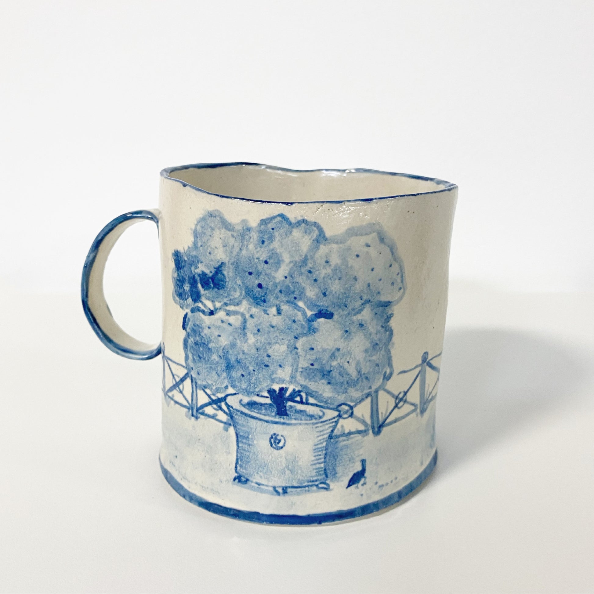 The Country Gentleman Collection by artist Maggie Robertson is a beautiful series of one-of-a-kind stoneware vessels. Each unique piece embraces the seams and irregularities of her hand-built technique complemented by intricate, hand-painted scenes of the English countryside in classic blue and white. The vessels are water tight and food safe, microwaveable and dishwasher safe; however, as they are art pieces and fragile, we would recommend hand washing.