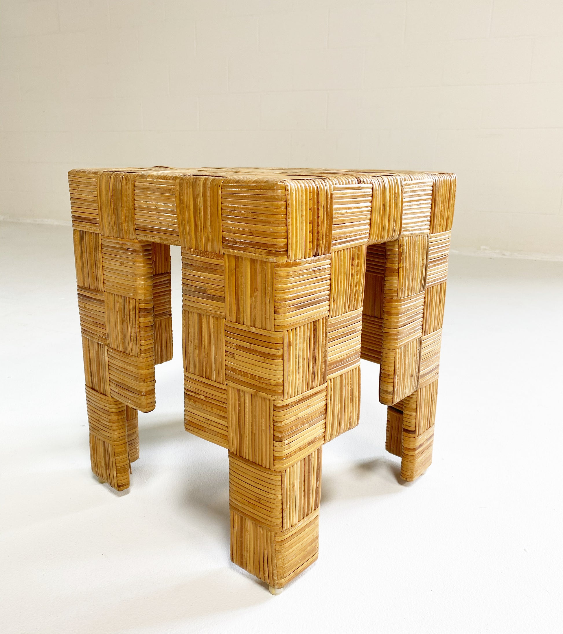 A great example from Probber's Artisan Collection. This stool is a prototype of a design. We like to use it as a side table.