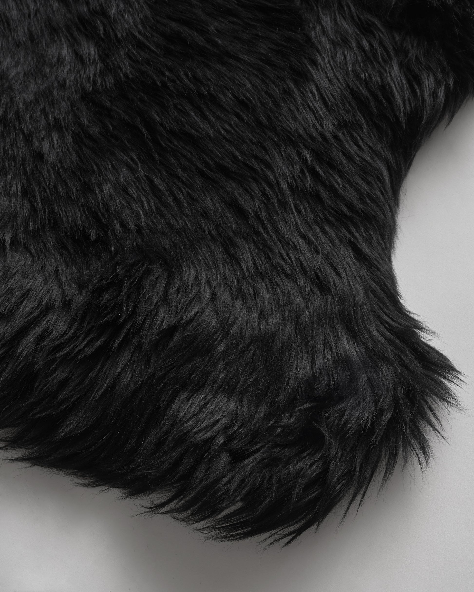 This thick and beautiful sheepskin in black is so soft and cozy.