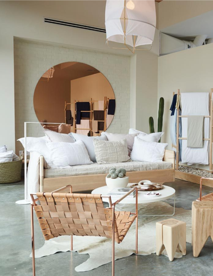 A Forsyth cowhide rug in the Parachute Home flaship store in Venice, CA Click Here