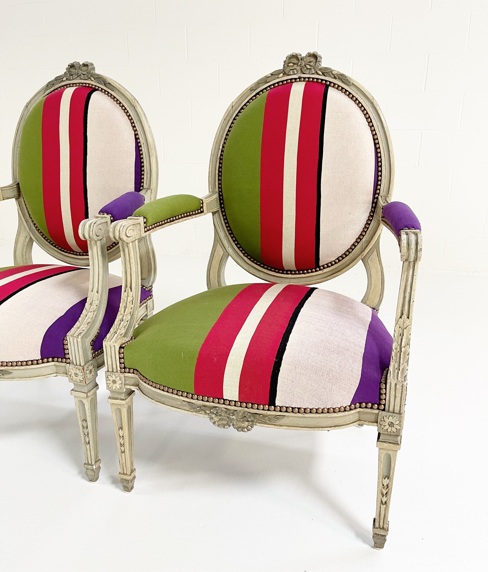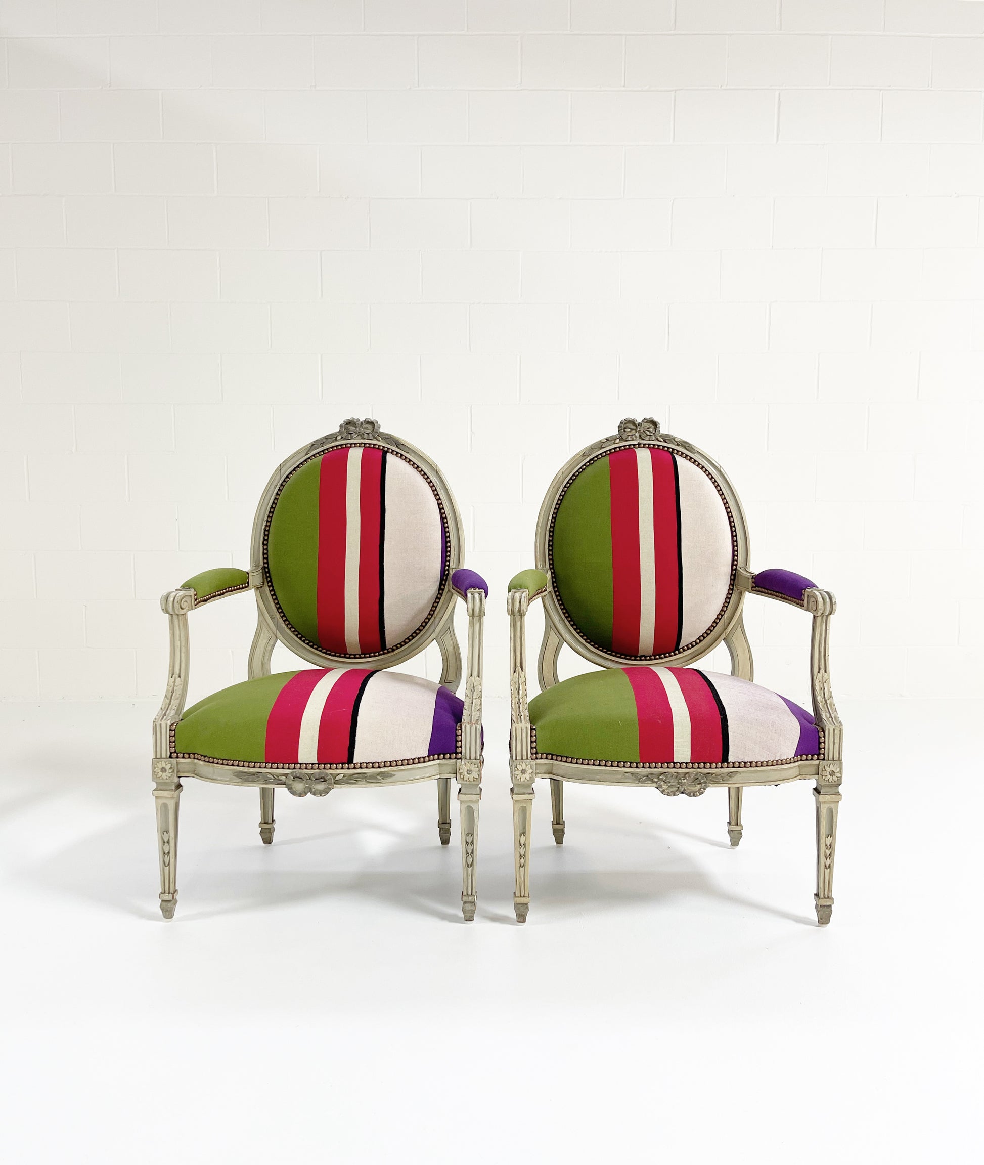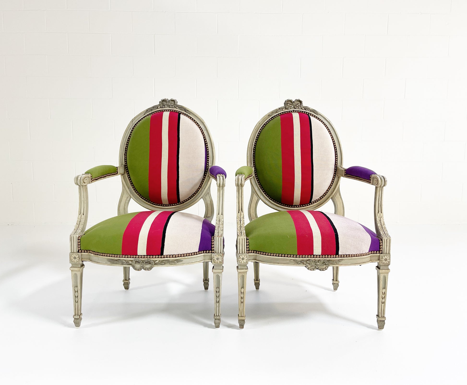 18th Century Louis XVI Fauteuils in Colville Cristobal Cotton