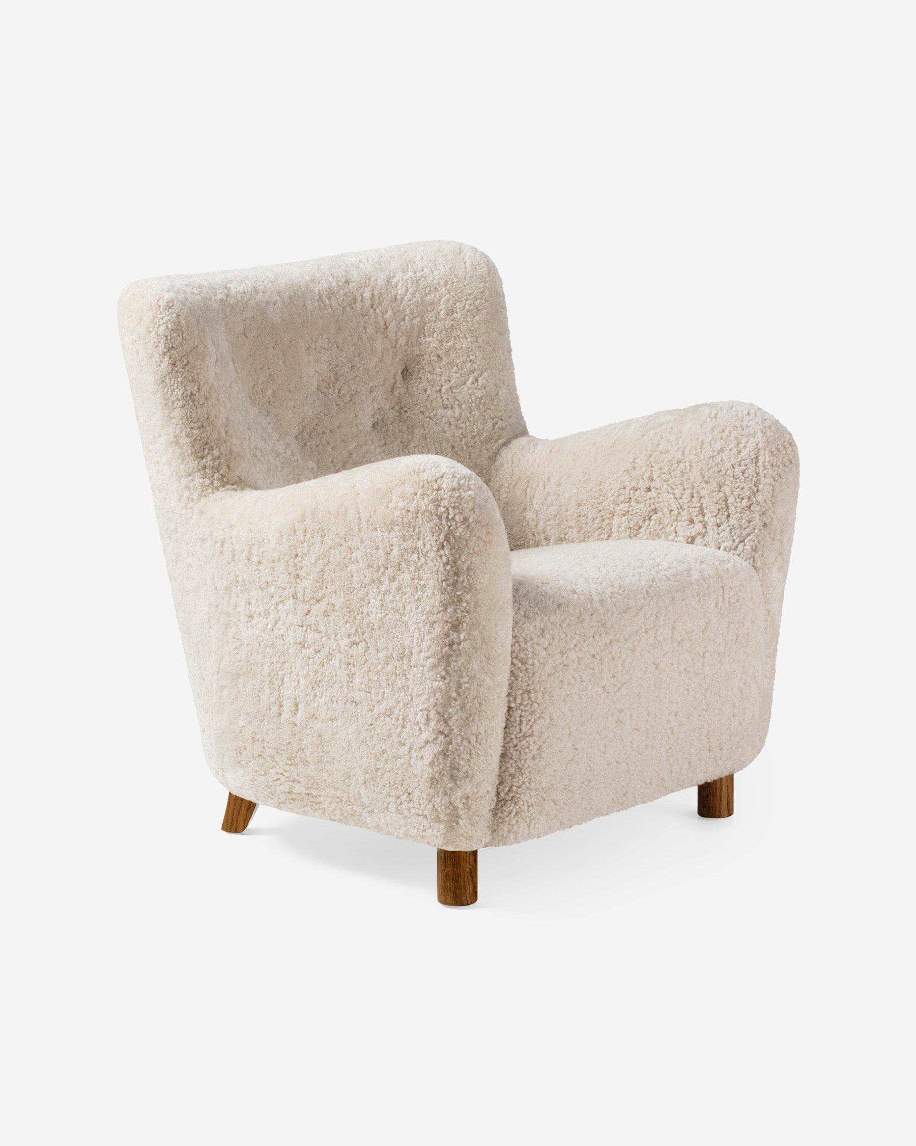 The 54 chair is a contemporary update of an obscure design originating from the Midtjylland region of Denmark in the early 1950s. Effortlessly straddling both traditional and contemporary styles, the 54 is perfectly at home in a wide range of interiors. This example is upholstered in genuine Australian sheepskin.