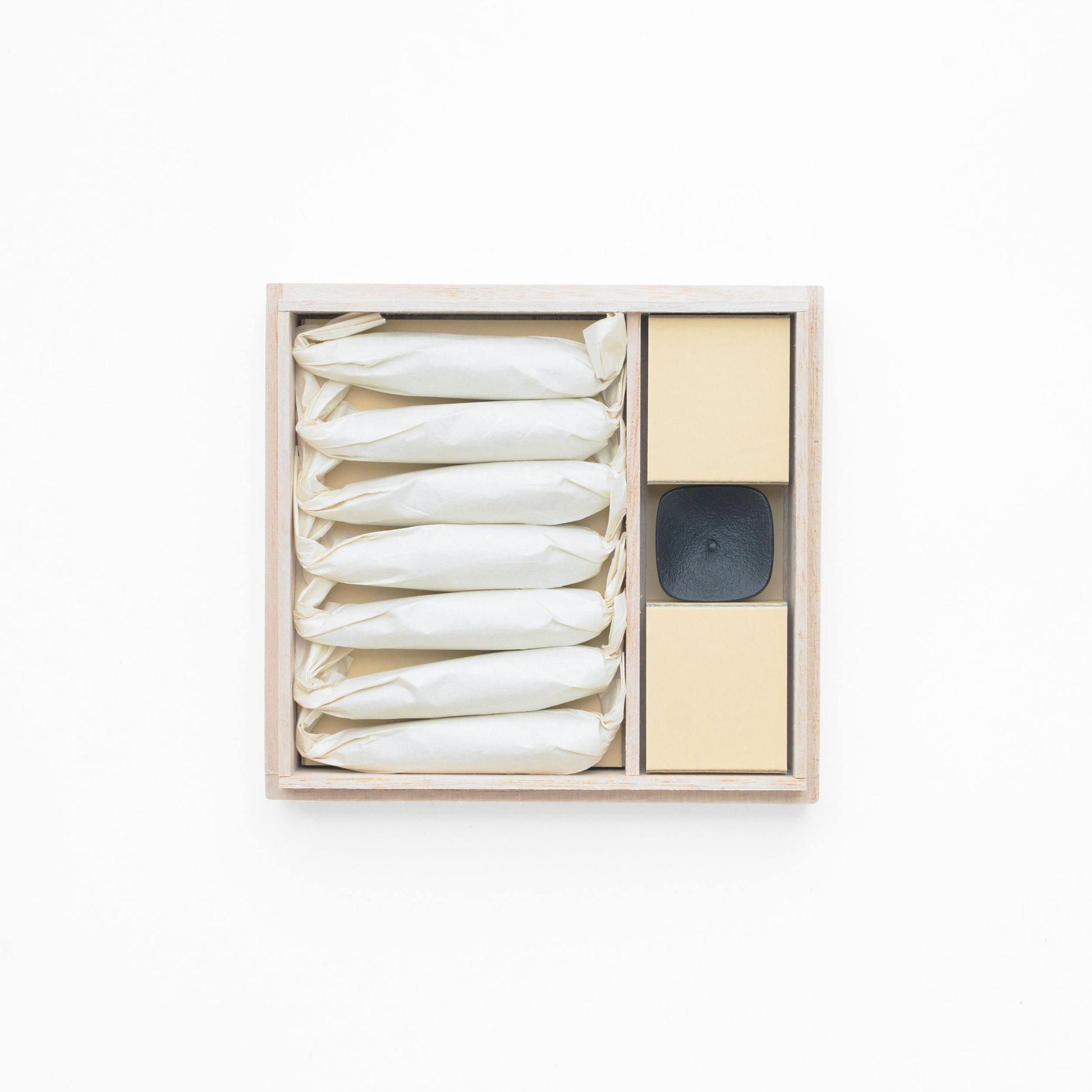 This set of 7 candles is made in Japan by manufacturer, Takazawa. The shape of the candle draws inspiration from pine trees. Perfect for meditation time, dinner time, or any time. The set comes with an iron candle stand.