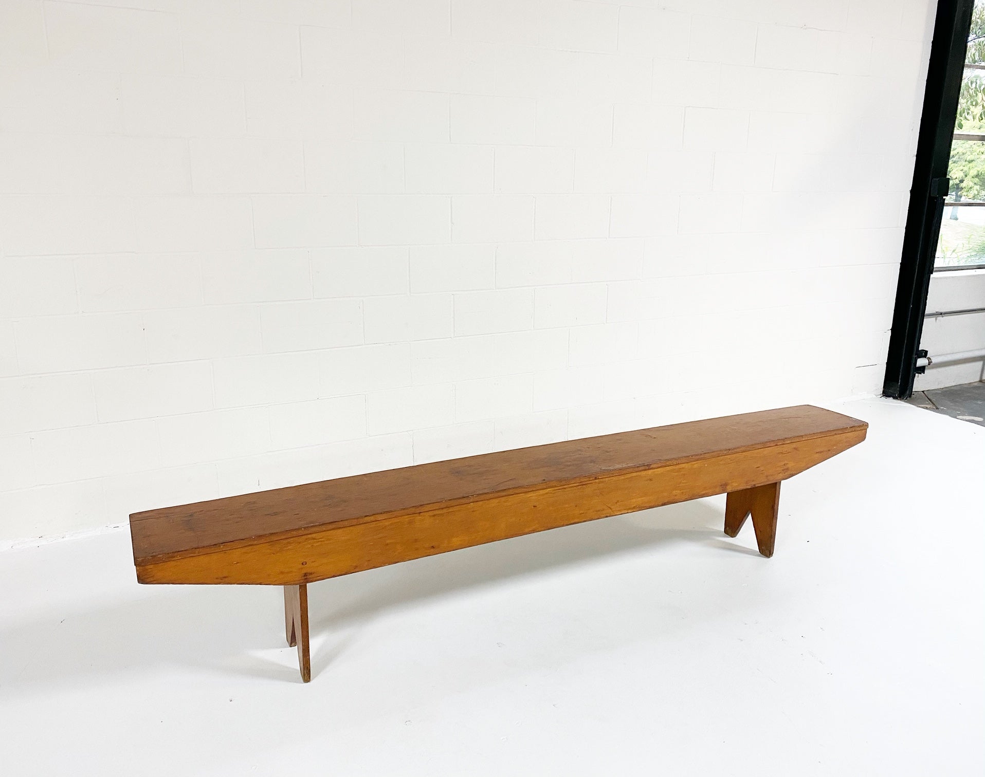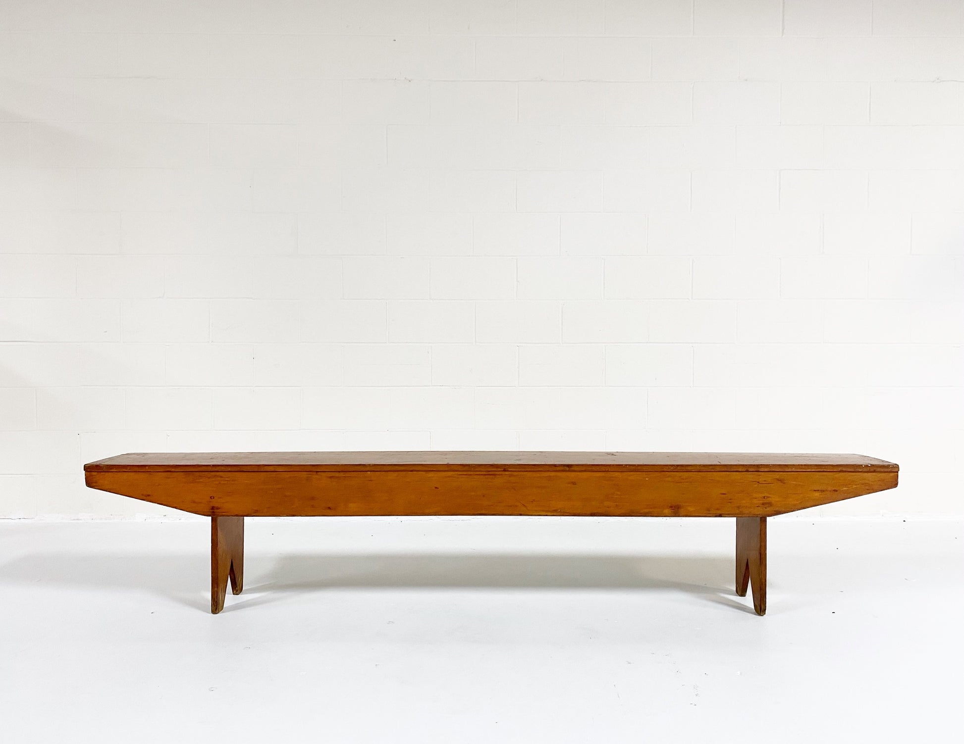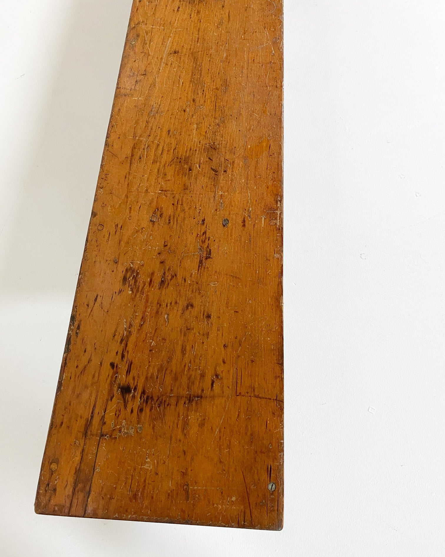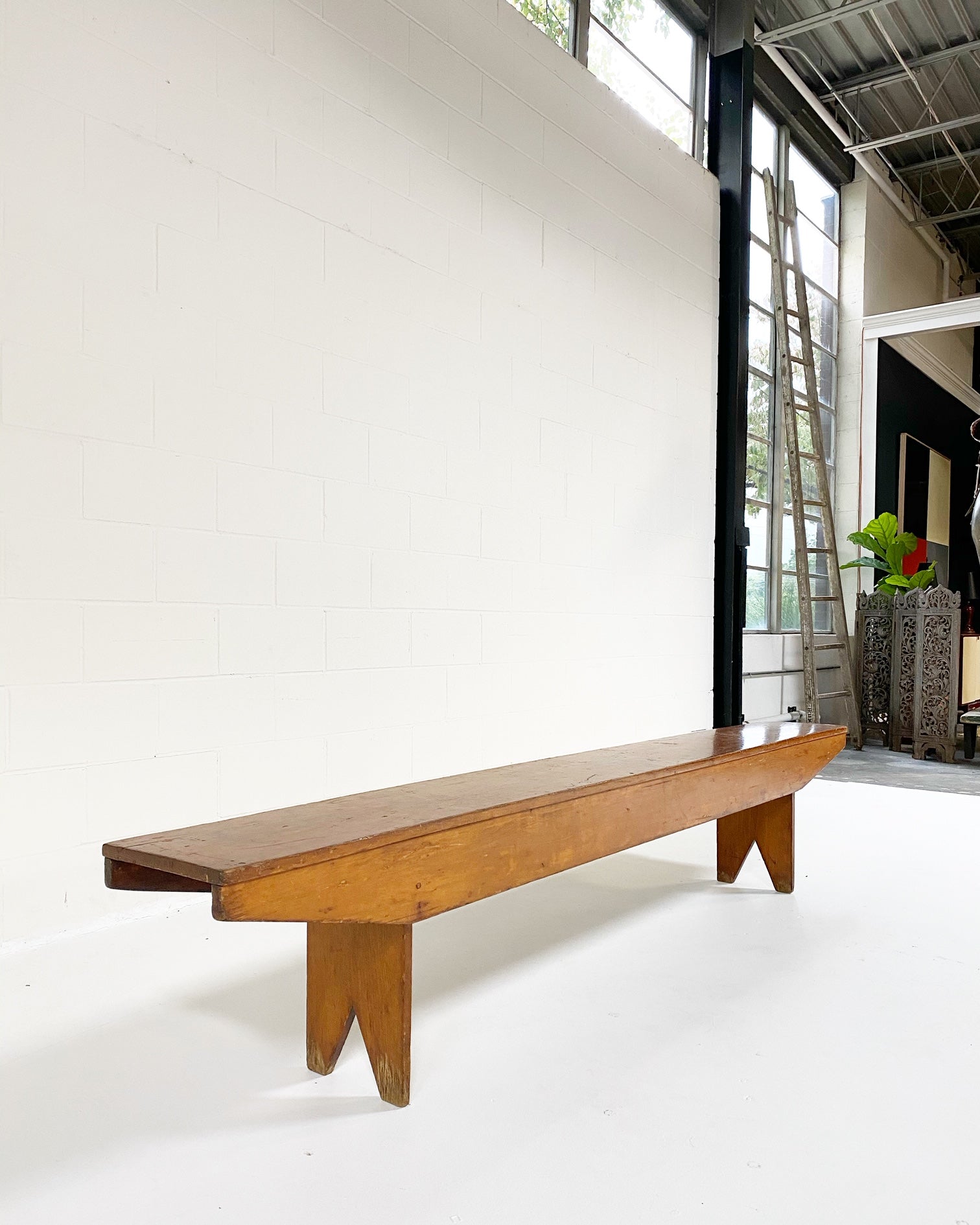 This vintage, primitive farmhouse bench is so beautiful! At 8 feet long, the length alone is a showstopper. If you'd like to add a custom cushion to this bench, we are happy to quote the project. Just ask.