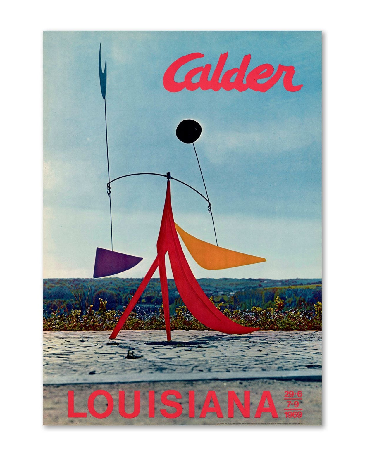 Louisiana poster with the work, The Iguana, (1968), by the American artist, Alexander Calder, (1898-1976), from Louisiana's Calder exhibition in 1969. Since 1976, three of Calder's iconic sculptures have been permanent fixtures in Louisiana's sculpture park, and the view of Øresund from the Calder terrace has since become an integral part of a visit to Louisiana.