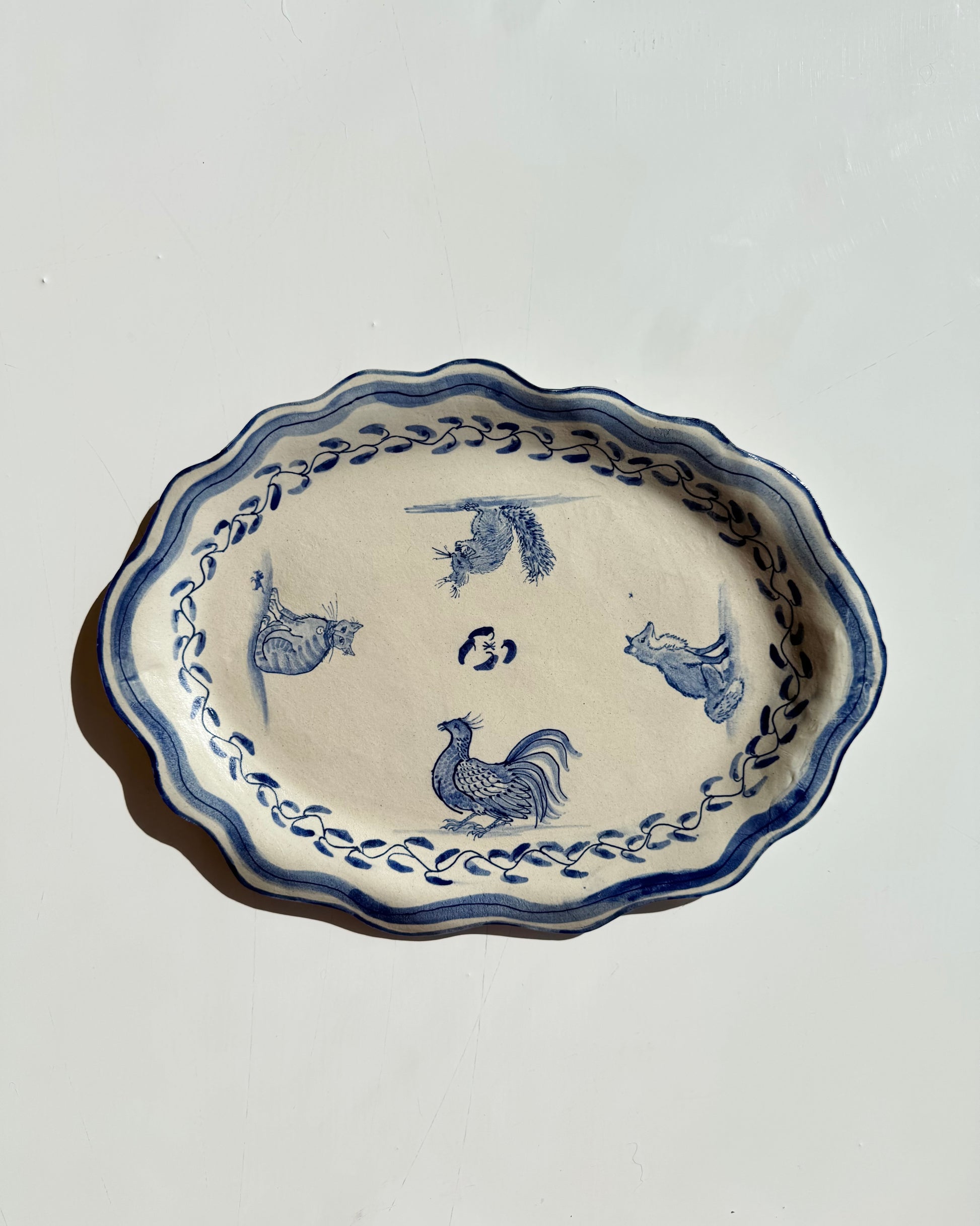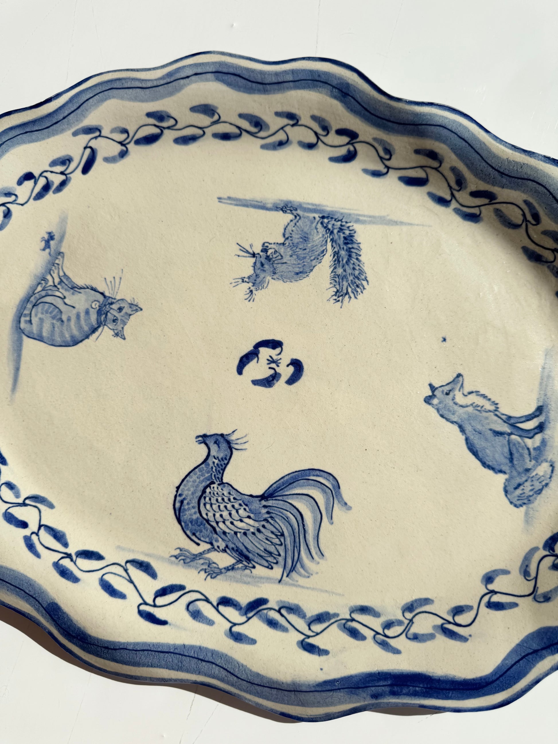 The Country Gentleman Collection by artist Maggie Robertson is a beautiful series of one-of-a-kind stoneware vessels. Each unique piece embraces the seams and irregularities of her hand-built technique complemented by intricate, hand-painted scenes of the English countryside in classic blue and white. The vessels are water tight and food safe, microwaveable and dishwasher safe; however, as they are art pieces and fragile, we would recommend hand washing.