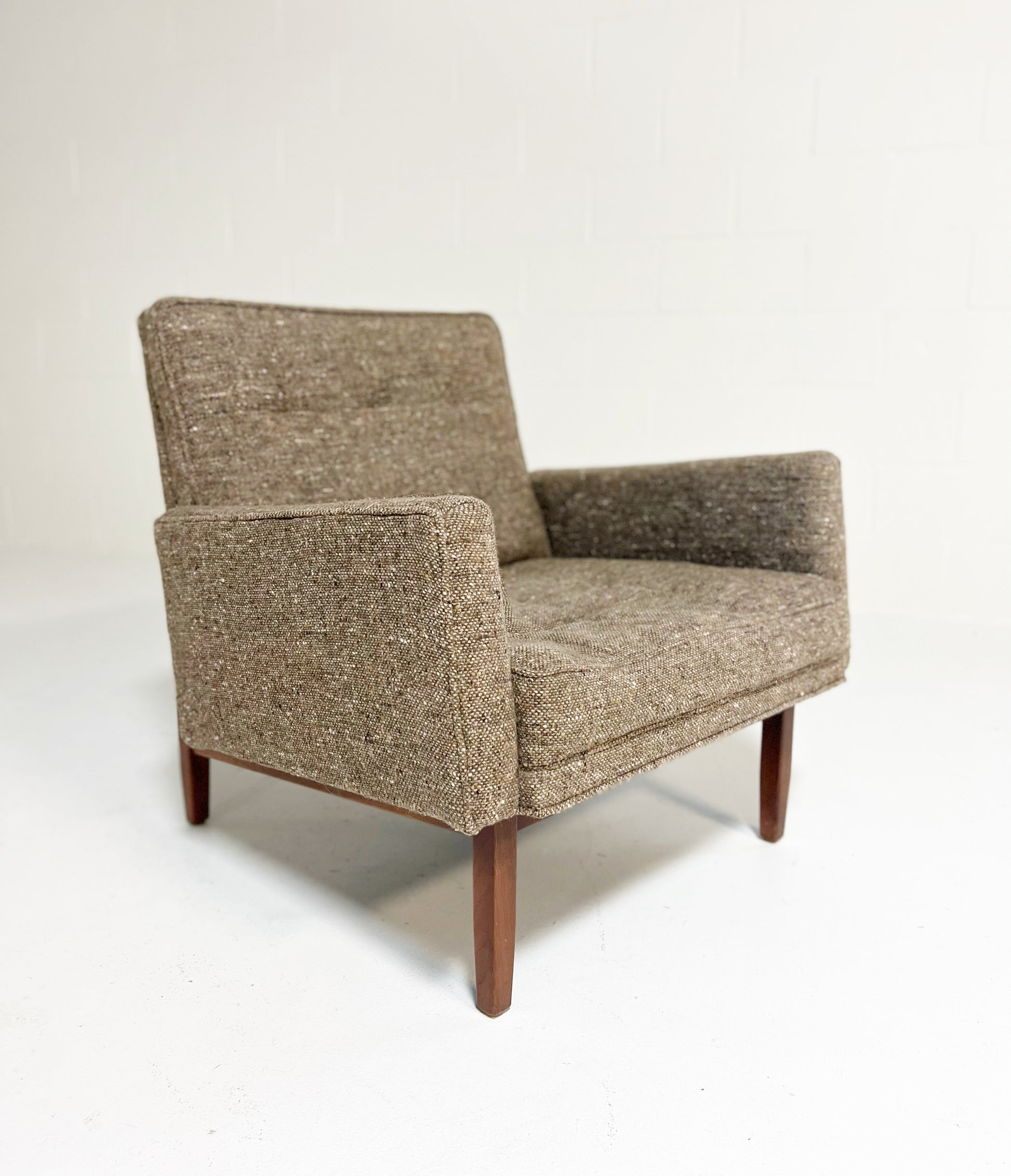 This Florence Knoll design is iconic. We love the architectural lines and geometric profile. The fabric is the original tweed and needs an update.