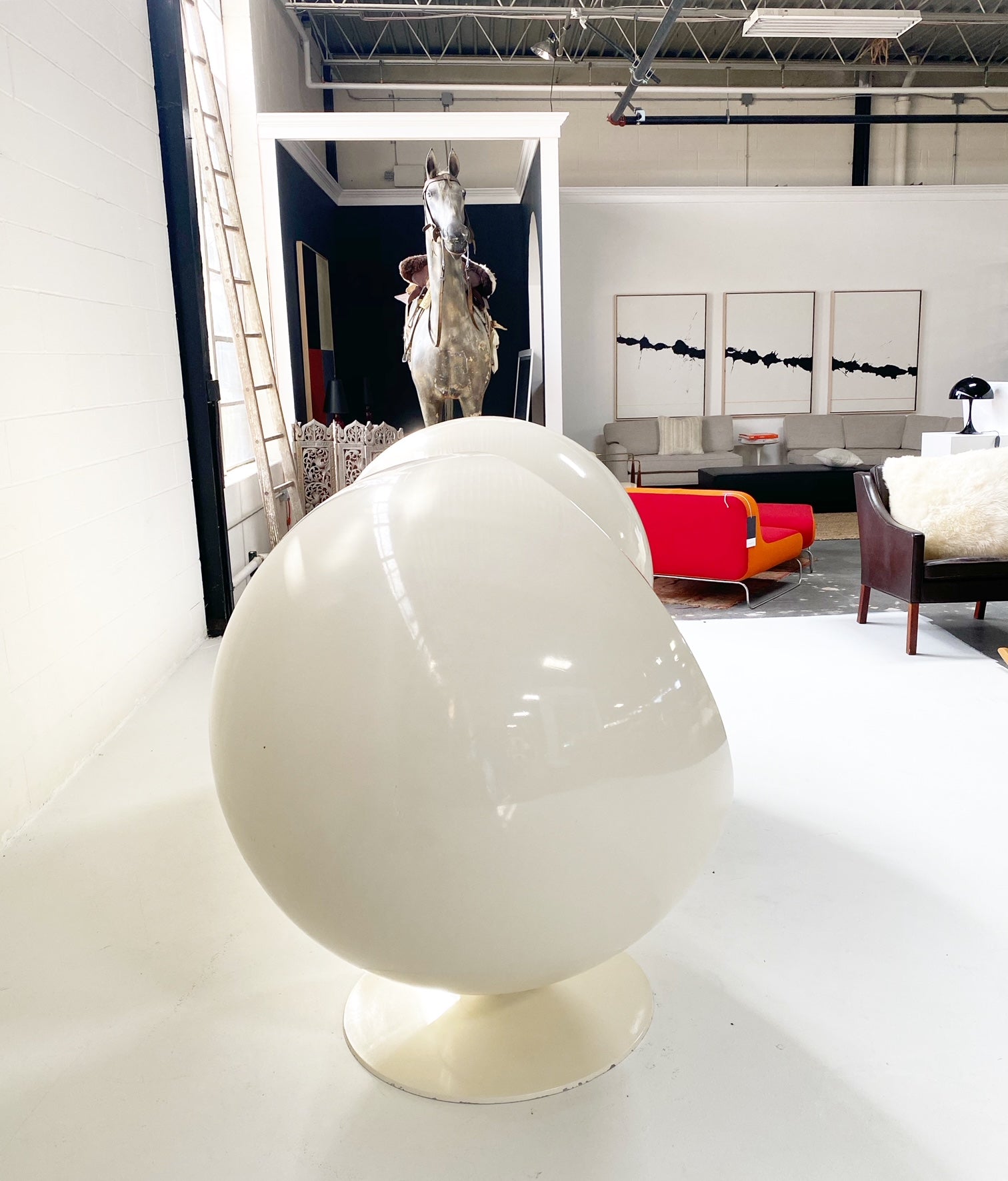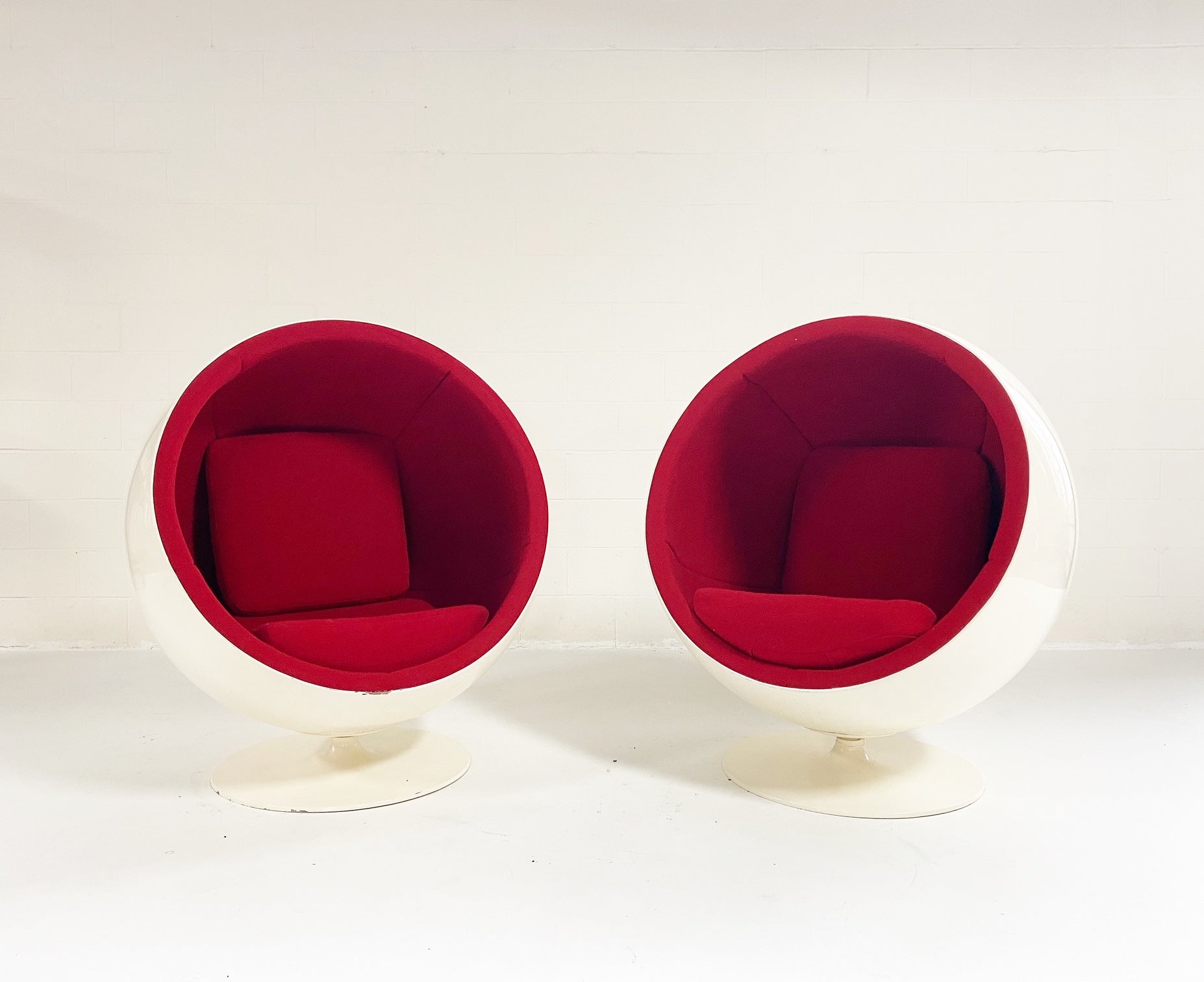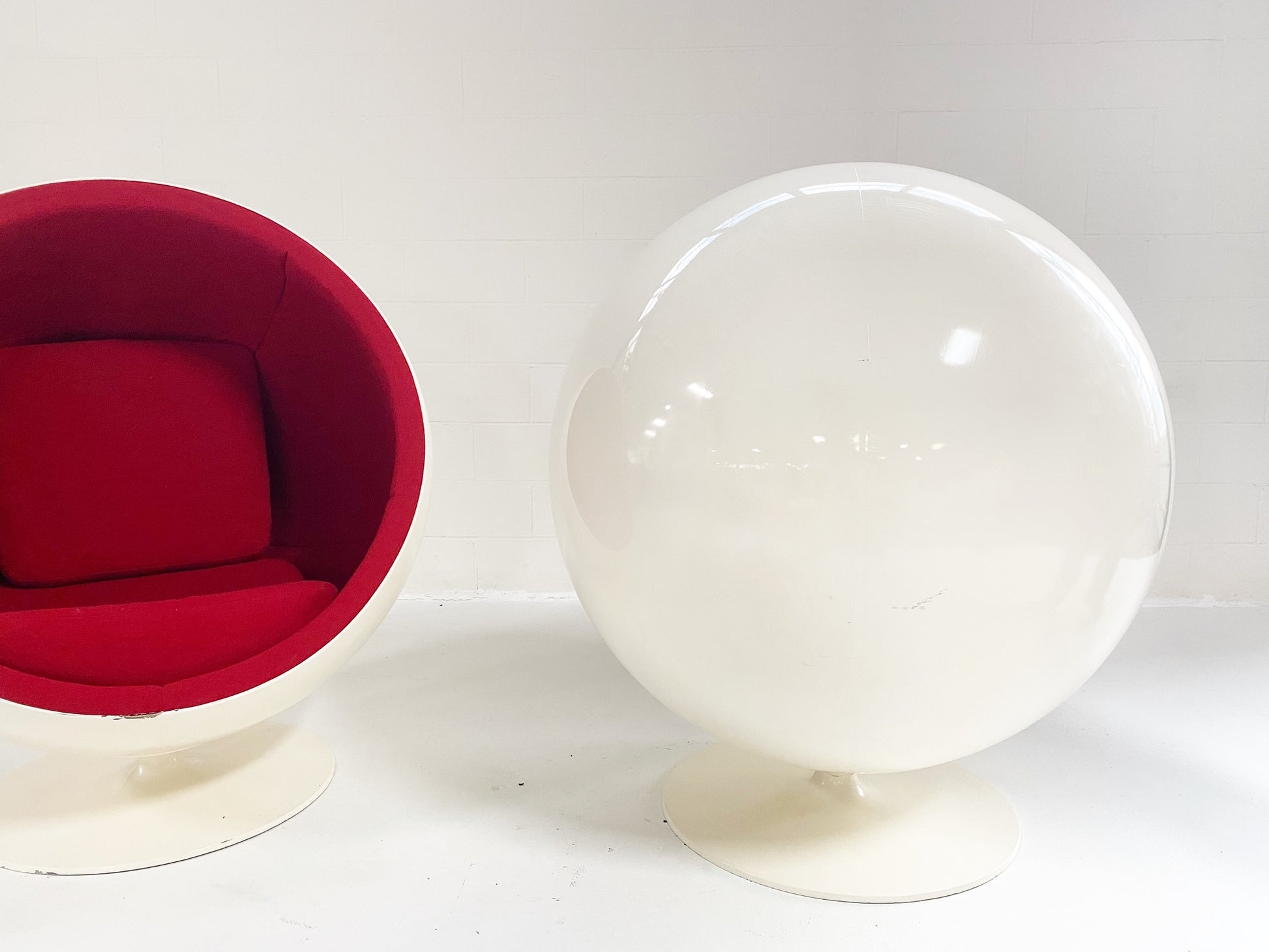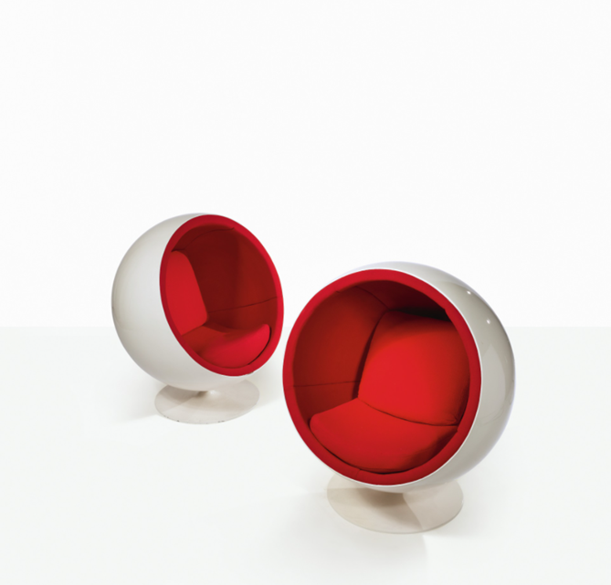 We love balls! Mid-century masterpieces. From Aarnio Originals website: The Ball Chair was designed in 1963 and debuted at the Cologne Furniture Fair in 1966. The chair is one of the most famous and beloved classics of Finnish design and it was the international breakthrough of Eero Aarnio. The Ball Chair can be found in the collections of design museums around the world and it has starred in several movies, music videos, and magazine covers.
