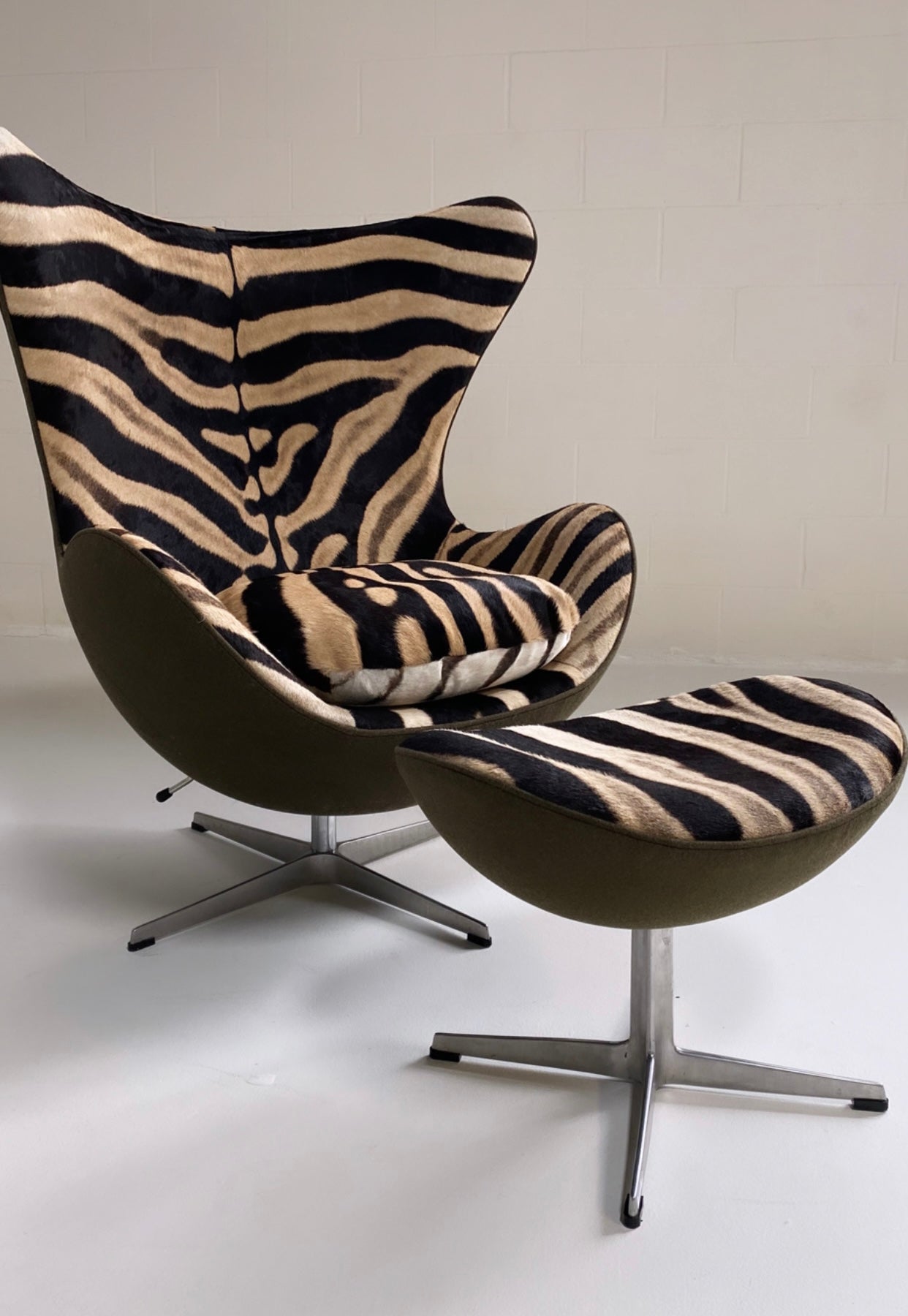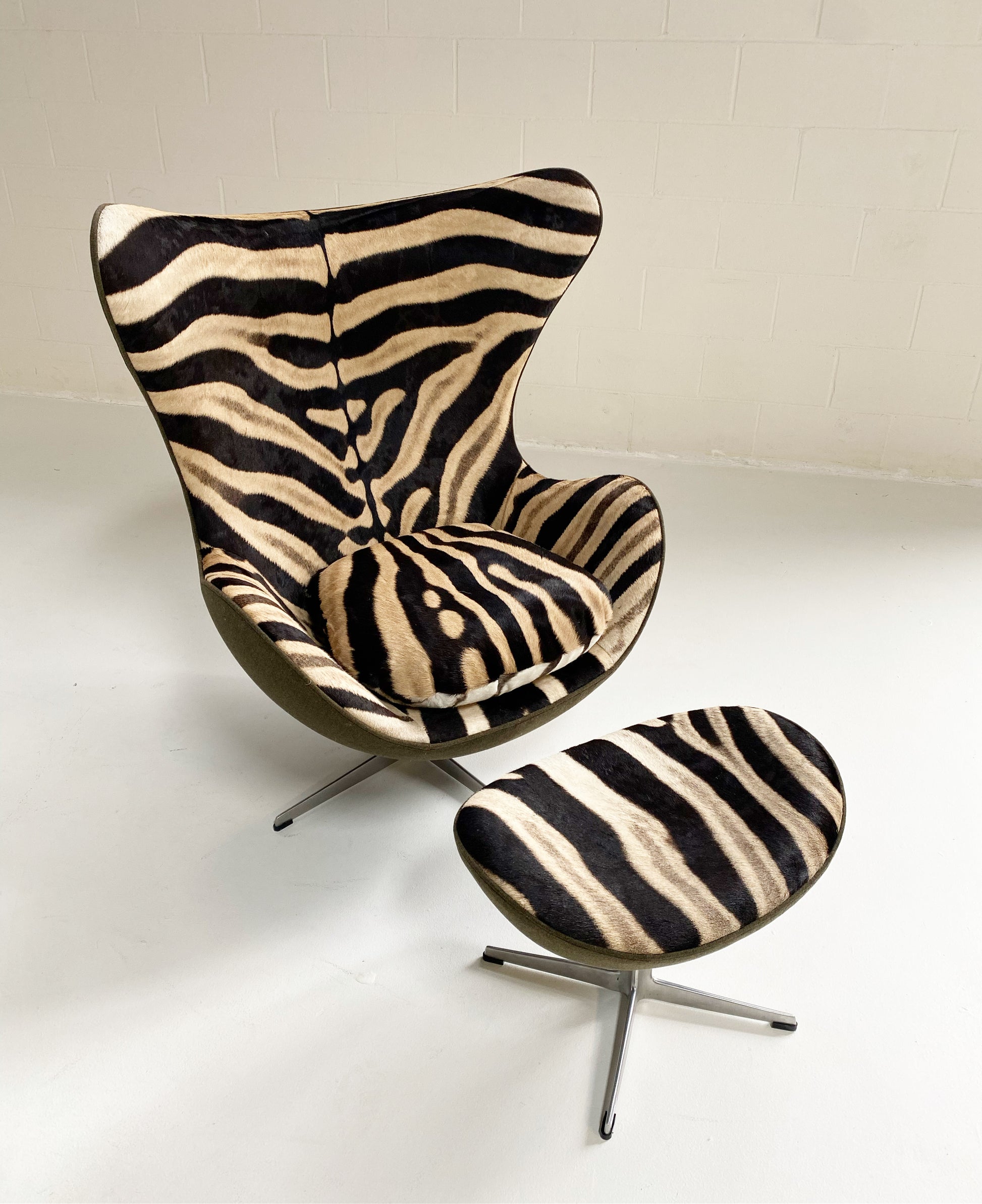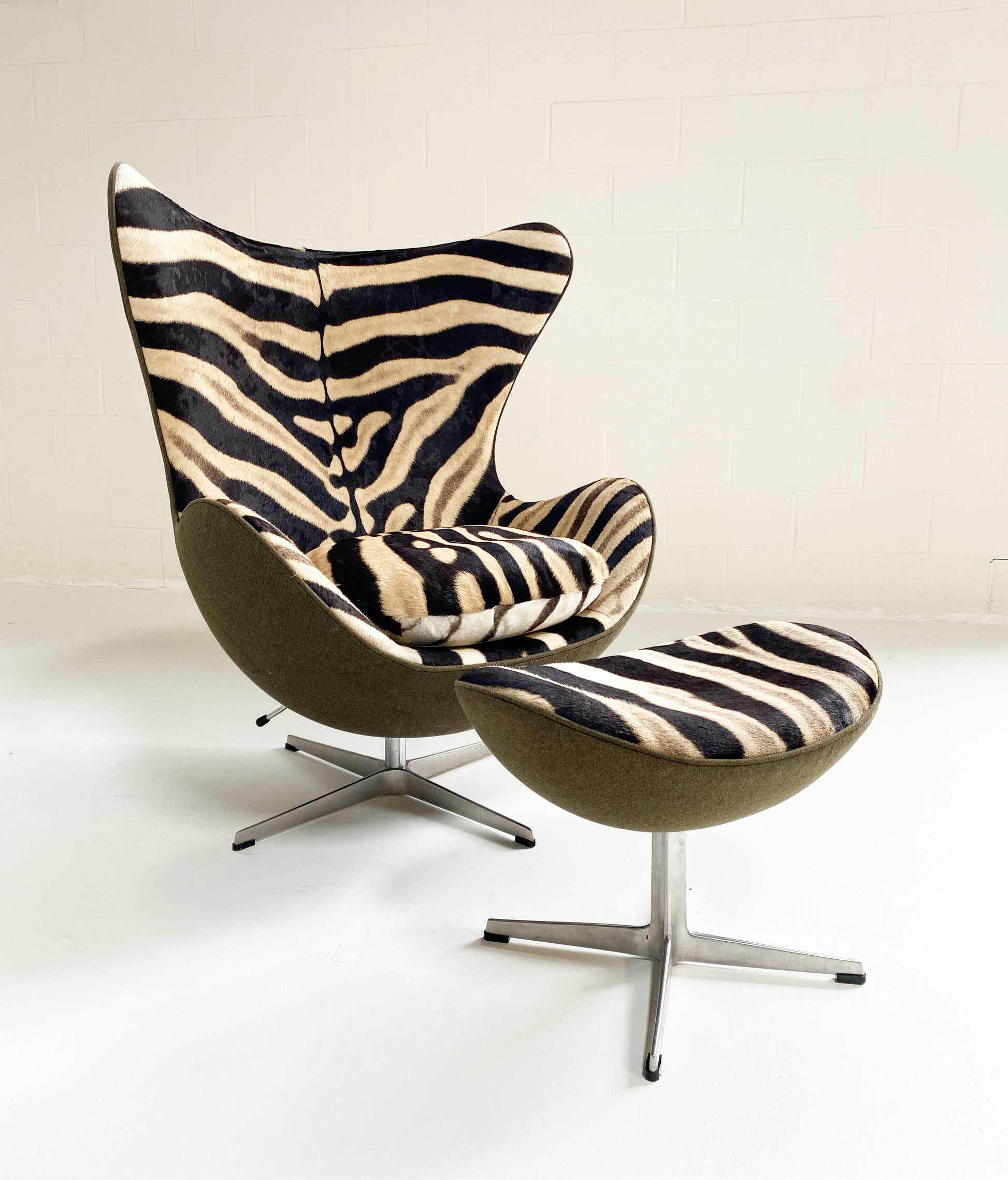 Please allow 8 to 10 weeks for reupholstery and restoration of a vintage Egg Chair and Ottoman in zebra.