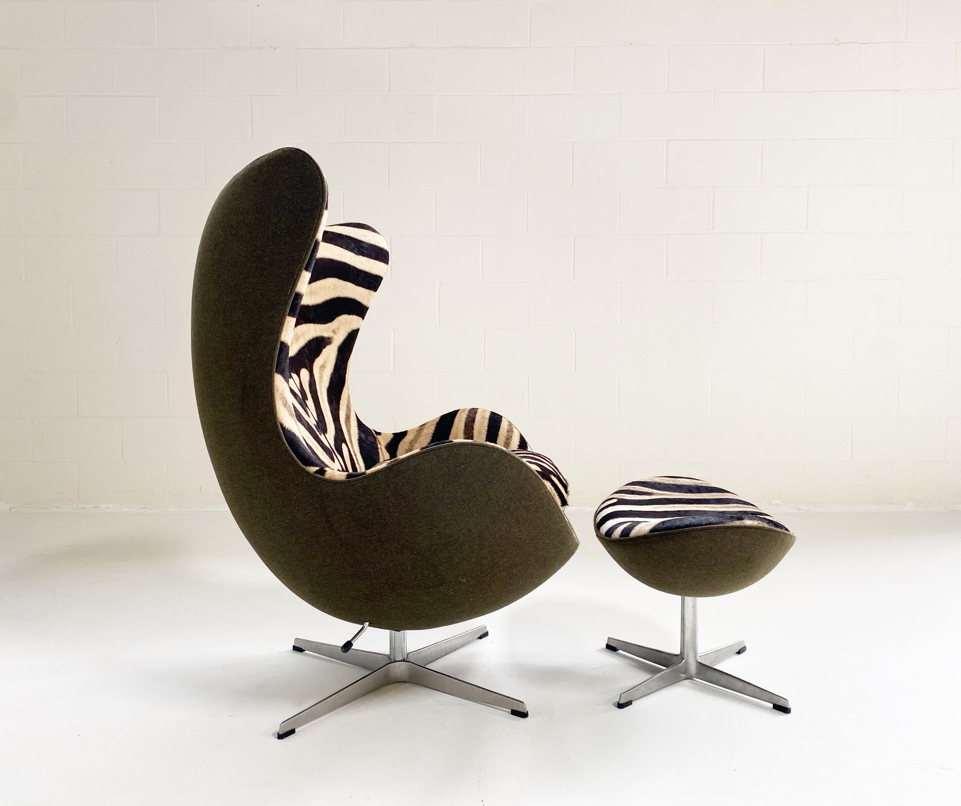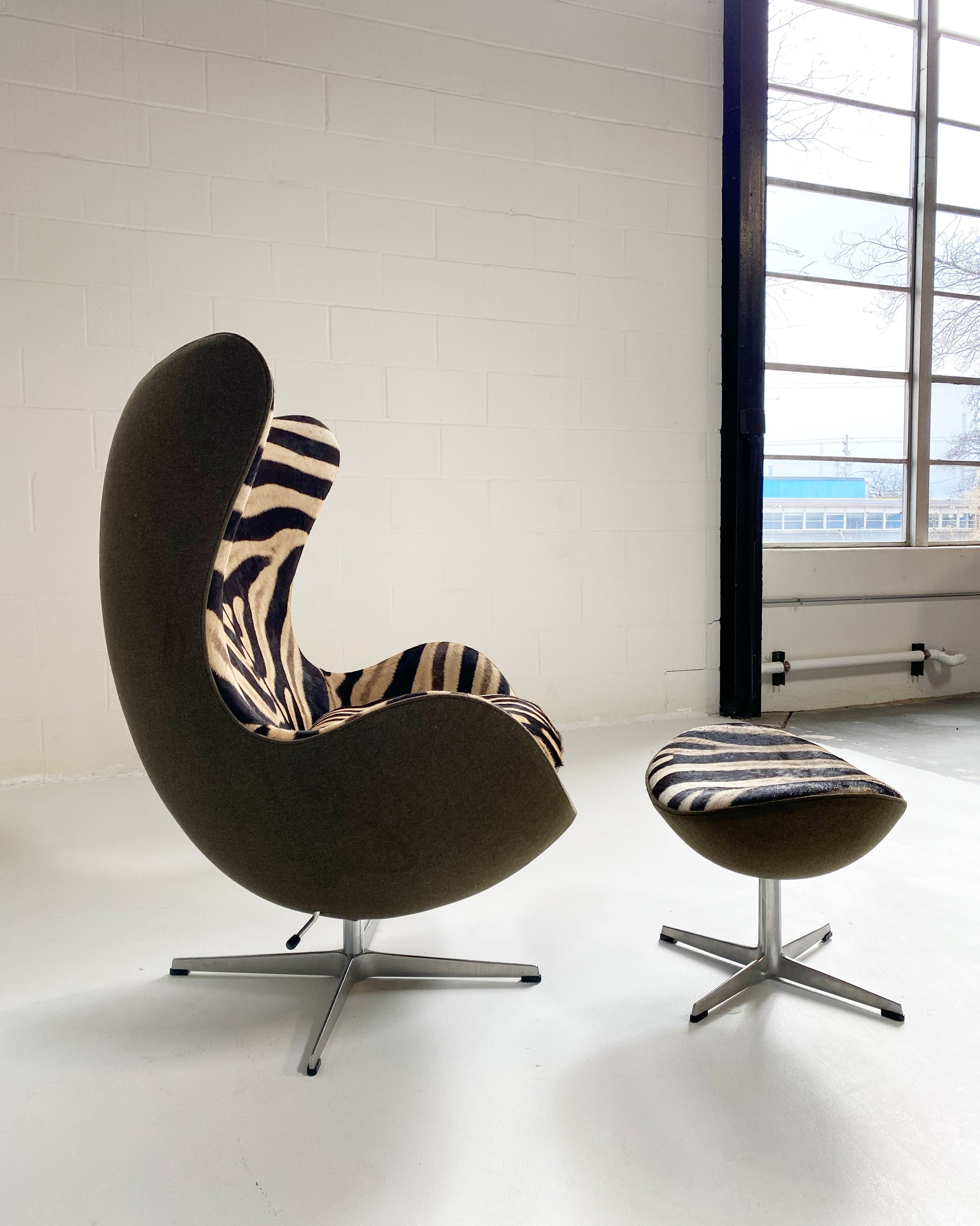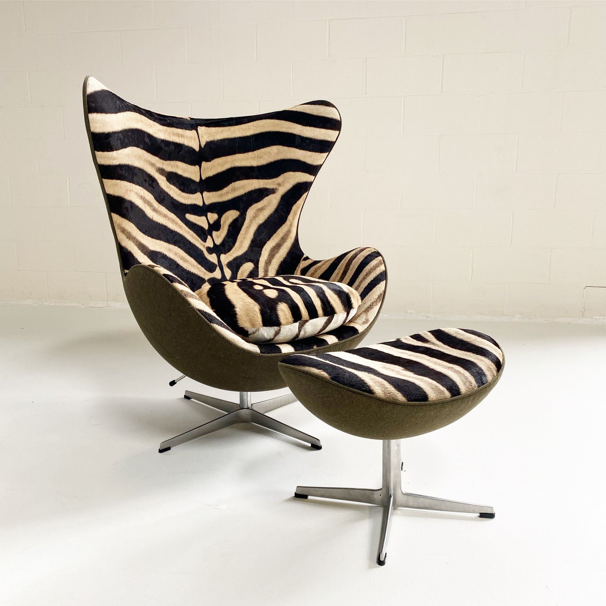 Please allow 8 to 10 weeks for reupholstery and restoration of a vintage Egg Chair and Ottoman in zebra.