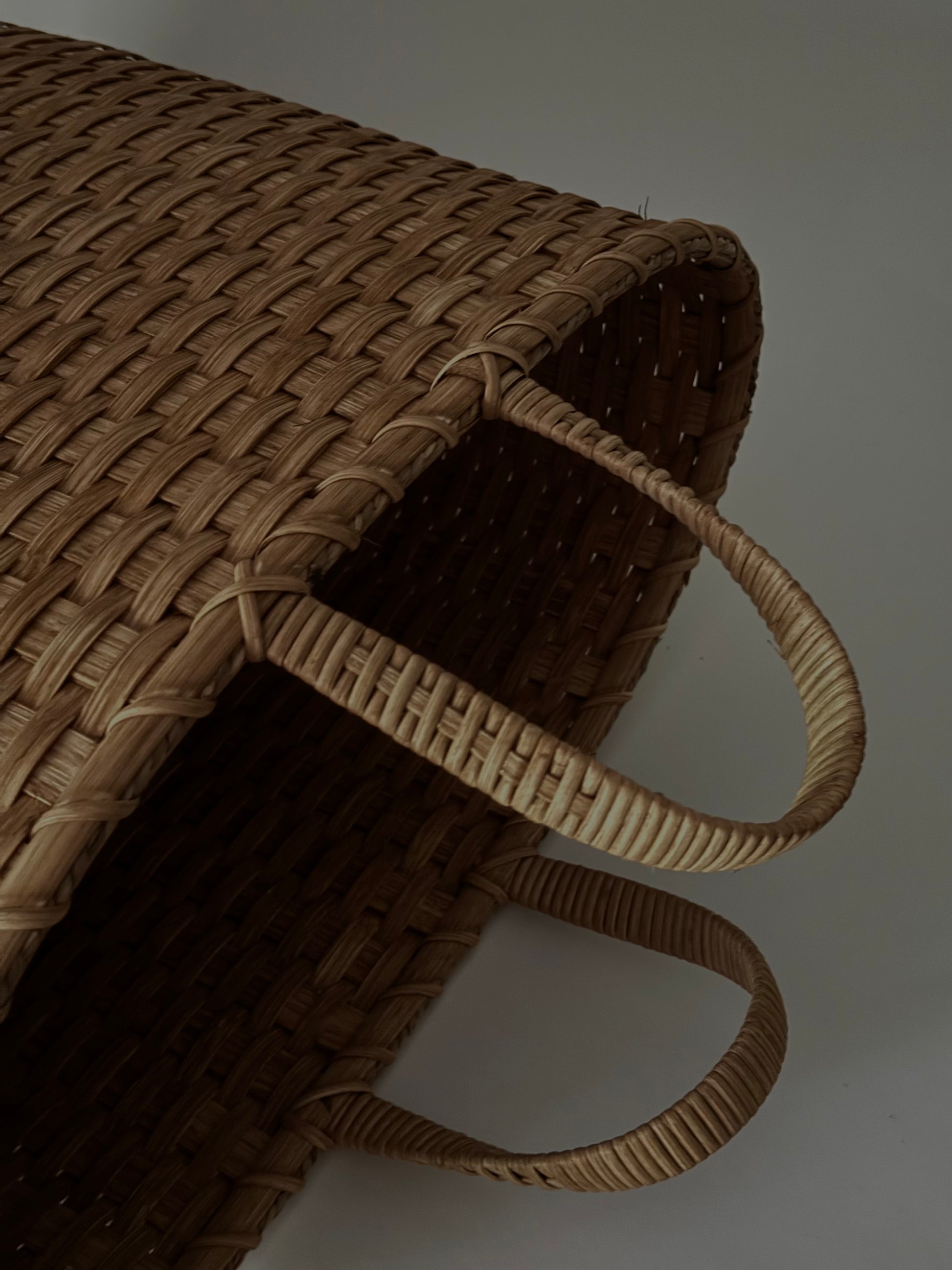 Oversized rattan basket for big trips to the market, throw blankets, the beach, and travel. A beautiful and versatile statement piece in the home and on the go.