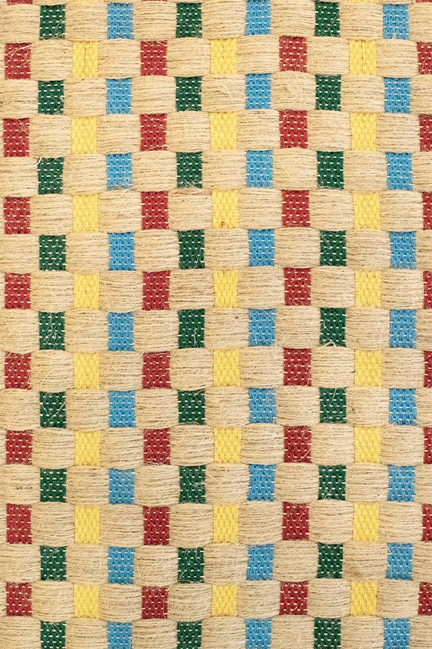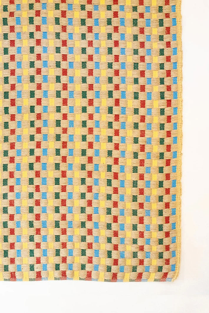 Bisaccia rug in Multicolor is a beautiful rug consisting of a thick surface of jute threads and cotton crafted in a checkered pattern of primary colors. The beautiful rug is part of a collaboration between Chiarastella Cattana and textile workshop Le Costantine. Each motif is created by hand on antique four-pedal looms.