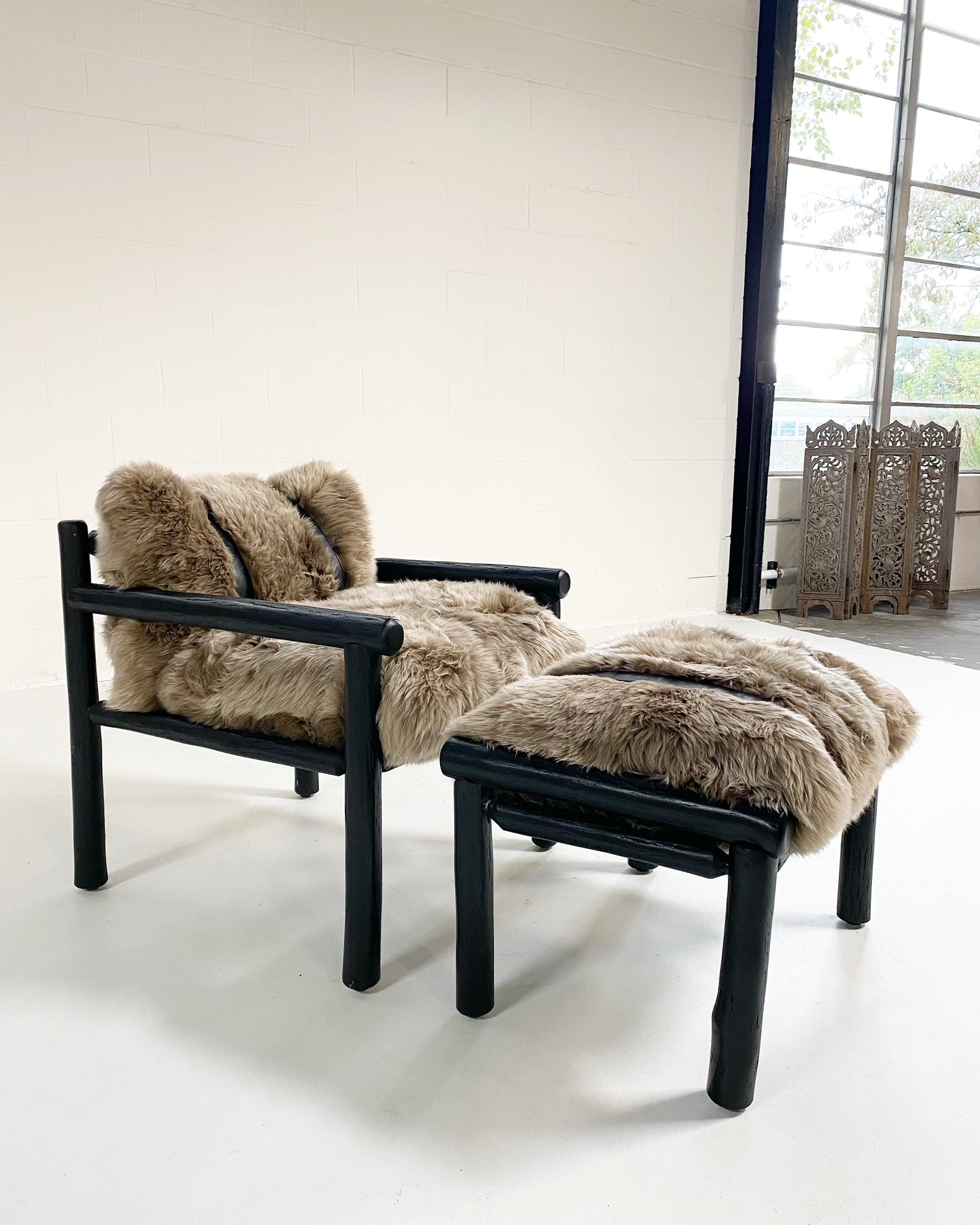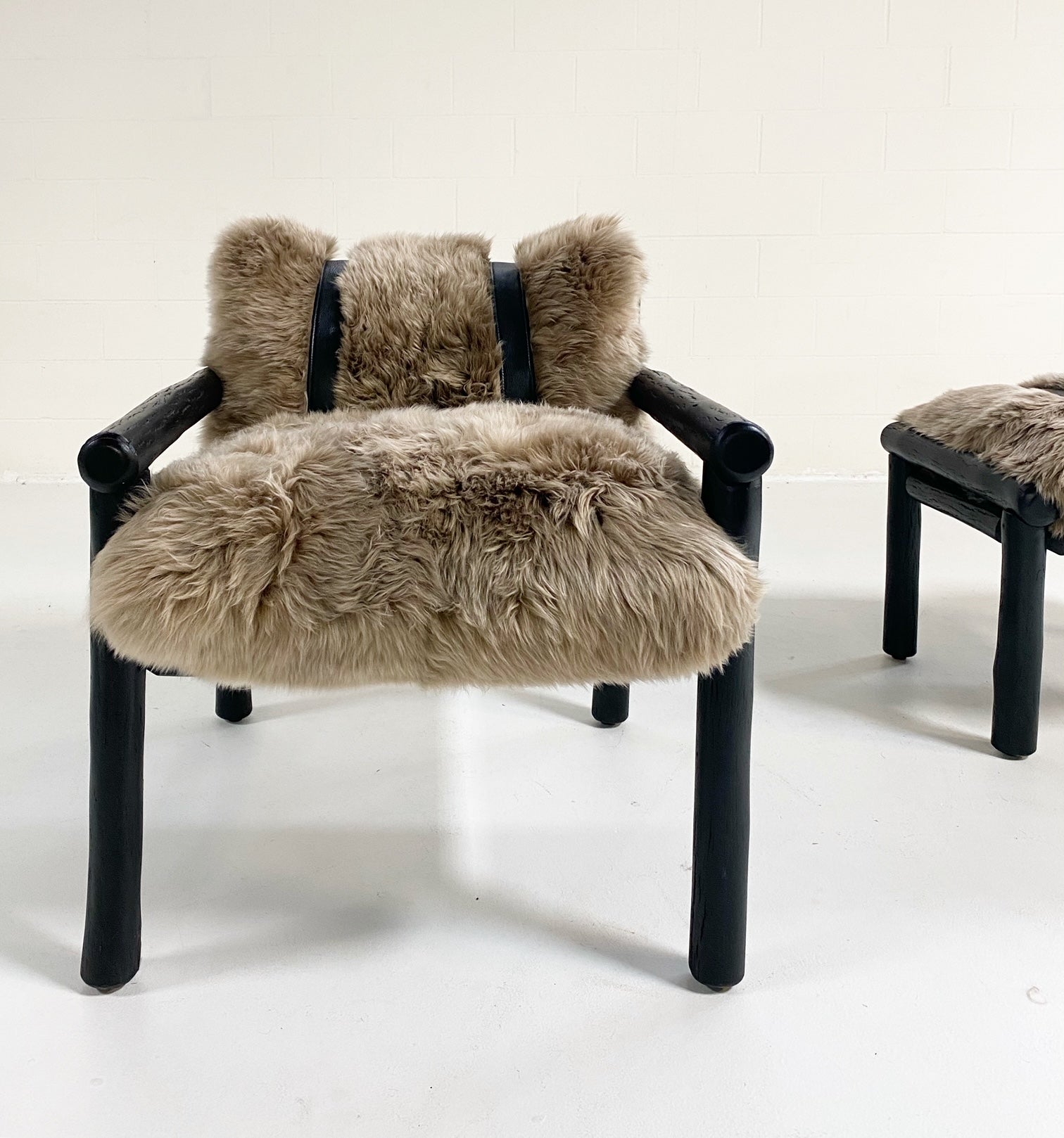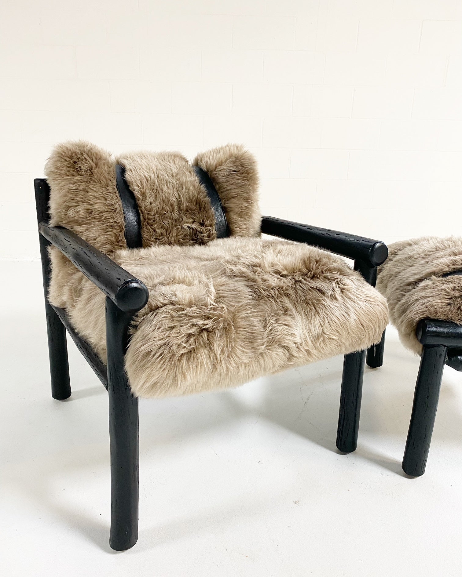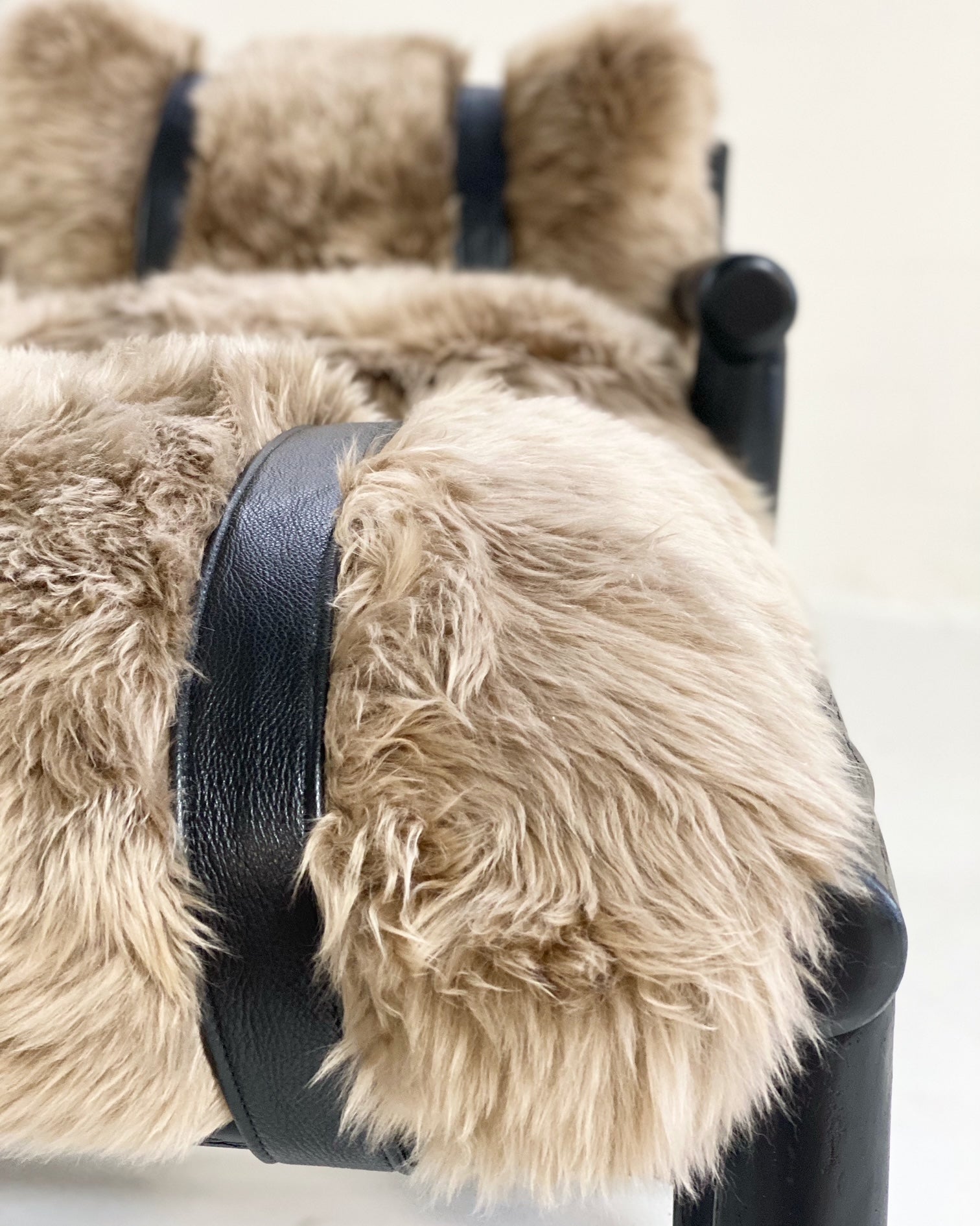 Images show the chair with California Sheepskins and New Zealand Sheepskins. For a chic design accent, we added straps handcrafted of supple buffalo leather from ultra chic, luxury Italian label Loro Piana. Sure, these pieces would easily fit into any Mountain chalet but how chic and cozy would it look in a Manhattan loft. #ChairsWeLove