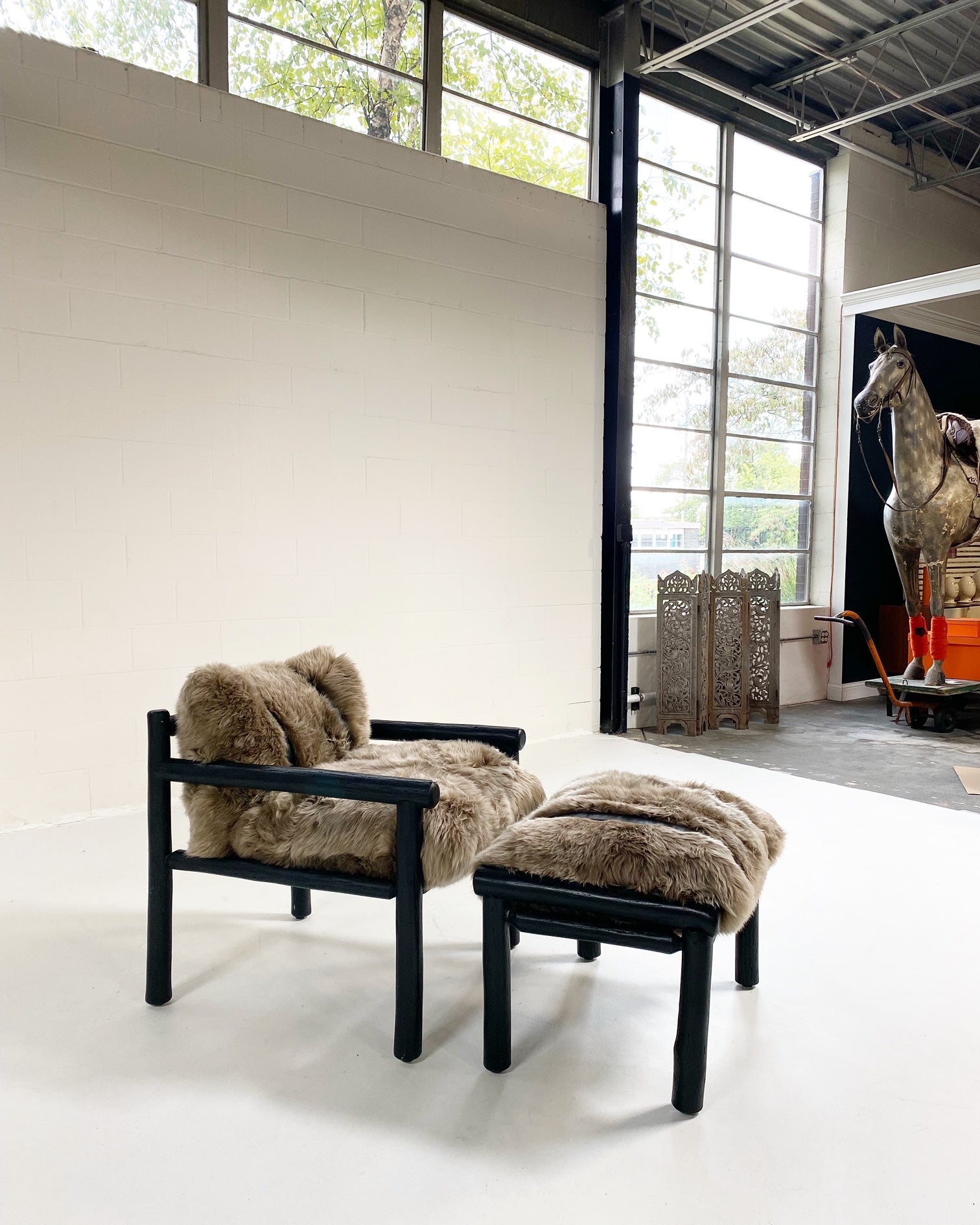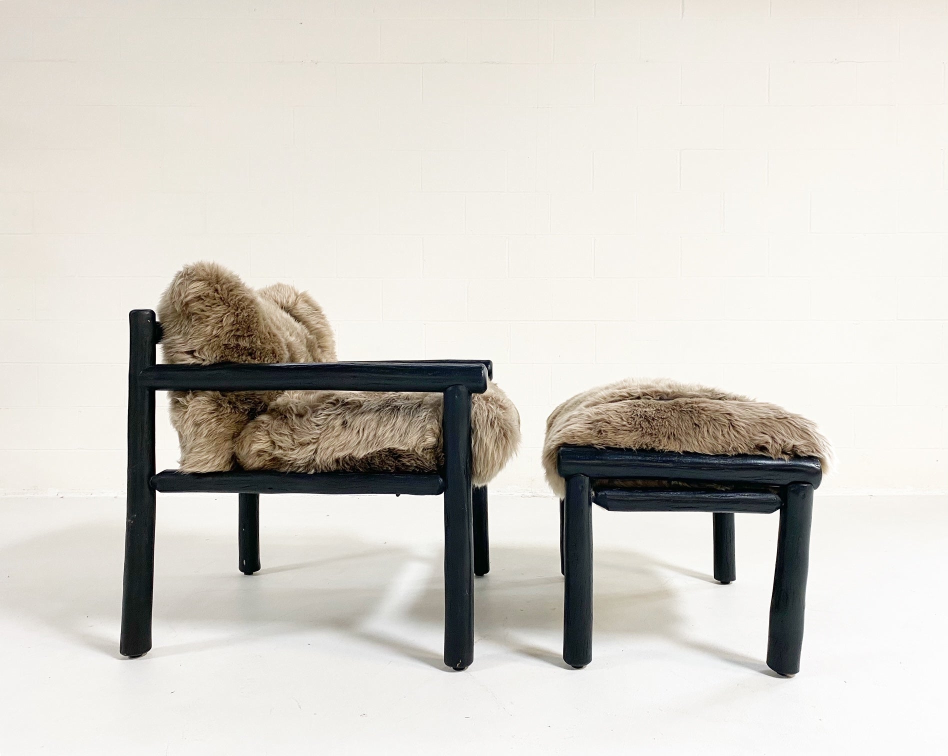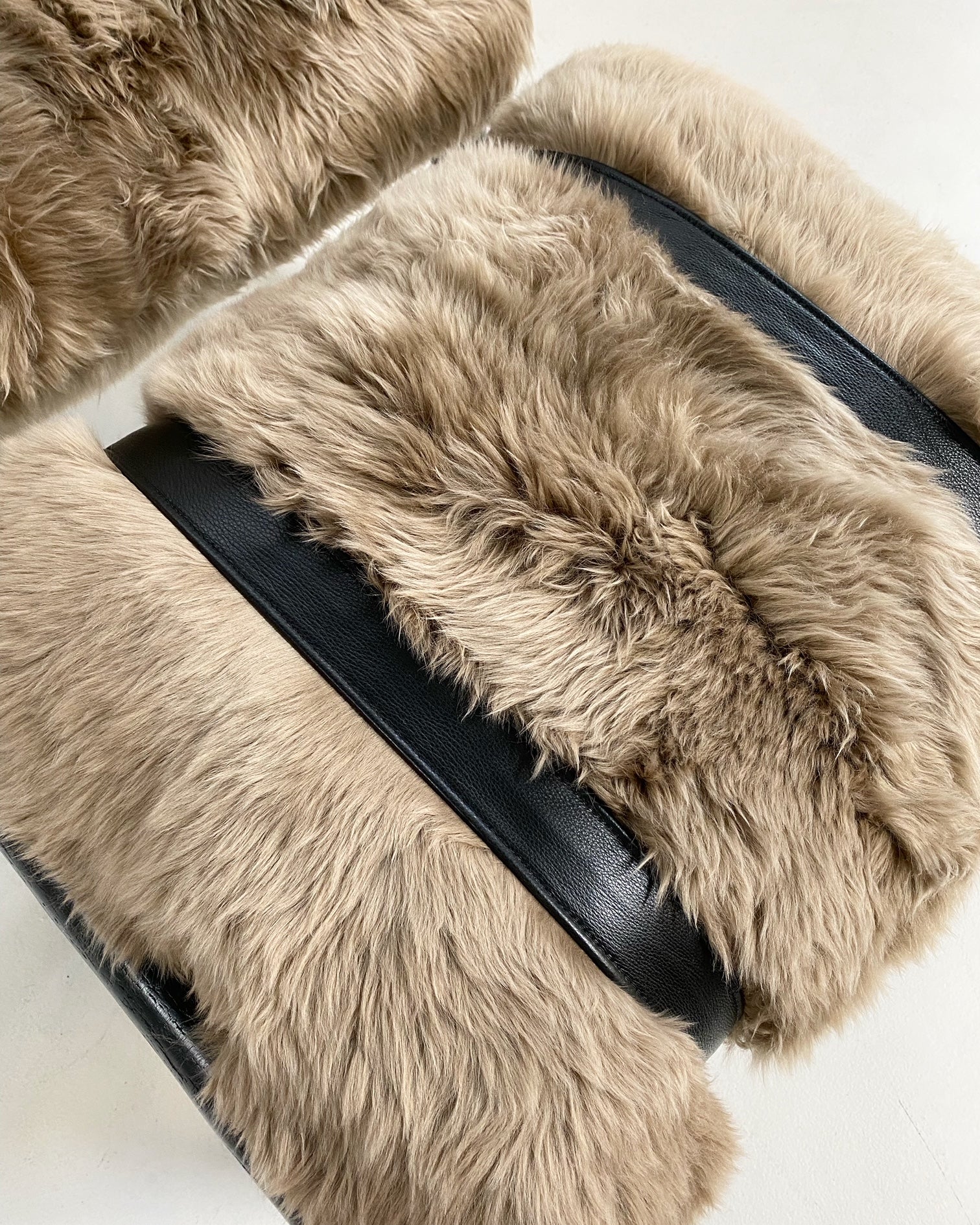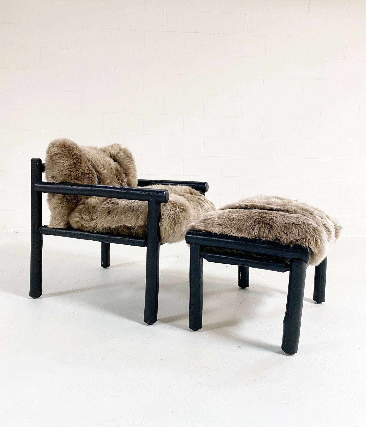Images show the chair with California Sheepskins and New Zealand Sheepskins. For a chic design accent, we added straps handcrafted of supple buffalo leather from ultra chic, luxury Italian label Loro Piana. Sure, these pieces would easily fit into any Mountain chalet but how chic and cozy would it look in a Manhattan loft. #ChairsWeLove