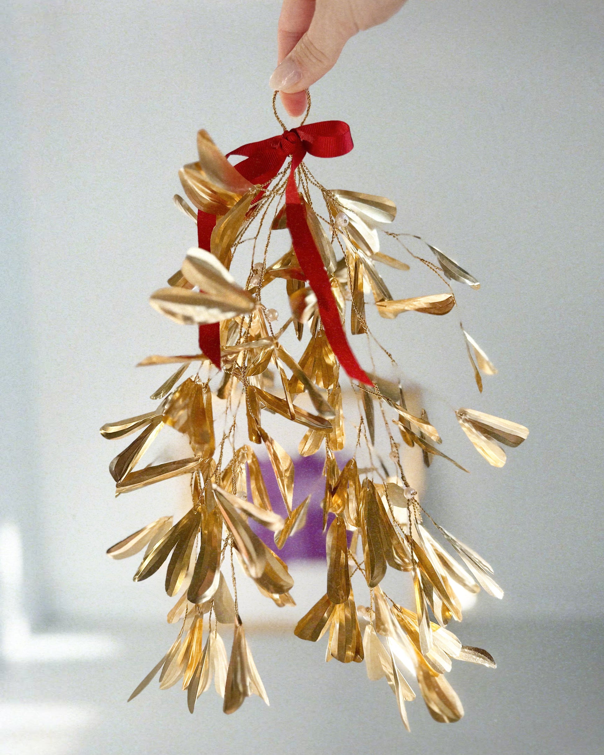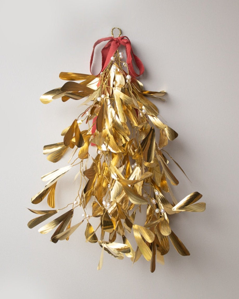A beautiful brass and freshwater pearl mistletoe decoration. Handmade by Jess Wheeler in her workshop in North Wales. Each work is organically unique.