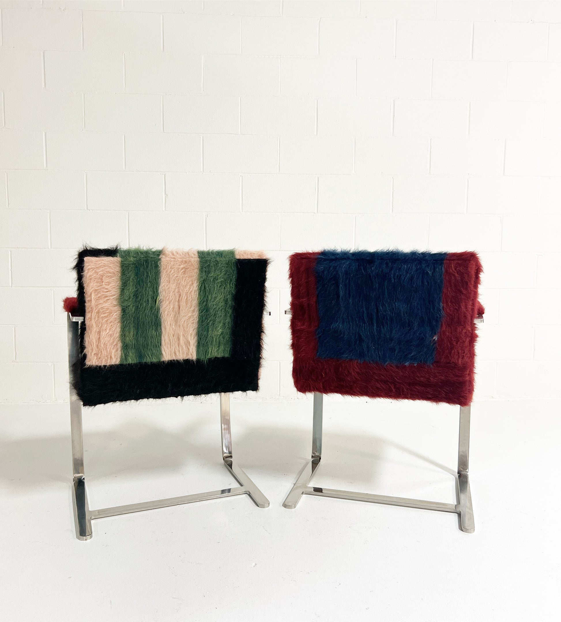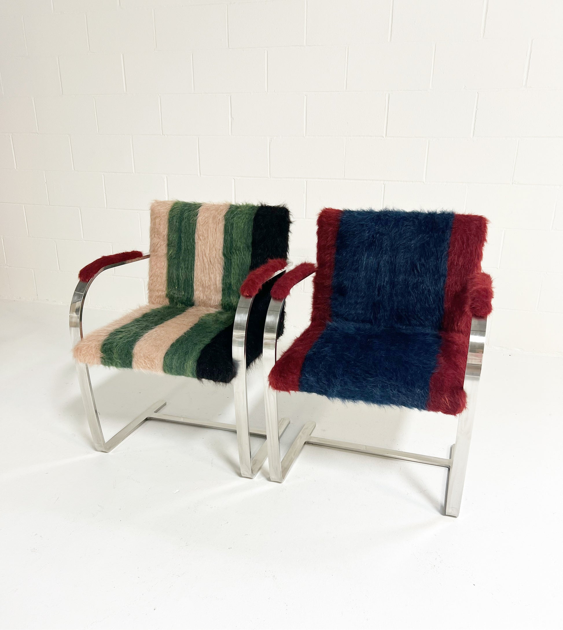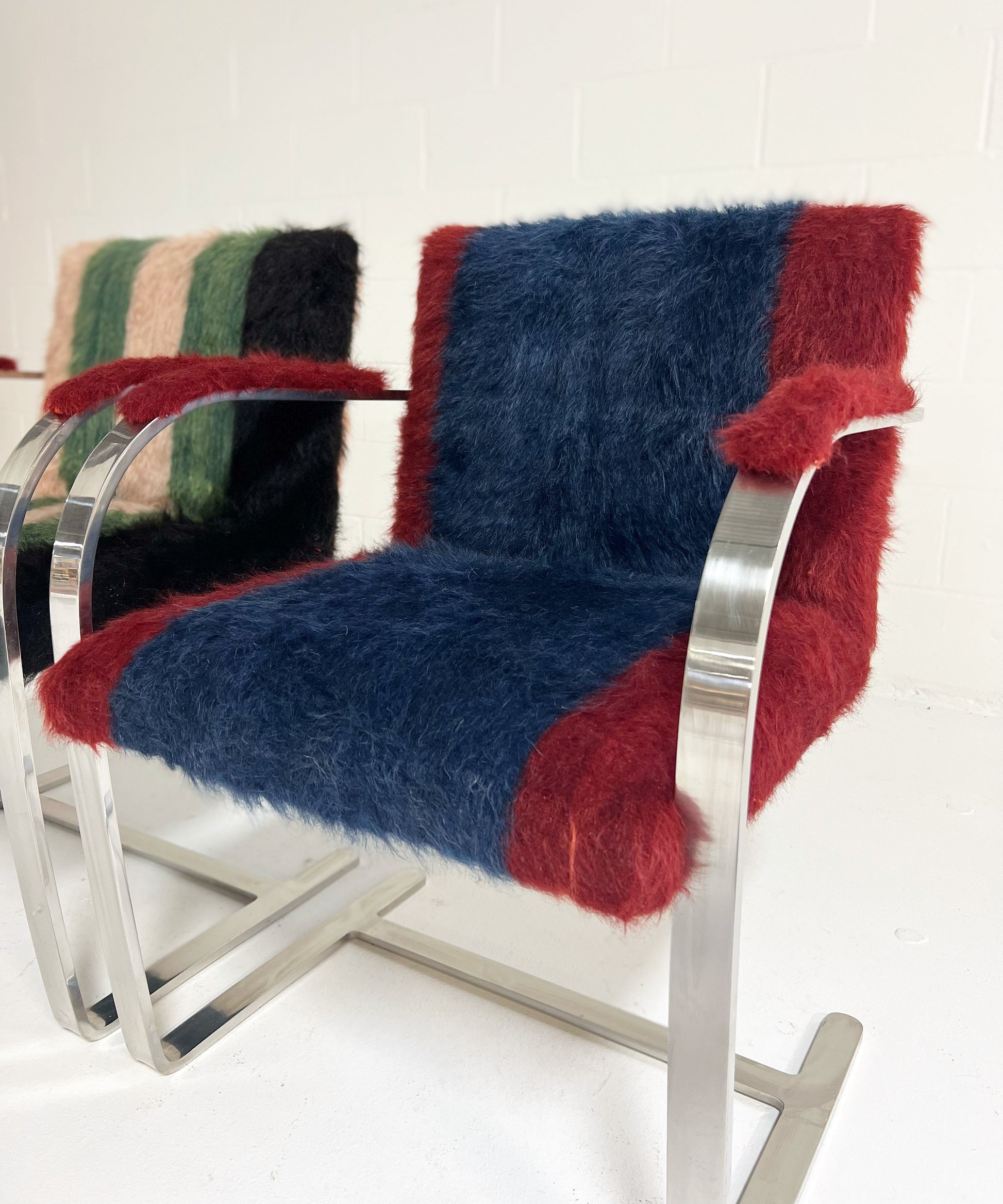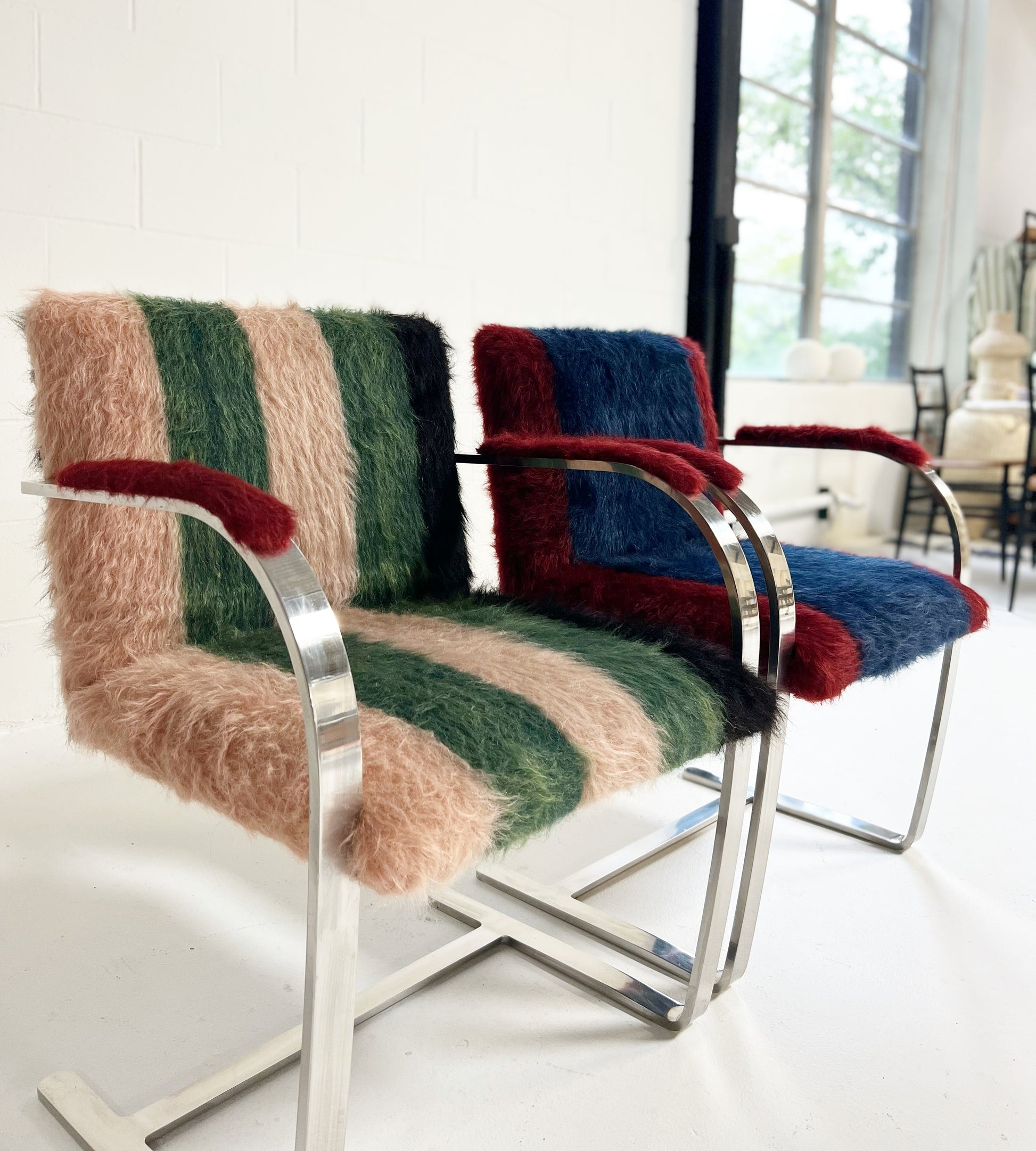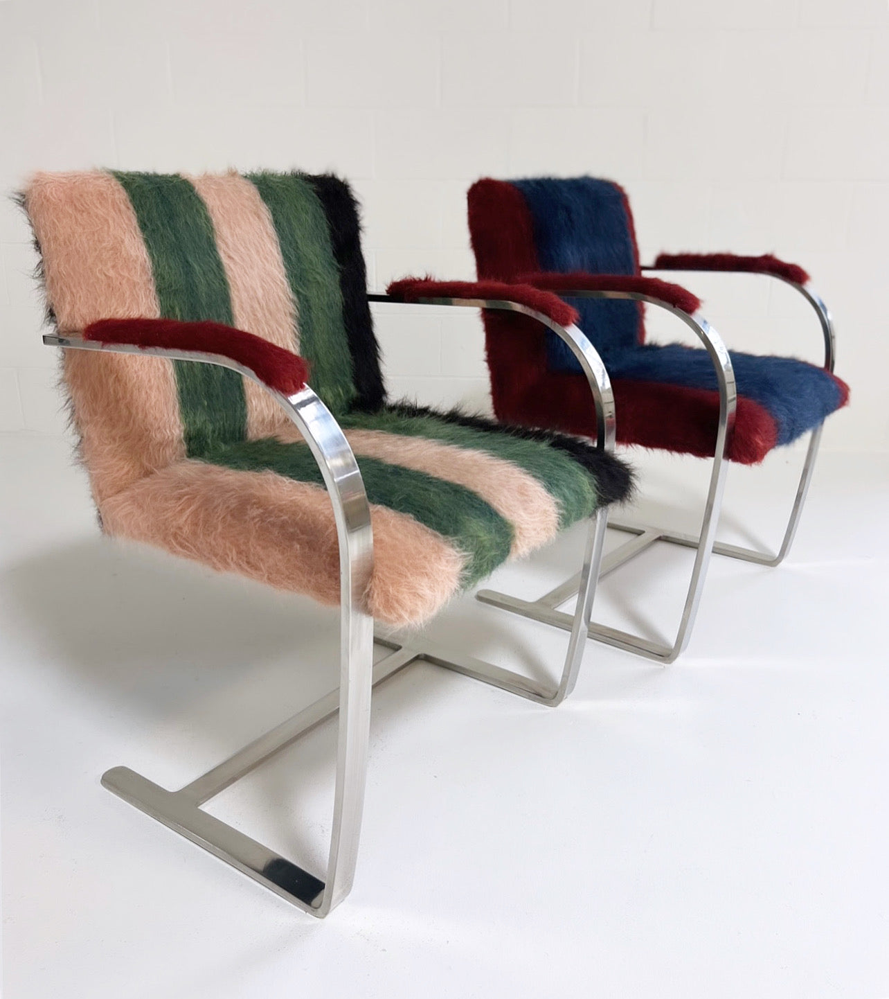 A German born designer, Mies van der Rohe originally designed this chair for his renowned Tugendhat House in Brno, Czech Republic. It was later produced by Knoll. The Colville color block mohair rug creates a great contrast with the lean profile and clean lines of the chrome frame.