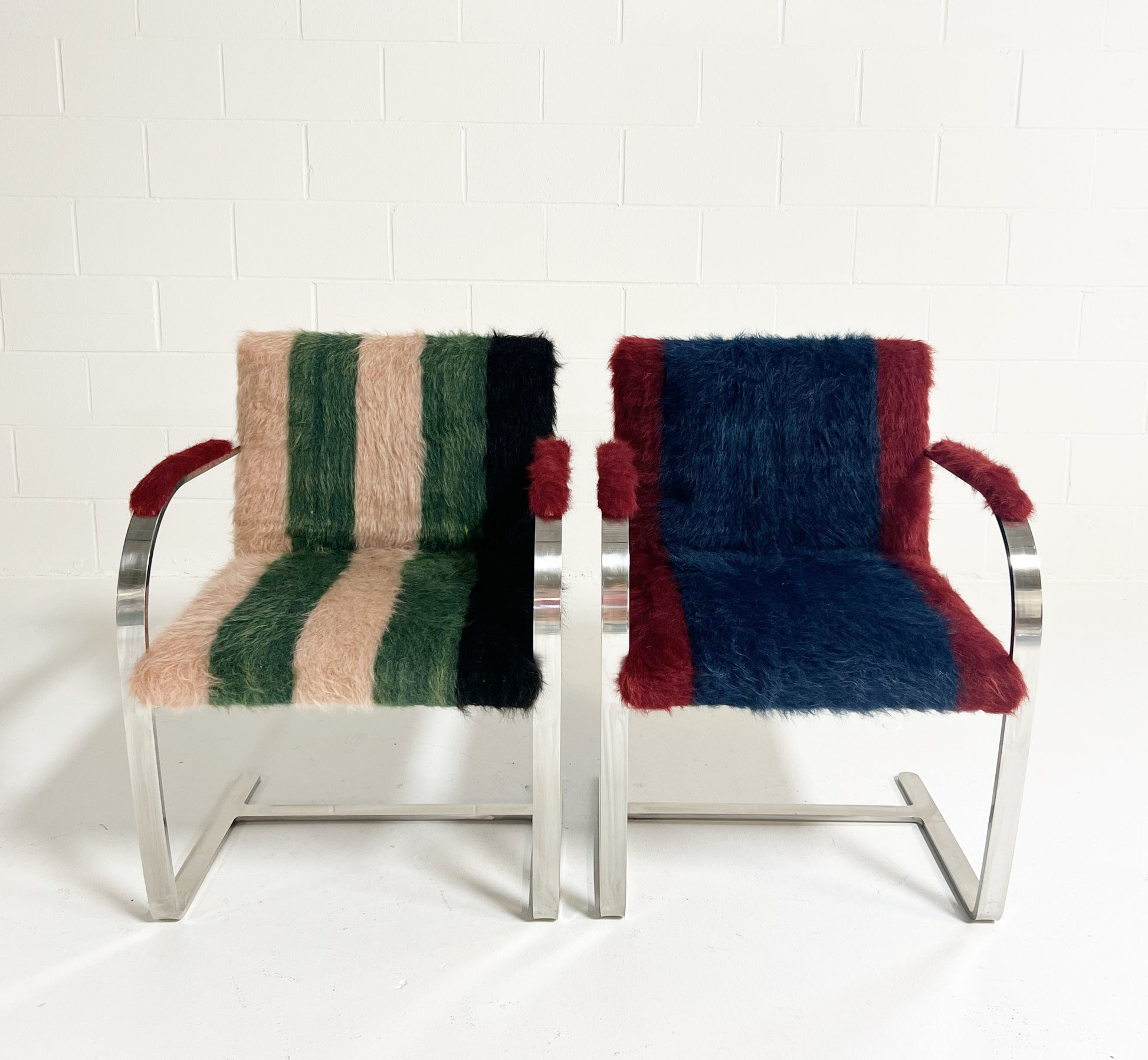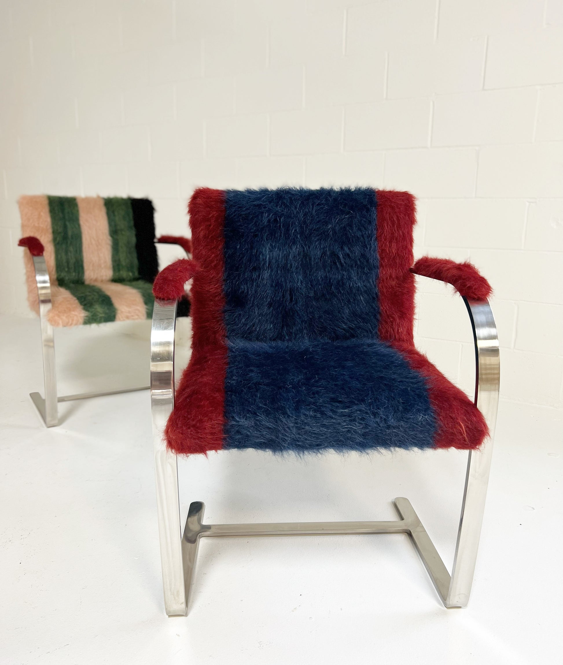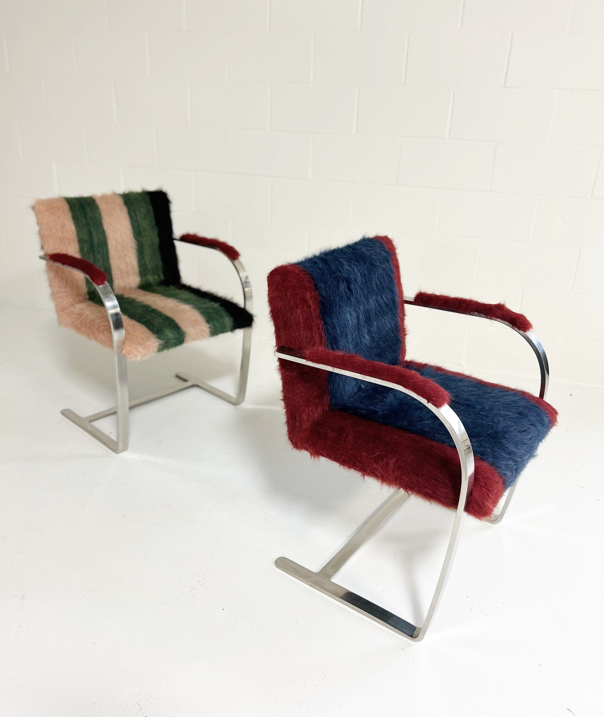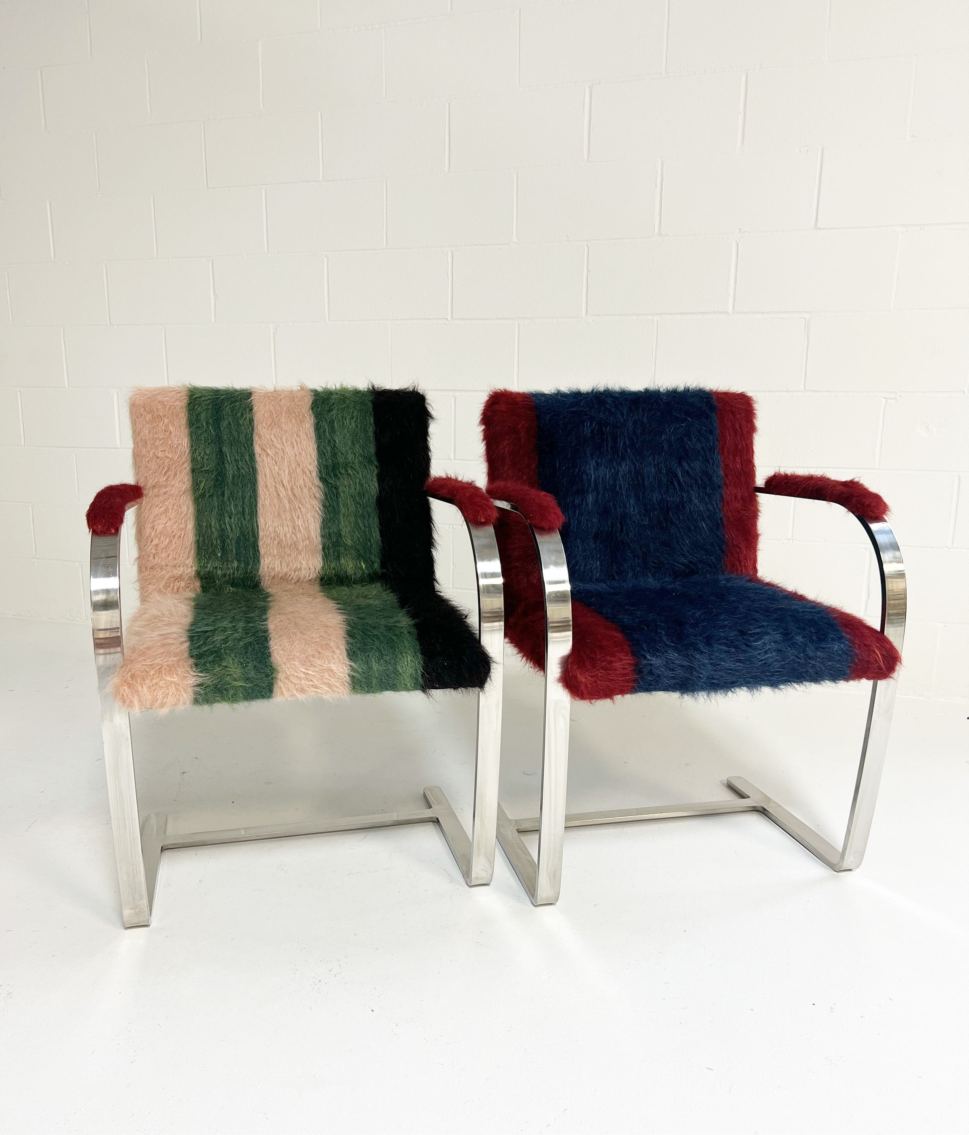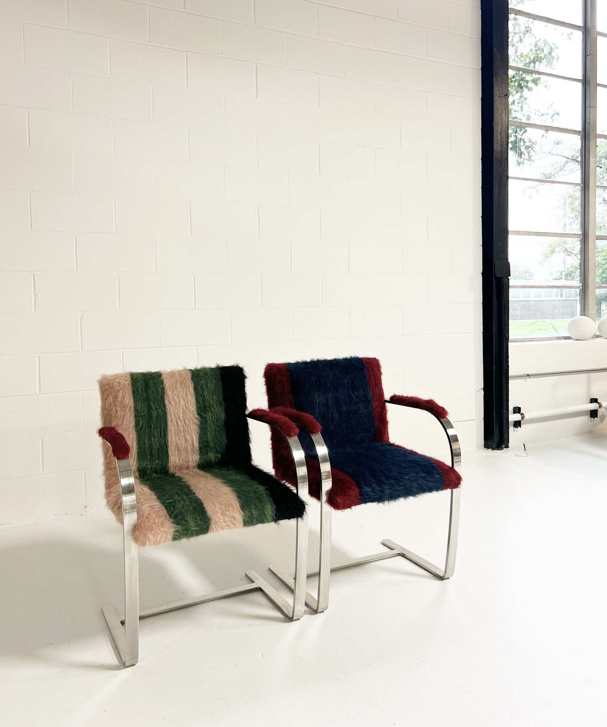 A German born designer, Mies van der Rohe originally designed this chair for his renowned Tugendhat House in Brno, Czech Republic. It was later produced by Knoll. The Colville color block mohair rug creates a great contrast with the lean profile and clean lines of the chrome frame.