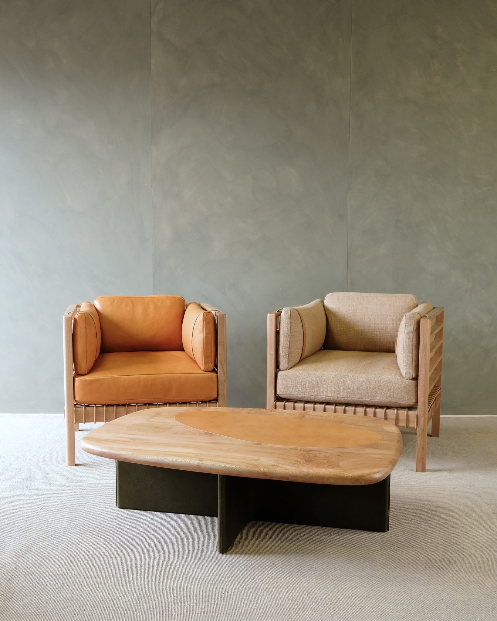 The Cadre reinterprets the classic club chair, placing the frame outside the cushions to emphasize the natural beauty of the timber, provide architectural features and contrast to the soft leather cushions.