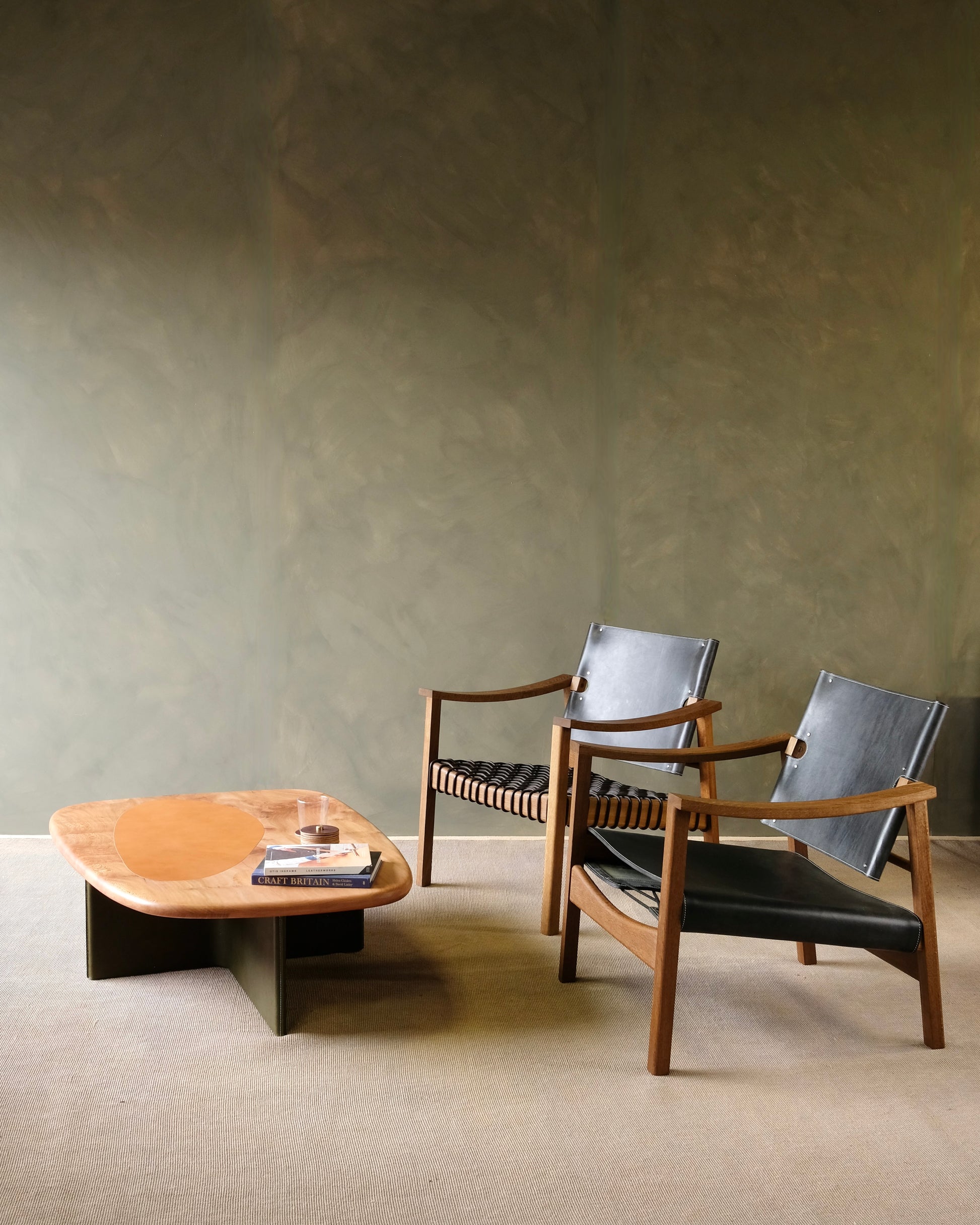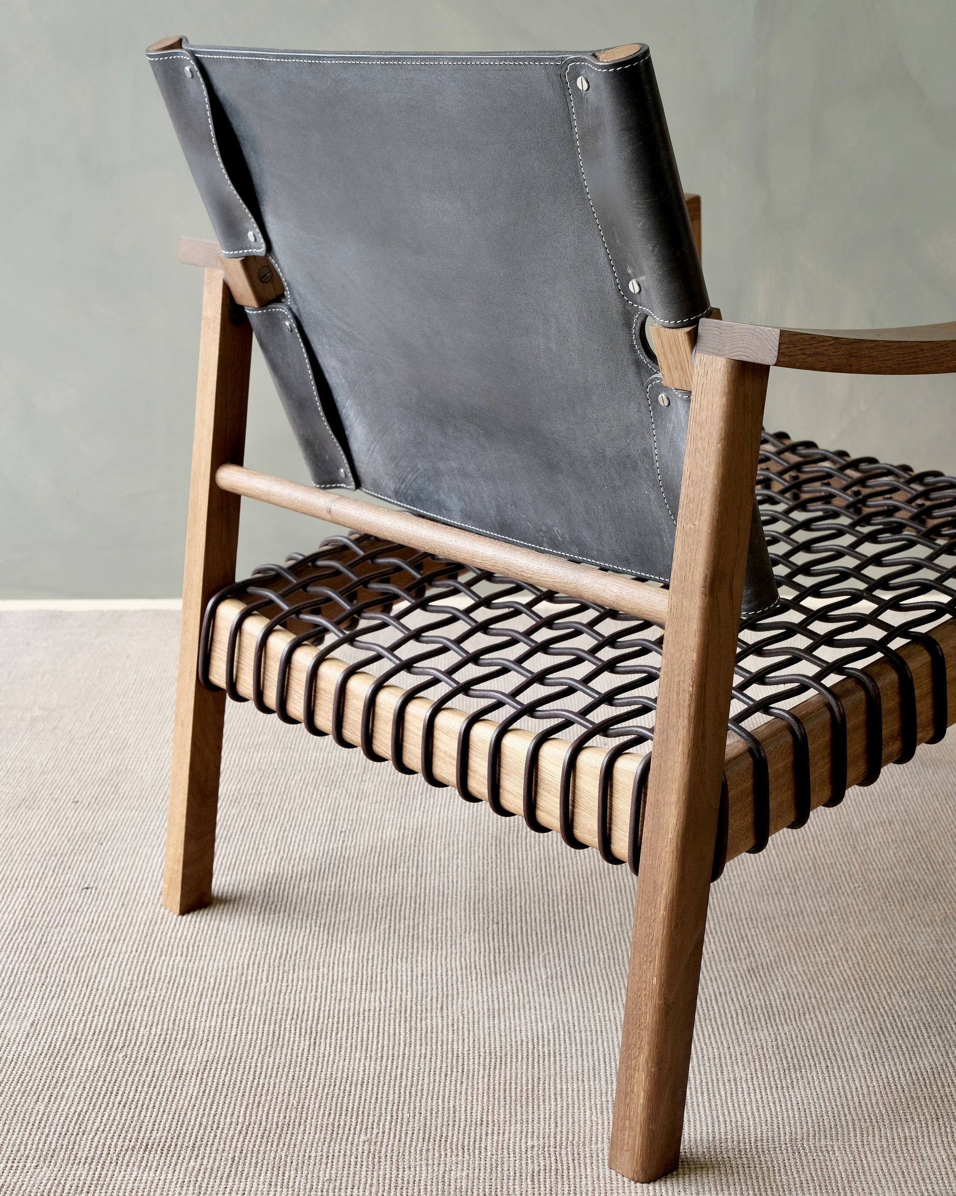 Bespoke Options: The leather is oak bark tanned bridle leather. Available colors are London Tan, Charcoal Black, Australian Nut and Natural Russet. Please see last image for reference. The wood frame choices are ash, sycamore, London plane, elm, oak and walnut. Bespoke colors and finishes are available on request. We are happy to send out samples and sample packs. Please inquire if you would like samples sent to you.