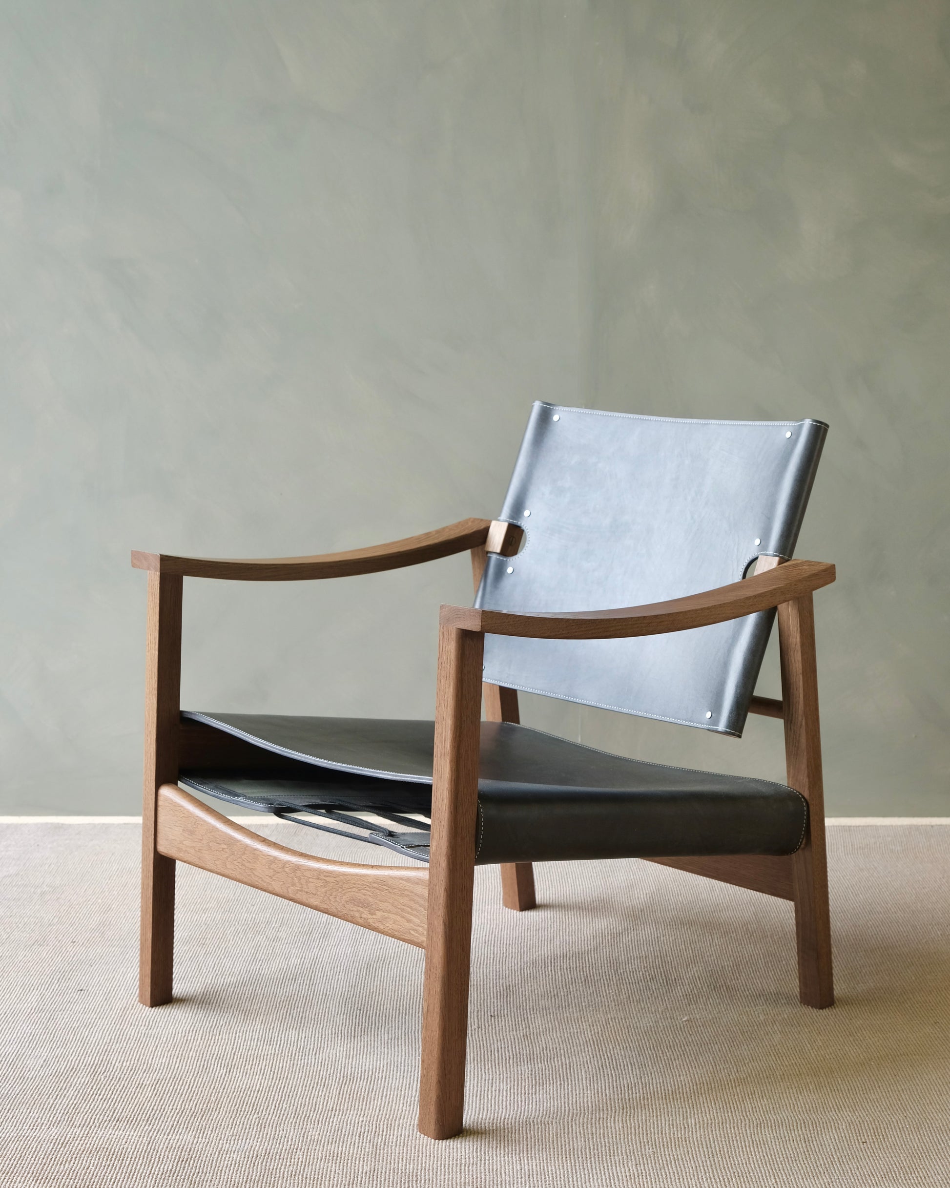 The Camber chair draws on elements of Brazilian and Scandinavian midcentury design to create a versatile new classic - formal enough for an office or workspace but casual enough for the home. The classic Danish combination of oak and leather is applied to a shapely hand-joined and turned frame. Bespoke brass hardware allows the backrest to pivot for the sitter’s comfort, while the backrest is double-faced to ensure a beautiful appearance from any angle.
