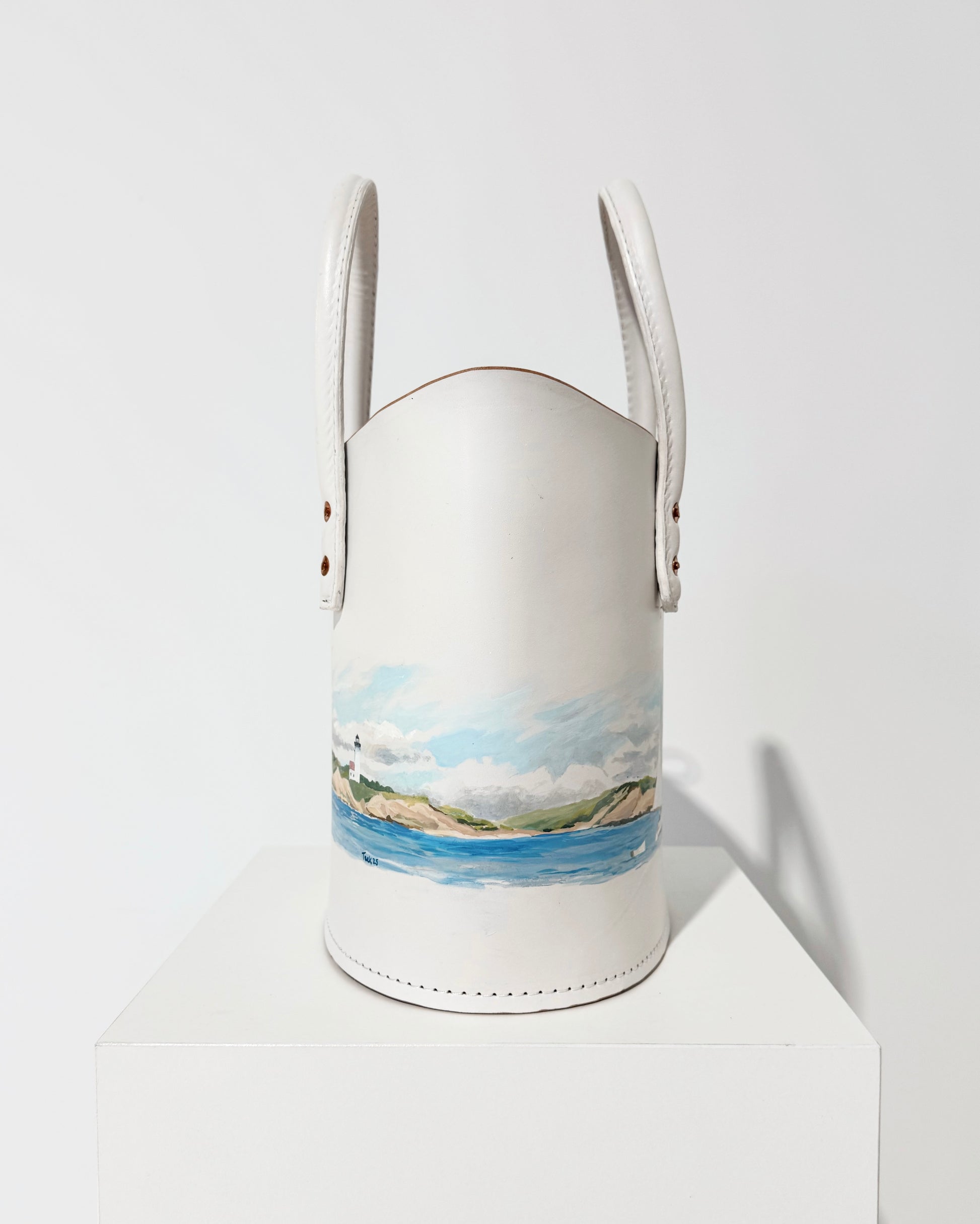 The Leather | We begin with the highest grade of full-grain, vegetable-tanned leather—carefully selected for its clean, unblemished surface. This leather is tanned using traditional, time-intensive methods to preserve its natural integrity. Each hide is then hand-painted in a durable white leather pigment. Once painted, the leather becomes like a perfectly prepared canvas—smooth, luminous, and ready to receive artwork.