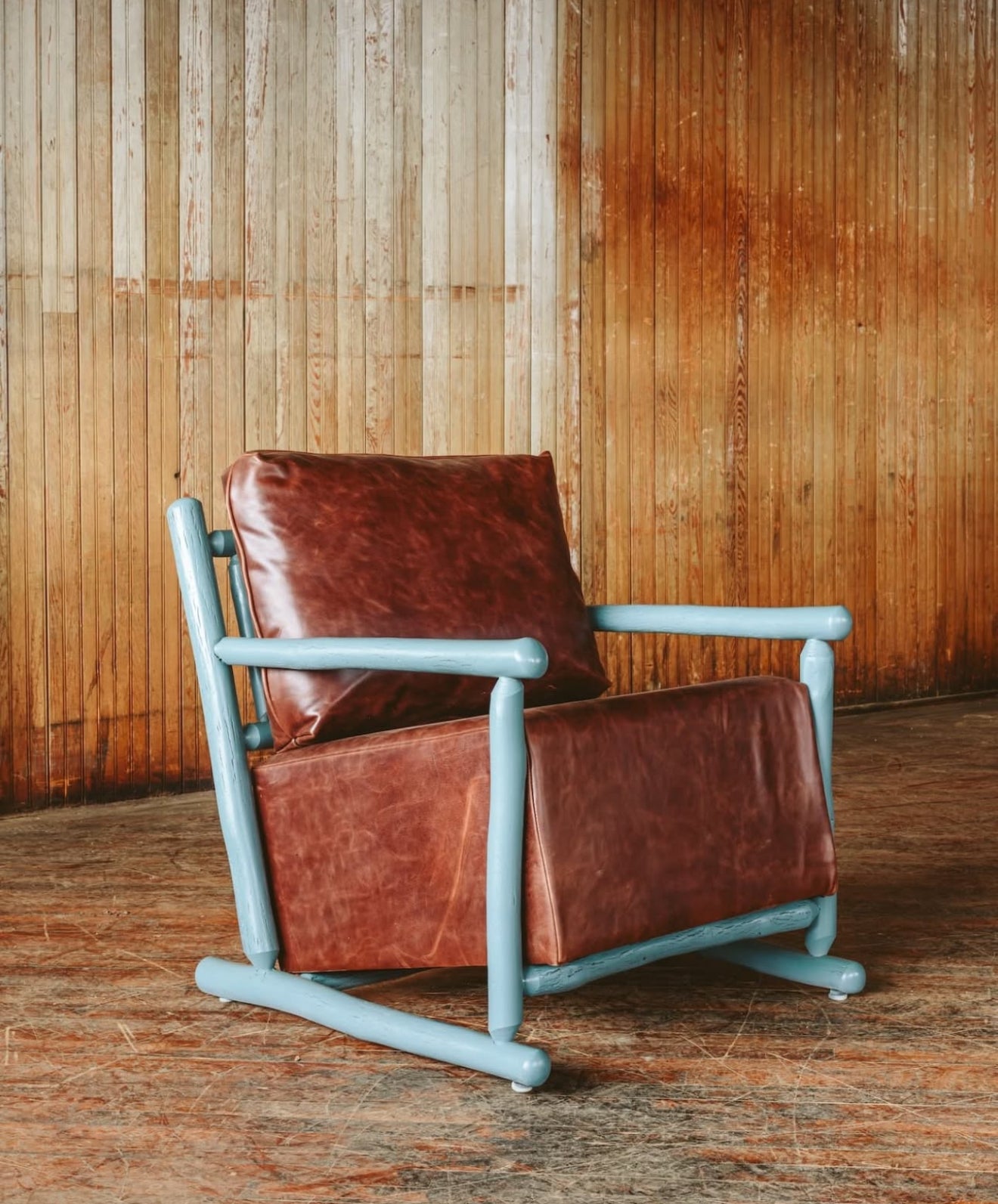 Playful and petite lounge chair with great lines, part of the Lodge Collection by Max Humphry.