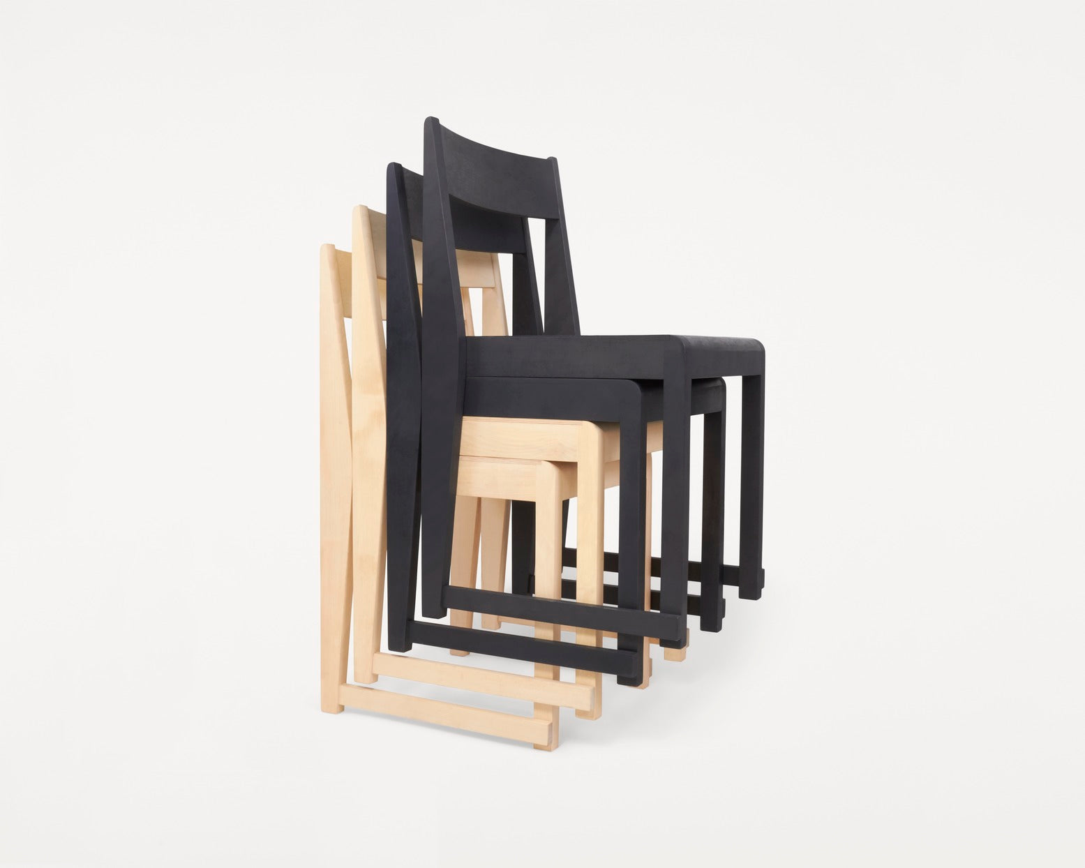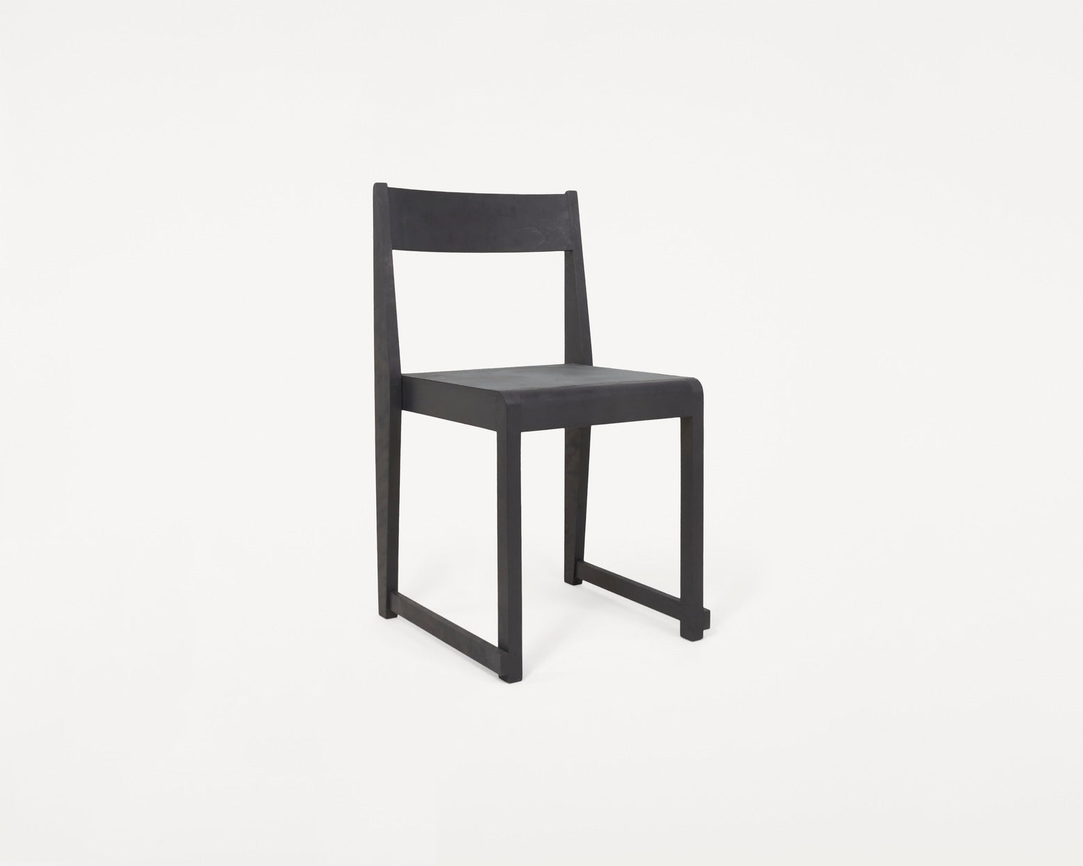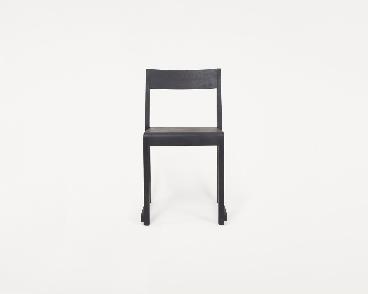 Chair 01 is defined by a geometric silhouette and a series of stark linear planes inspired by seating commonly found in Nordic churches since the early 20th century. Stackable and easy to store, the dining chair's archetypical sledge construction leads to reliable sturdiness. Made in Baltic oiled birch, it comes in various finishes suiting a wide range of environments.