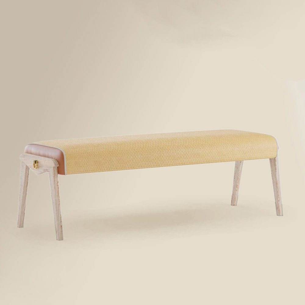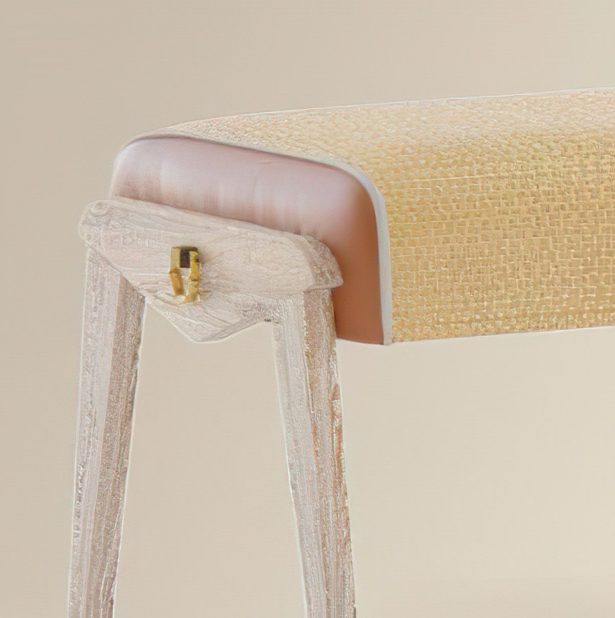 Slim and graceful bench enriched by sophisticated fabrics and bamboo handles. Claire is not only a refined object in materials but also in artisanship: from the study of the interlocking structure to the covering techniques.