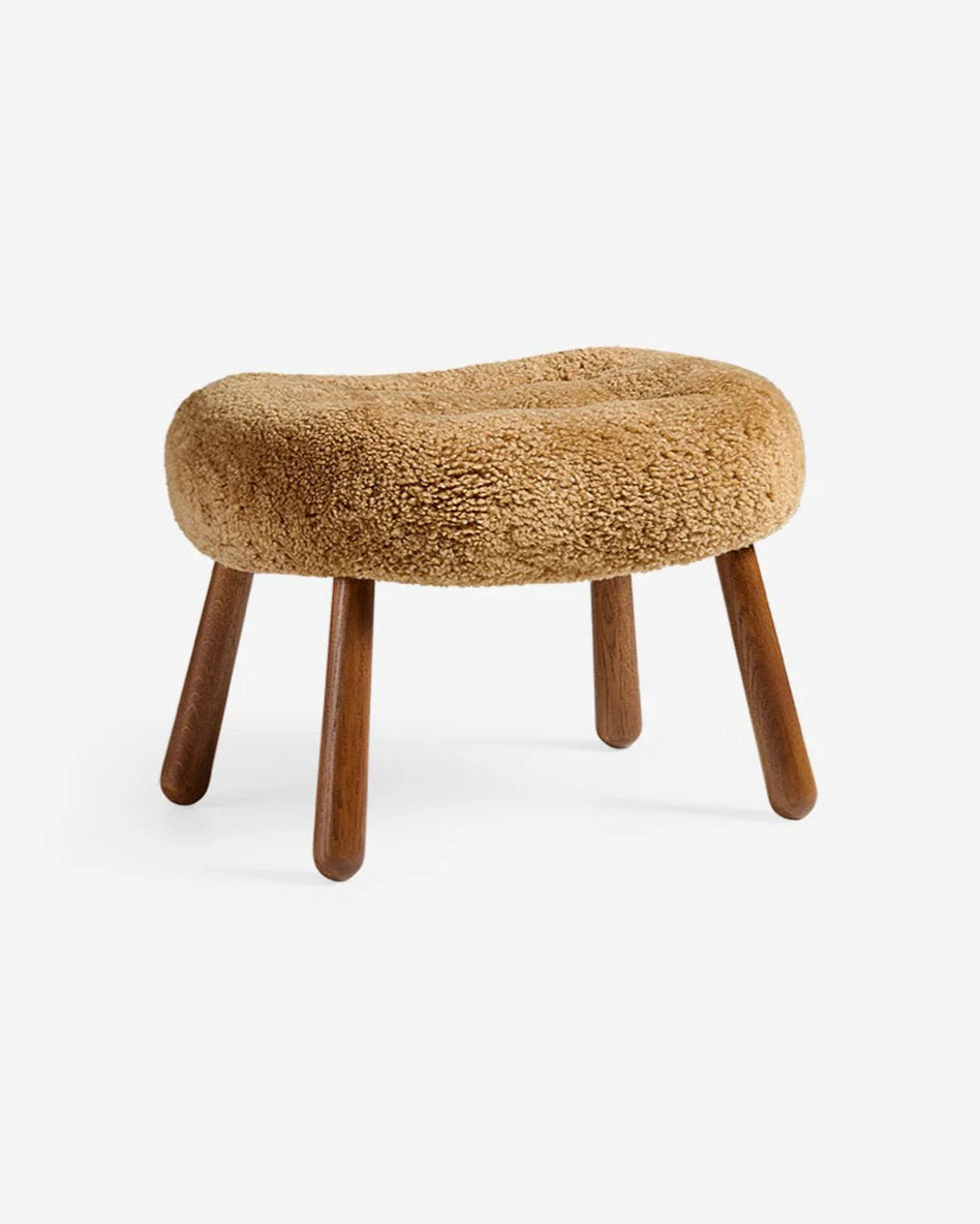 The Clam Stool is the perfect companion piece for Arnold Madsen's iconic Clam Chair. This new design has been developed in close collaboration with the family of Arnold Madsen by mirroring elements from the Clam Chair. The Clam Stool is made using traditional joinery and upholstery methods with a solid wood frame and turned club legs at our workshops in Sweden.