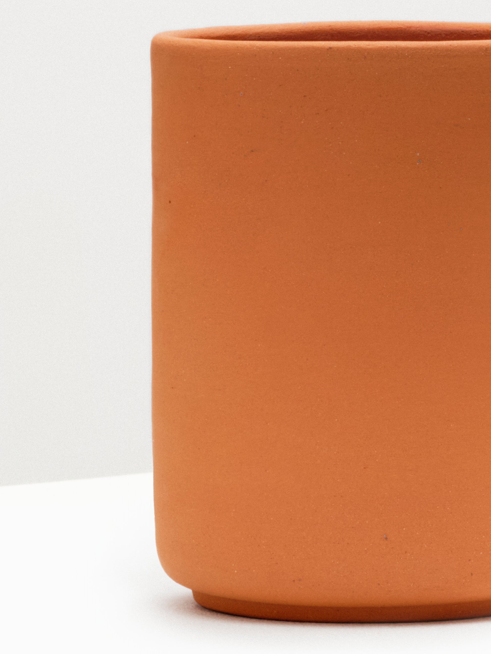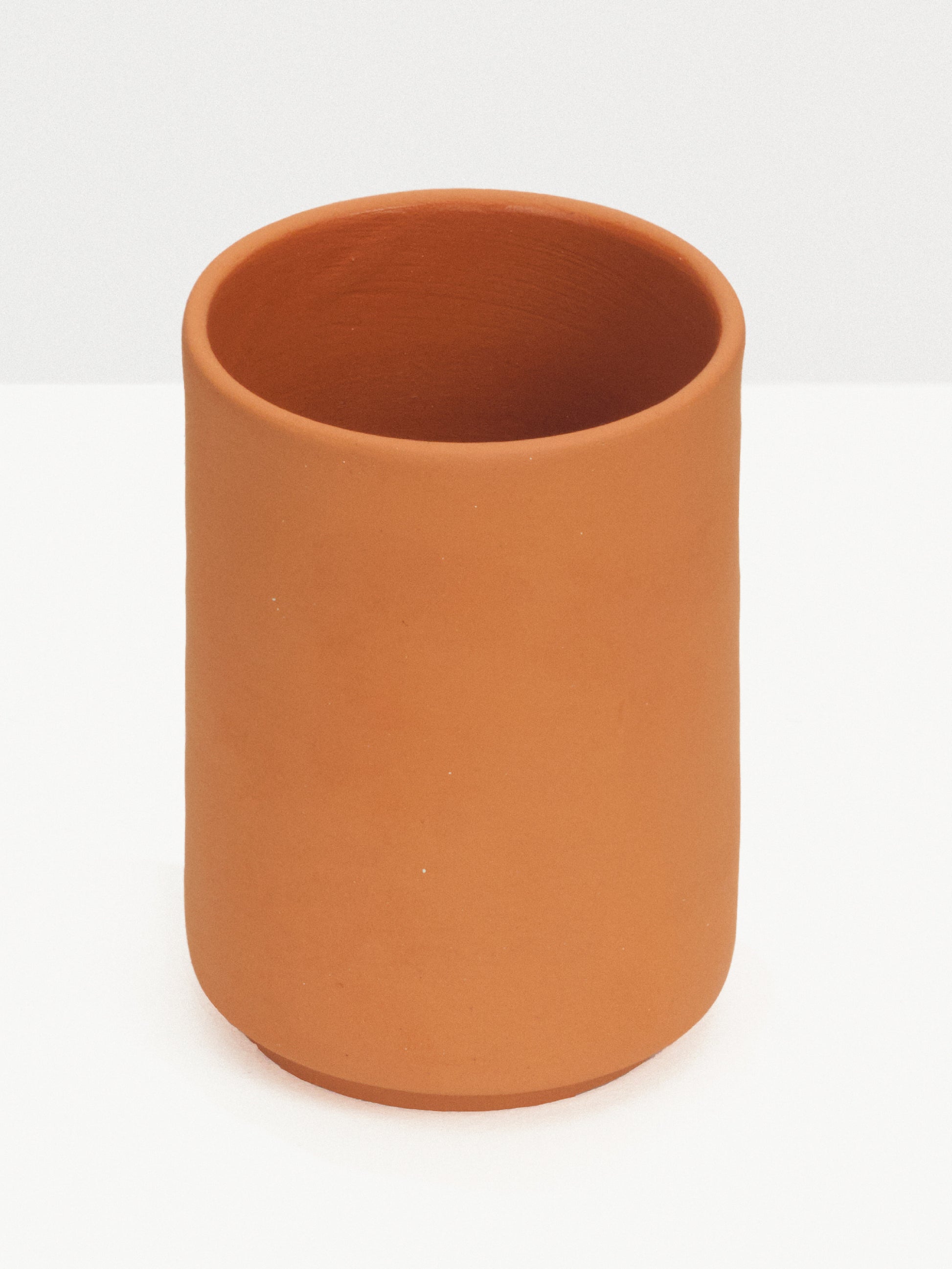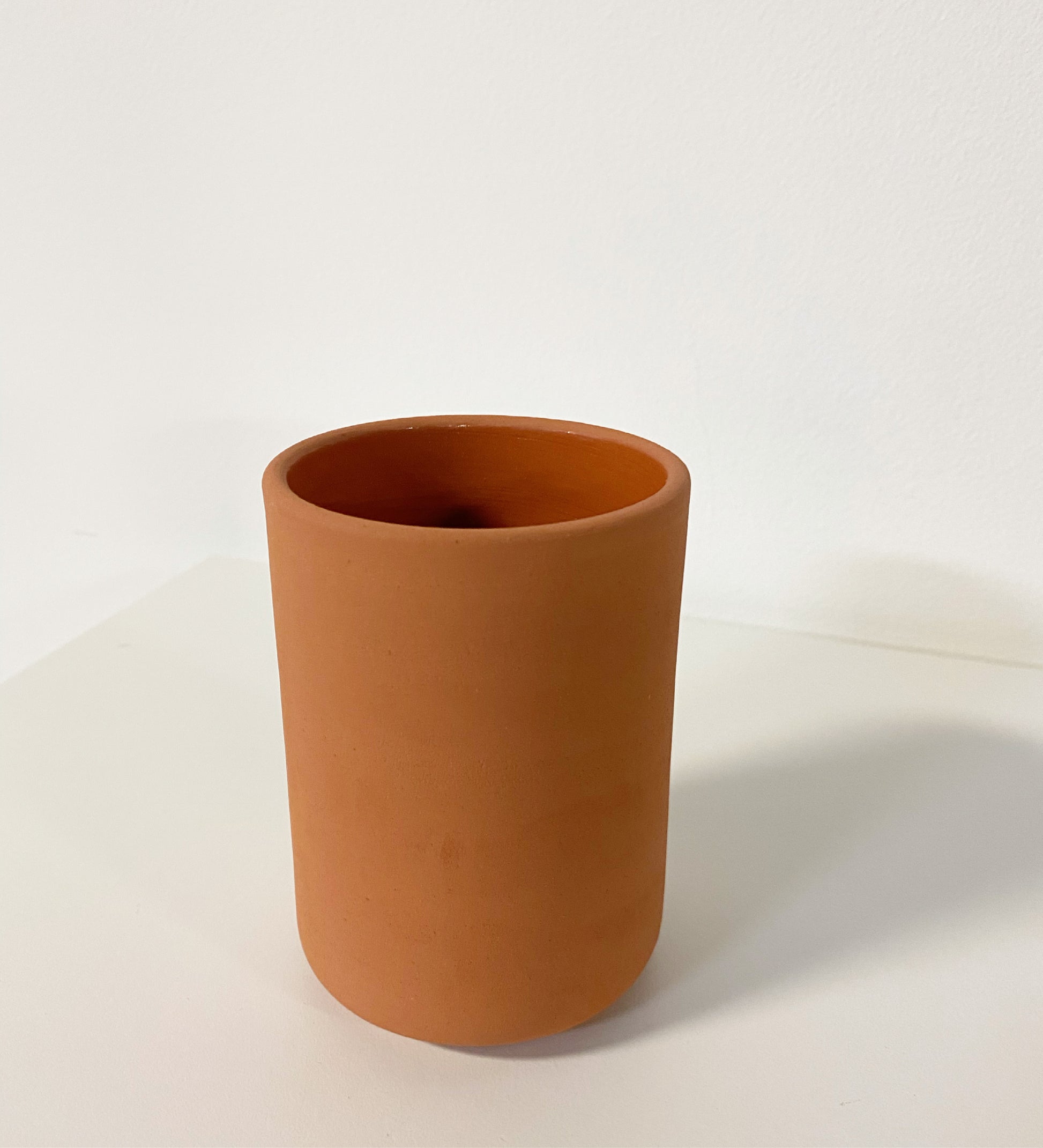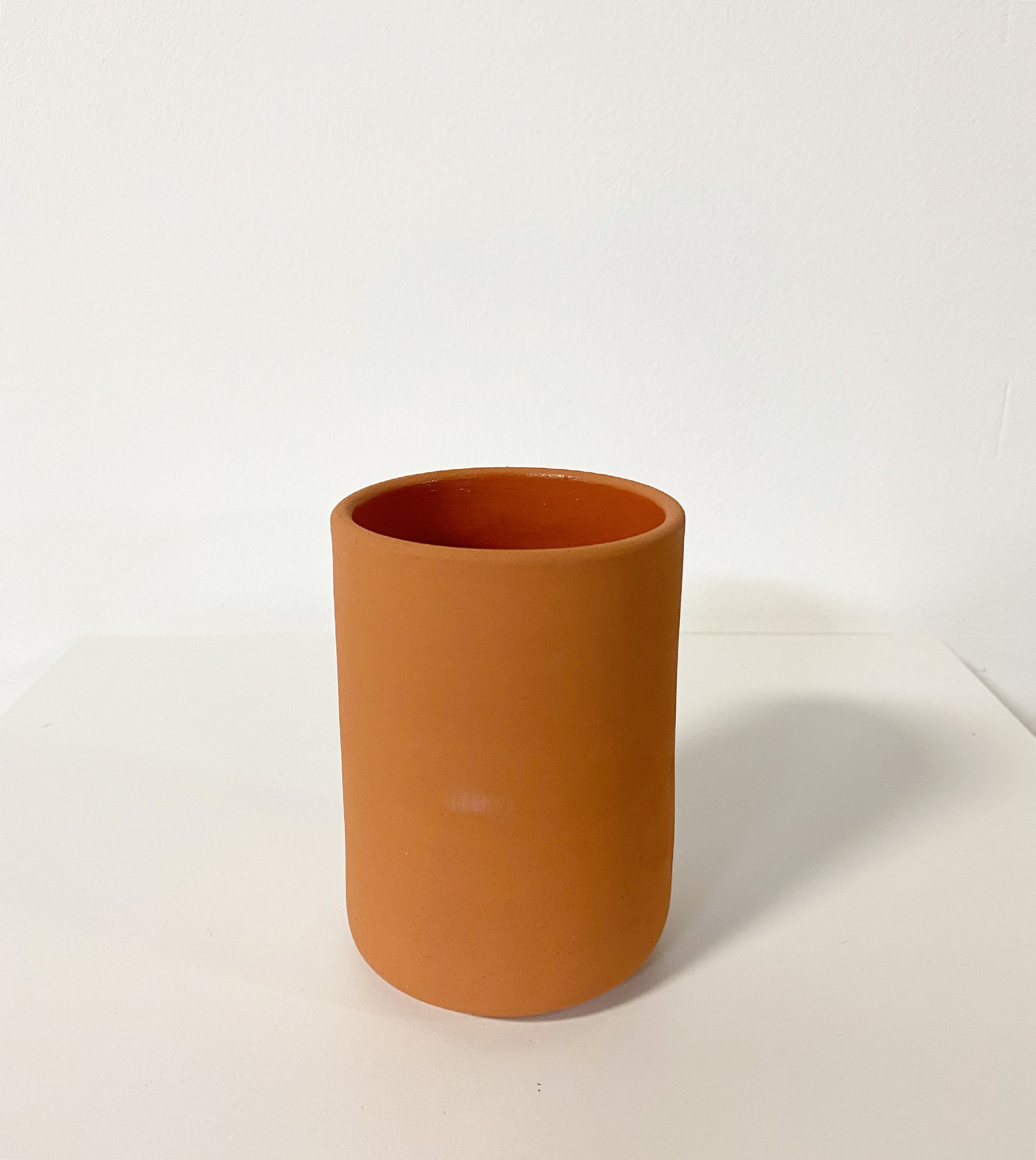 Hand made Ceramic Cup in terracotta with the slightest speckle detail. Natural exterior and clear glaze in the interior. Made in India.