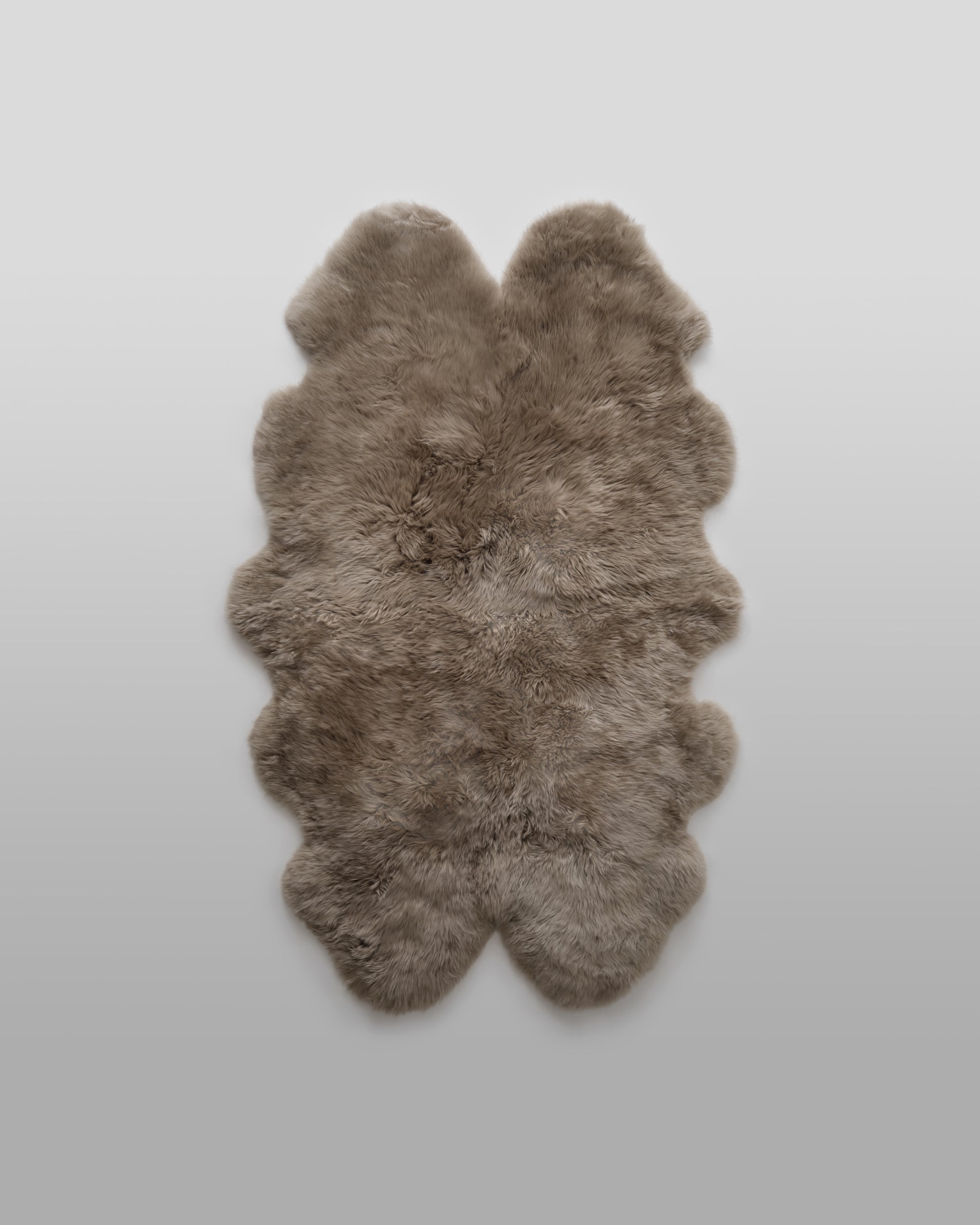 This thick and beautiful sheepskin, dyed a beautiful smokey taupe color, is soft and cozy.