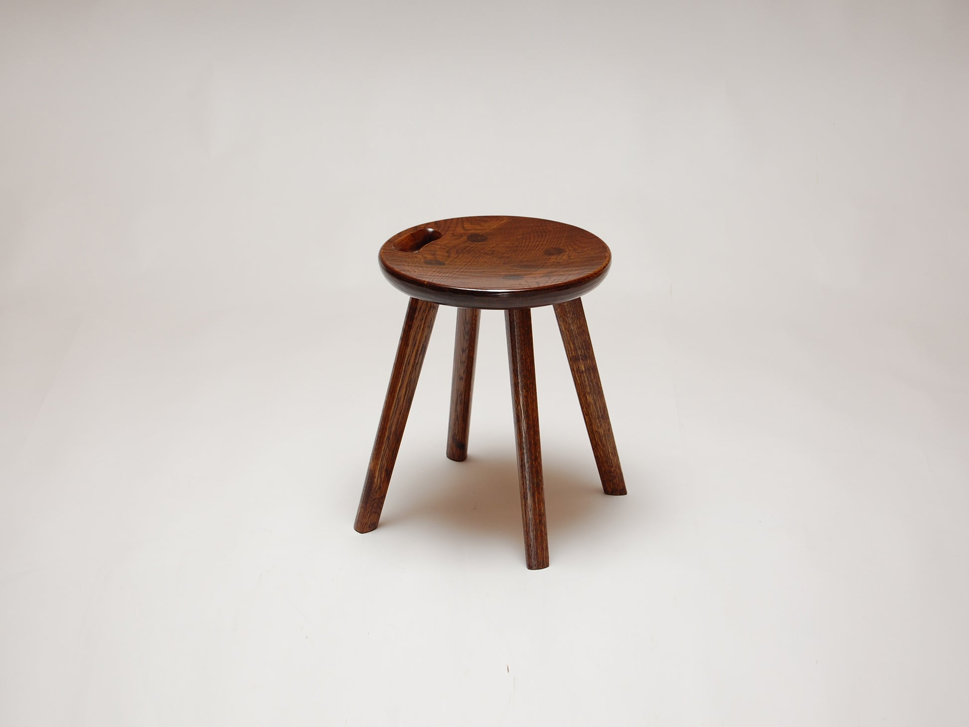 We love the stool with handle. The Japanese oak is beautiful. Carry it with you for any everyday task. You can see the artist's hand at work with the fine tool marks and Urushi finish. The top surface forms a shallow concave for a comfortable seat. It also makes a great stepstool and side table.