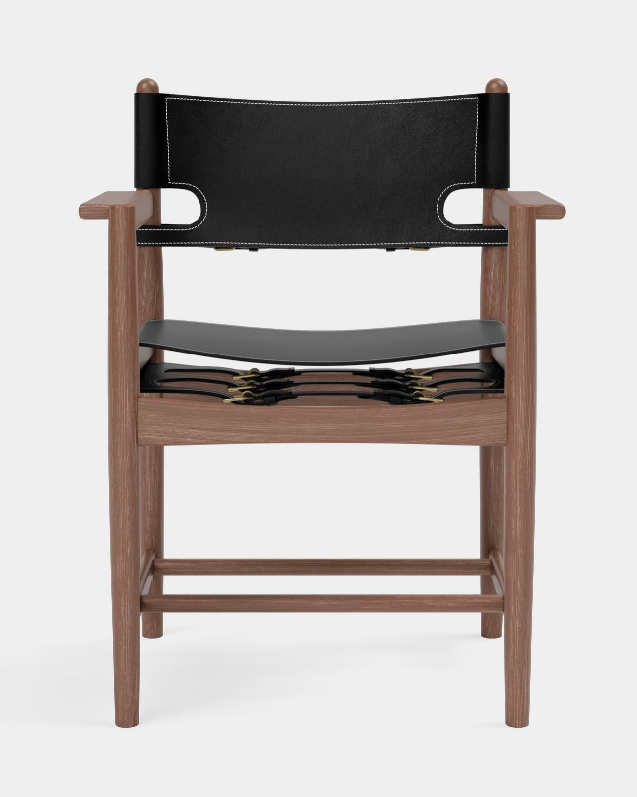 The Spanish Dining Chair is a generous and exquisitely crafted chair in Børge Mogensen’s well known series of saddle leather chairs. Over time, as the leather expands, the adjustable straps can be tightened. A true statement of craftsmanship. Solid oak or walnut is combined with the highest caliber saddle leather in a chair that will only become more beautiful with age.