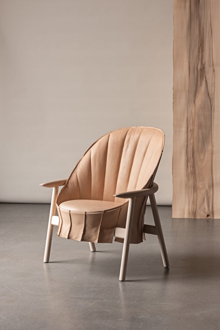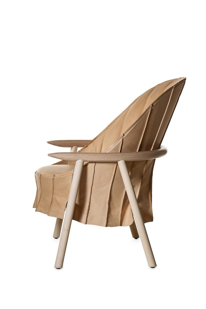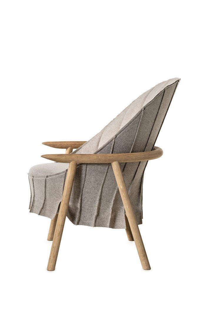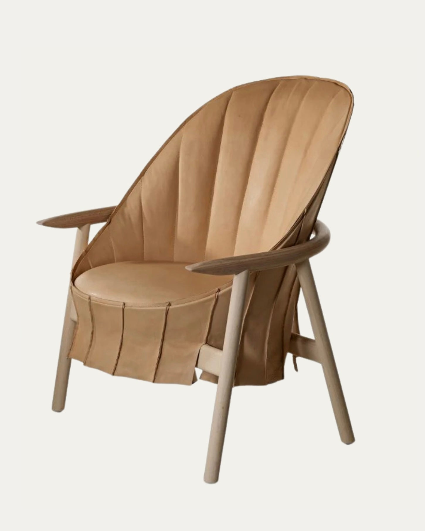 Designed in 2024, Japanese architecture and Swedish wood craftsmanship meet in the new HidaHida Lounge Chair. It is the result of a collaboration between the world-renowned Japanese architect, Kengo Kuma, and Gärsnäs. HidaHida is an armchair with visible wooden details of solid beech or oak. The back and seat can upholstered in either leather or fabric.